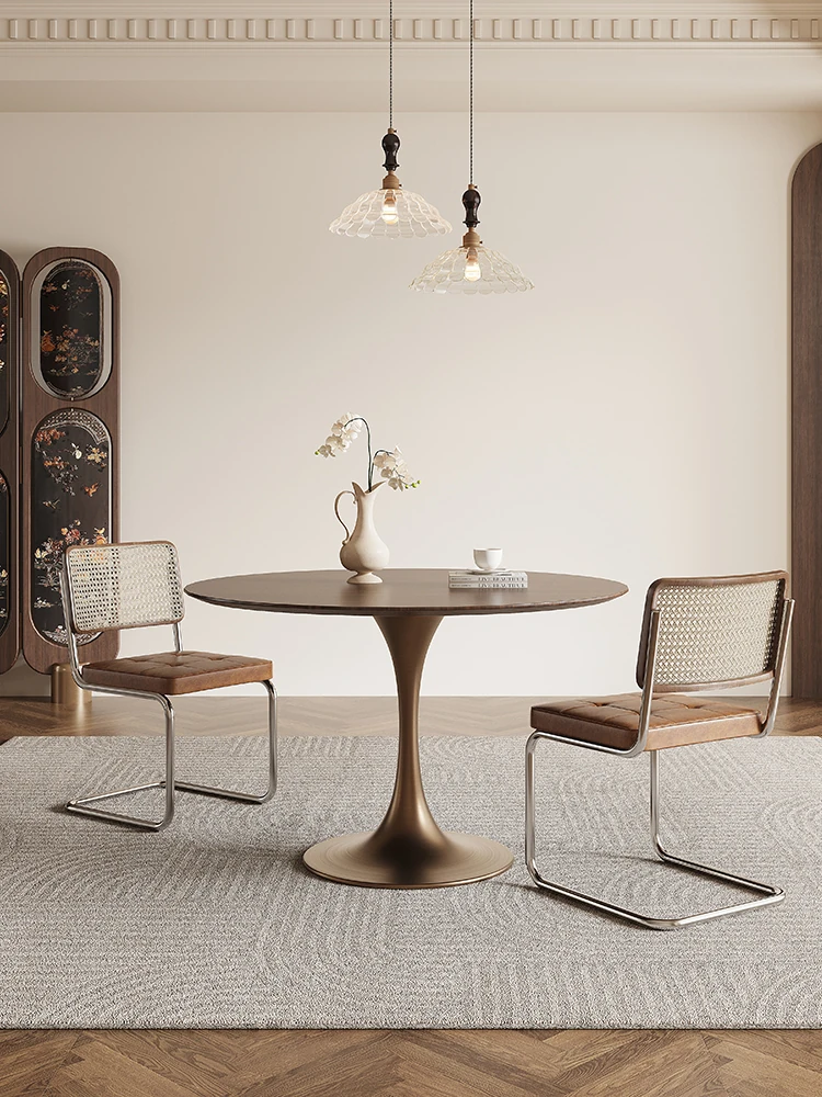 2025 Modern Minimalist Italian Dining Table Set - Luxurious Solid Wood and Rock Plate Round Table with Chairs - Elevate Your Dining Experience with Style and Elegance!