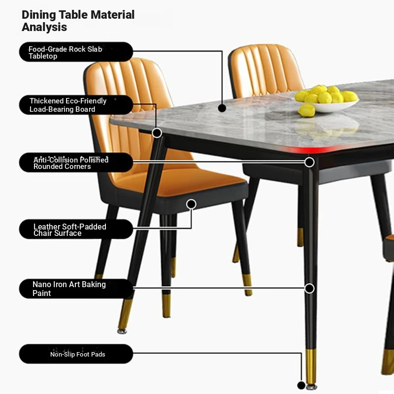 Sleek Italian Luxury Glossy Rock Plate Dining Table - Modern Minimalist Rectangular Design for Small Spaces, Perfect for Home Use