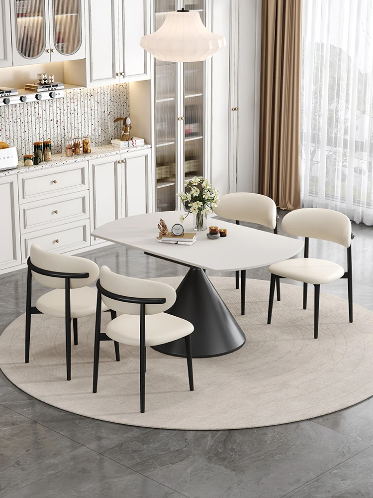 Creamy White Rock Plate Dining Table Set - Modern Minimalist Light Luxury Oval Table and Chairs for Small Spaces, Perfect for Home Use