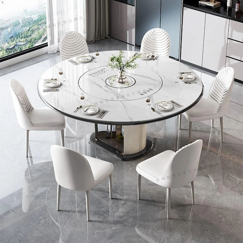 2025年新作!軽奢スタイルの伸縮可能な円形食卓 - 電磁調理器付きの暖菜回転テーブル!家庭での食事をより贅沢に、便利に演出します。