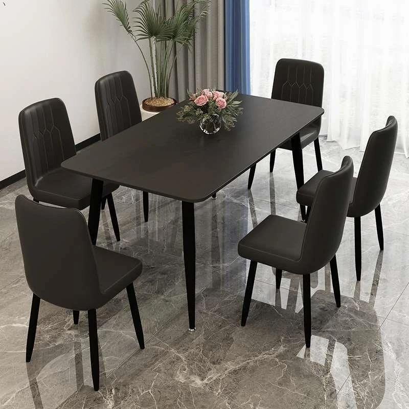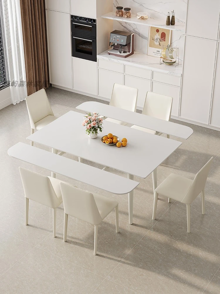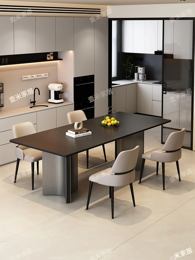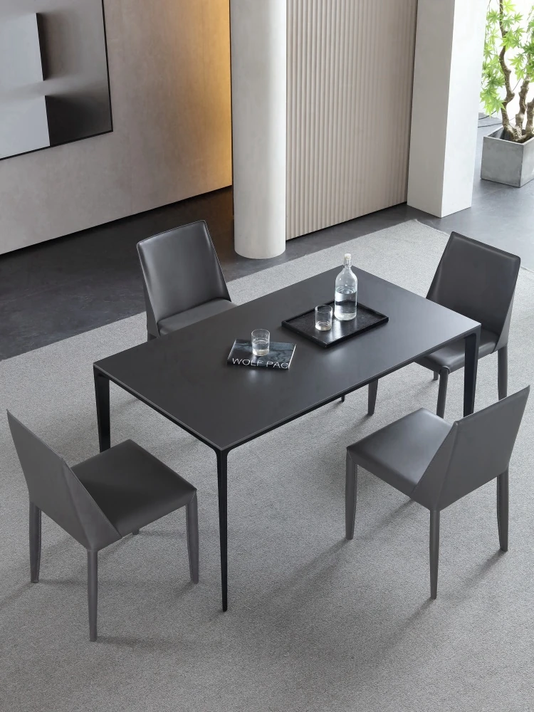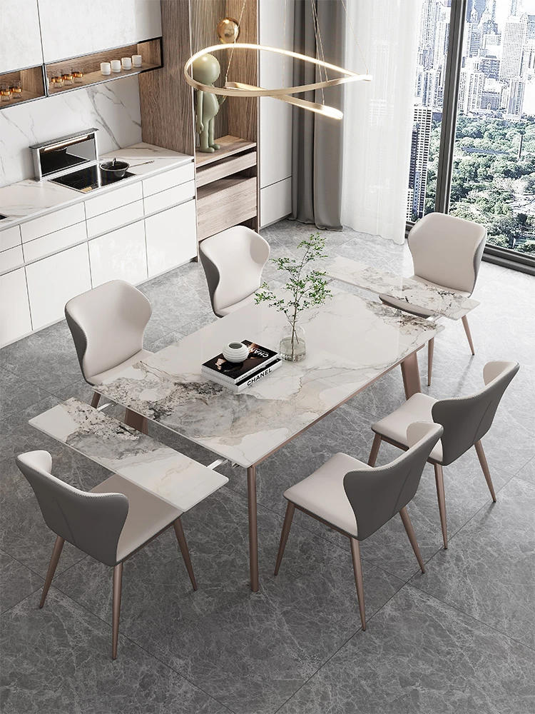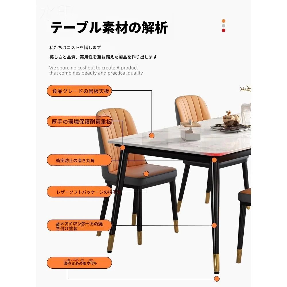 モダンでシンプルな岩板ダイニングテーブルセット|小型家庭に最適な高級大理石長方形テーブル|スタイリッシュな食卓で特別なひとときを!