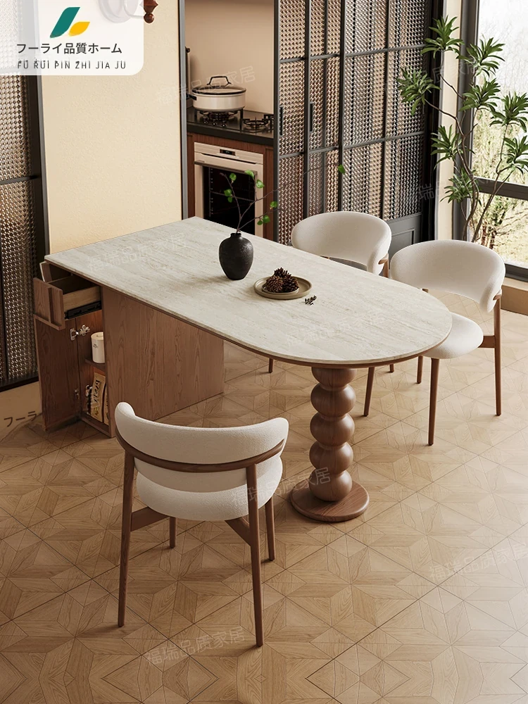 2025年新作!洞石岩板長方形レトロ風ダイニングテーブル&チェアセット - おしゃれで落ち着いた雰囲気の家庭用食卓、あなたの食事シーンを彩ります!