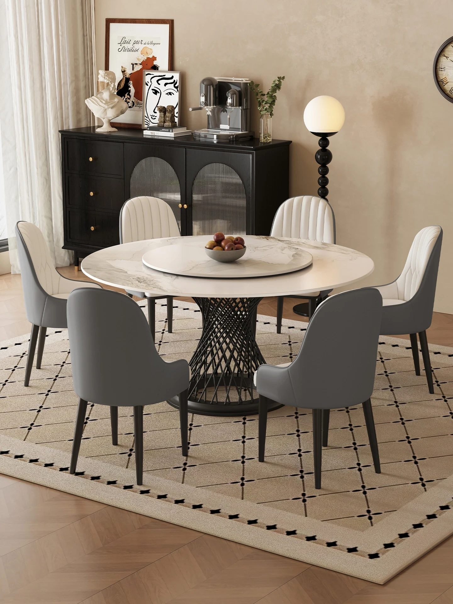フレンチラグジュアリー 軽量スレートダイニングテーブル モダンシンプル イタリアンスタイル回転式丸テーブル 小スペース向け 家庭用 食事テーブル