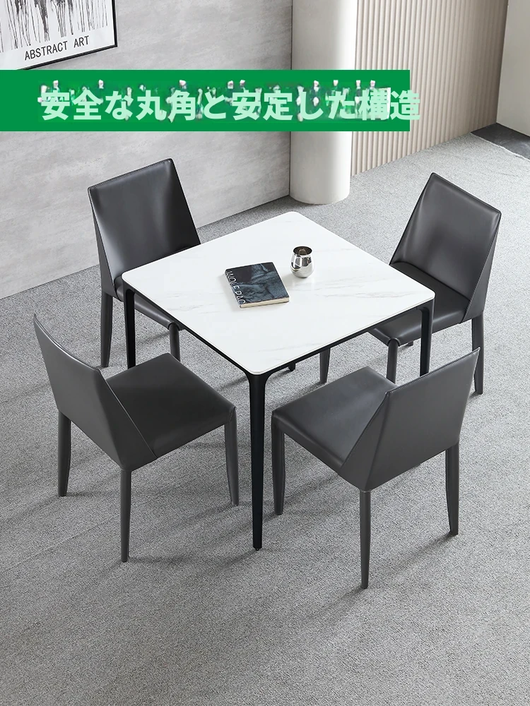 シンプルでスタイリッシュな正方形の岩板テーブル - コンパクトなリビングに最適!木製のダイニングテーブルやティーテーブル、作業デスクとしても使える多機能デザイン。限られたスペースでもおしゃれに食事を楽しむ!