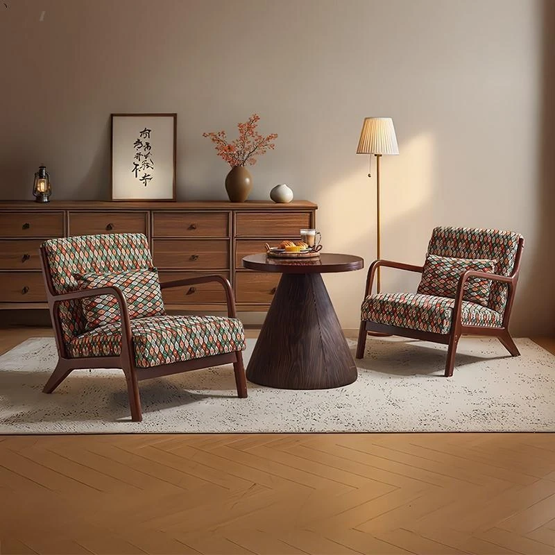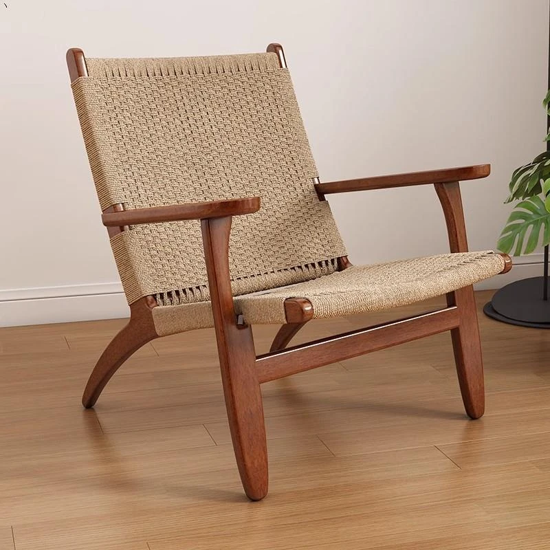 Vintage Rattan Single Sofa Chair - Solid Wood Balcony Lounge Chair for Home & Airbnb, Cozy Living Room Recliner