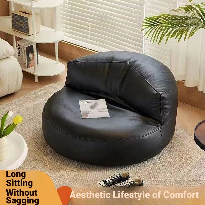 Lazy Sofa Chair - Stylish Leather Tatami for Living Room, Bedroom, or Balcony - Perfect for Small Spaces - Trendy Single-Seat Recliner Ideal for Relaxing and Working