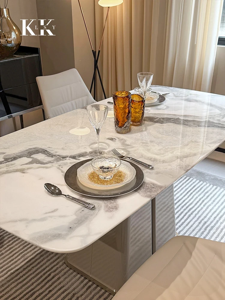 Kaily Moments Italian Minimalist Natural Luxury Stone Dining Table - Fendi White High-End Light Luxury Rectangular Marble - Perfect for Sophisticated Dining Experiences
