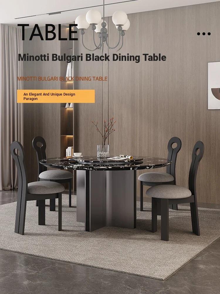 Italian Minimalist Bulgari Black Luxury Round Dining Table - Modern Simple Design with Black Rose Marble for Home Use, Perfect for Chic Entertaining