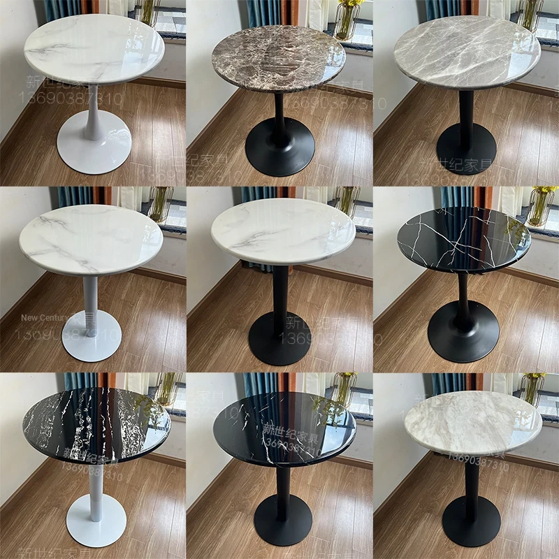 Elegant Minimalist Rock Plate Small Dining Table - Perfect for Tea Shops, Balconies, and Cozy Spaces - Stylish Round Marble Table for Conversations and Relaxation