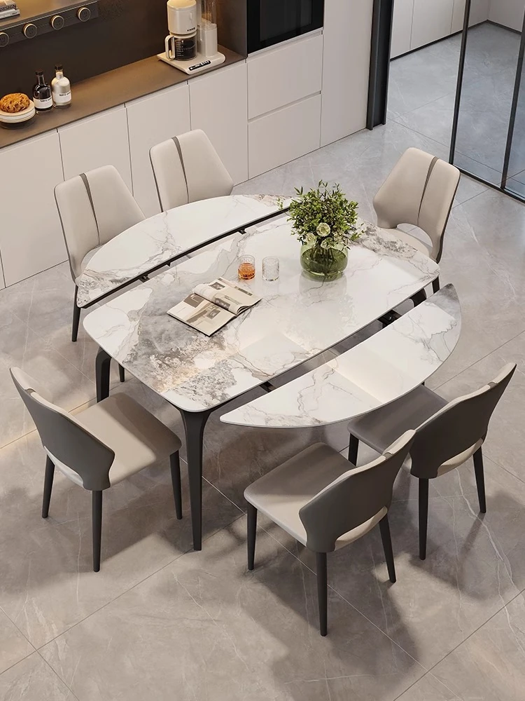 Expandable Round Dining Table with Rock Plate - Versatile and Space-Saving Design for Small Homes, Perfect for Living Rooms and Dining Areas, Transformable Between Round and Square Shapes.