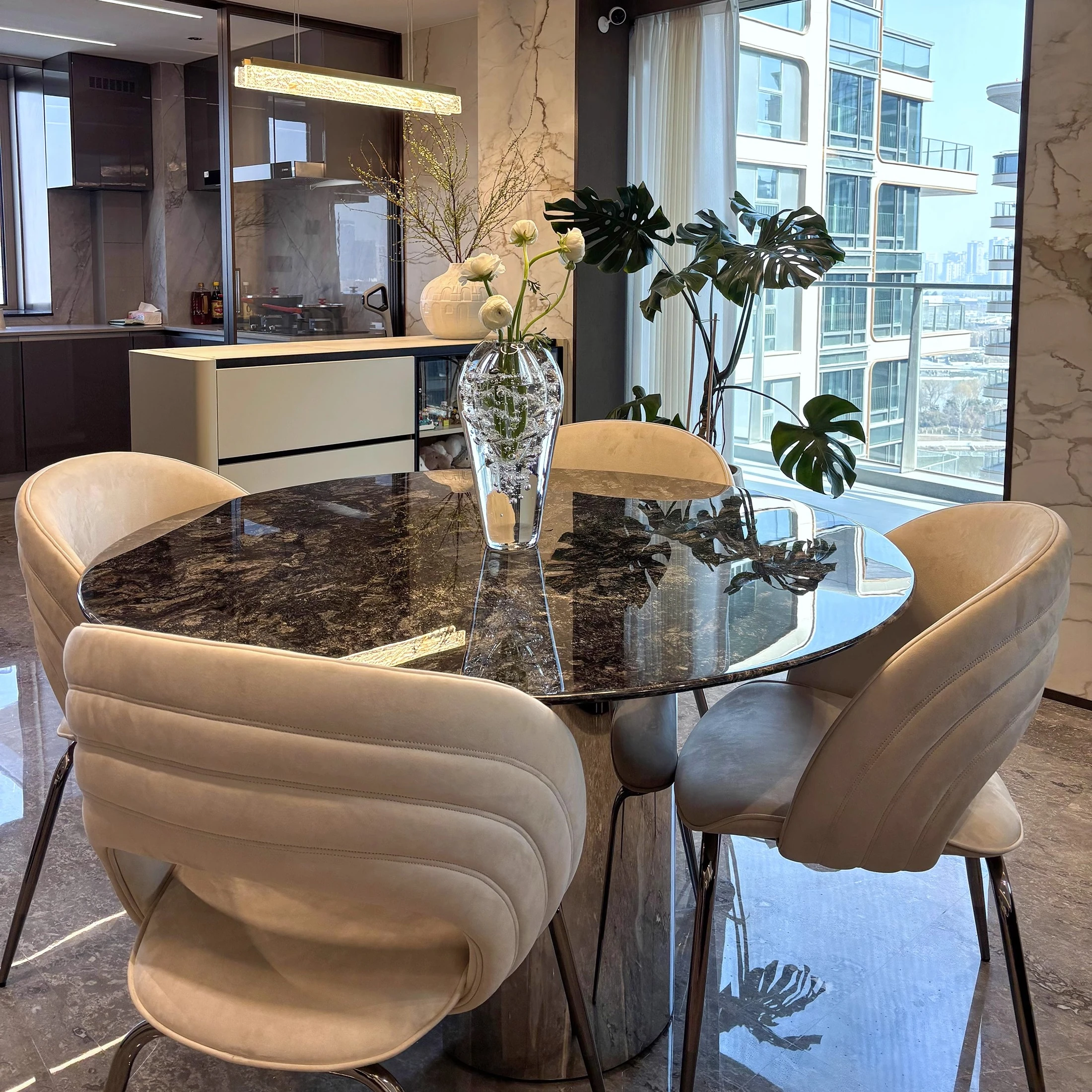 Postmodern Luxury Rock Plate Dining Table and Chair Set - Designer High-End Italian Marble Round Table from Rochburg for Home Use