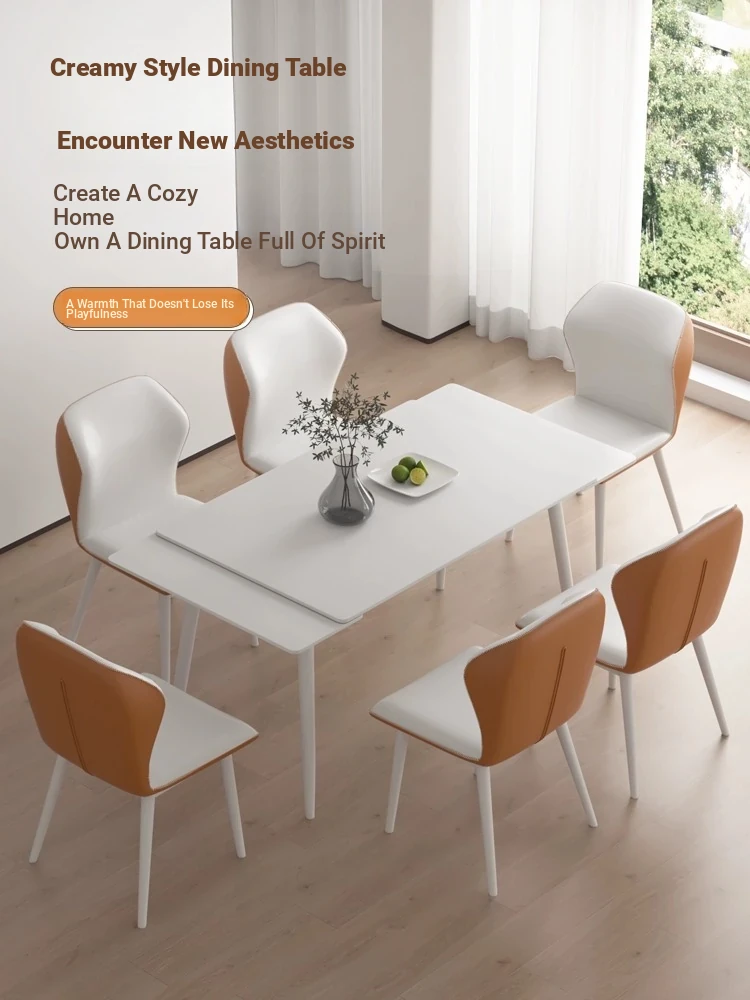 Nordic Modern Minimalist Expandable Folding Dining Table and Chair Set - Creamy Rectangular Table for Small Spaces, Perfect for Cozy Homes