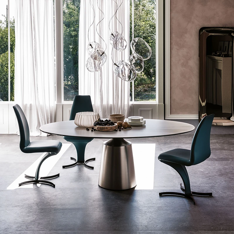 Kaili Moments Italian Minimalist Light Luxury Round Jadeite Dining Table and Chair Set - Modern Home Villa Furniture A