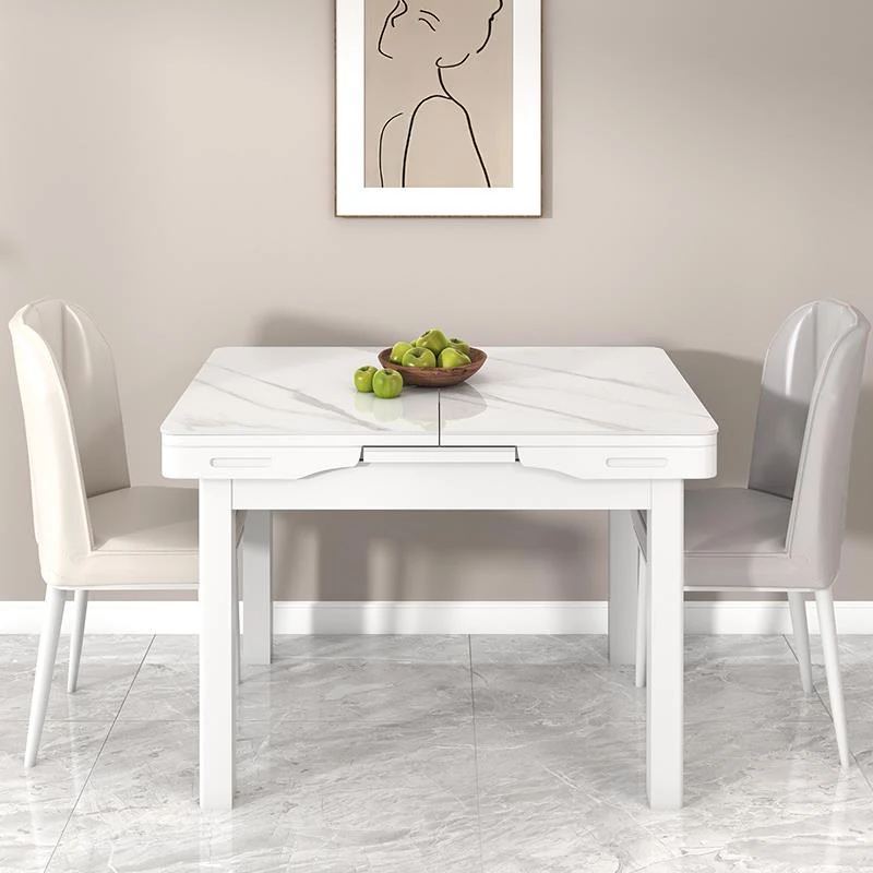 Stylish Luxury Expandable Square Dining Table with Premium Rock Surface - Space-Saving Foldable Design for Small Homes, Perfect Minimalist Solution for Modern Living