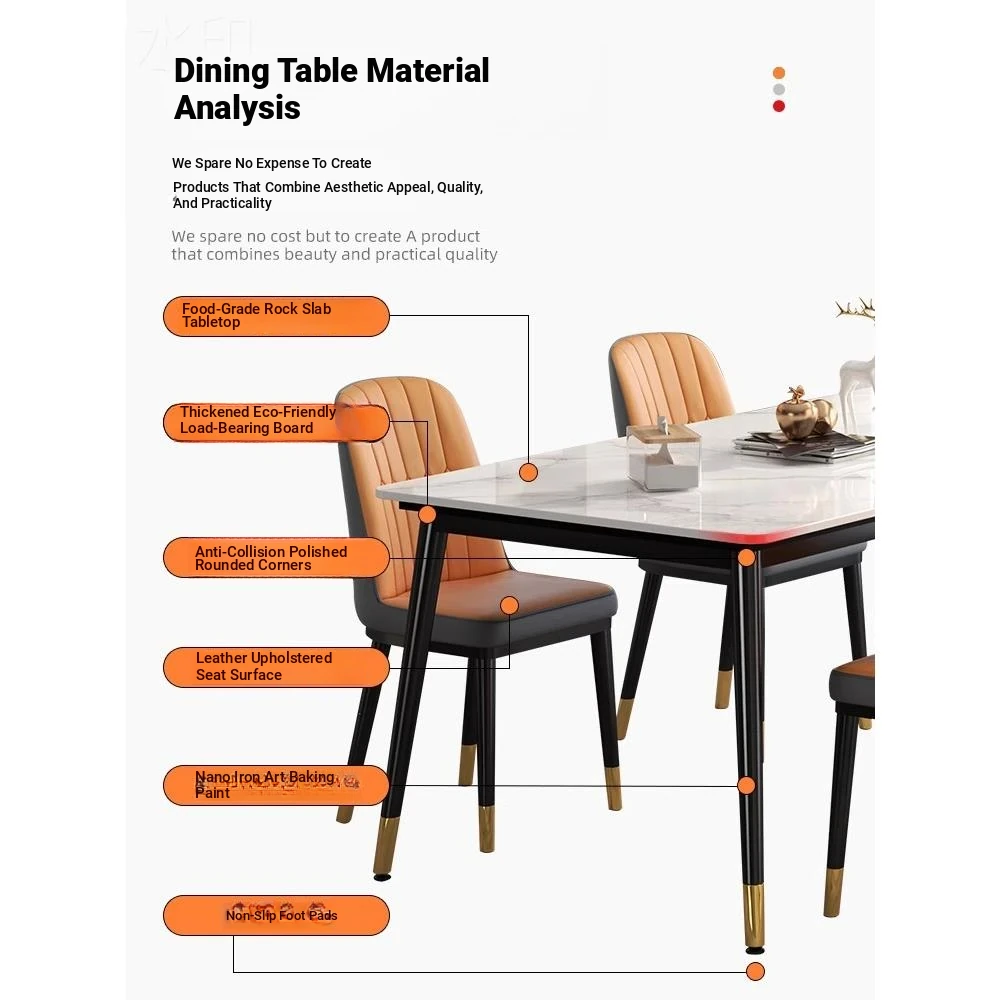 Modern Minimalist Rectangle Dining Table Set with Chairs - Luxury Marble Design for Small Spaces, Perfect for Home Use