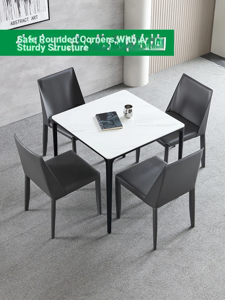 Square Rock Plate Dining Table - Minimalist Home Use, Perfect for Small Spaces. Ideal for Living Room Meals, Solid Wood Construction, Versatile as Tea or Writing Desk.