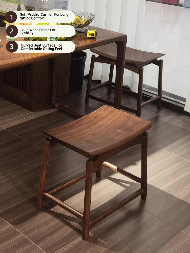Walnut Wood Yuanbao Stool - New Chinese Style Solid Wood Makeup Bench, Minimalist Design for Home Use, Saddle Stool for Dressing and Vanity Needs