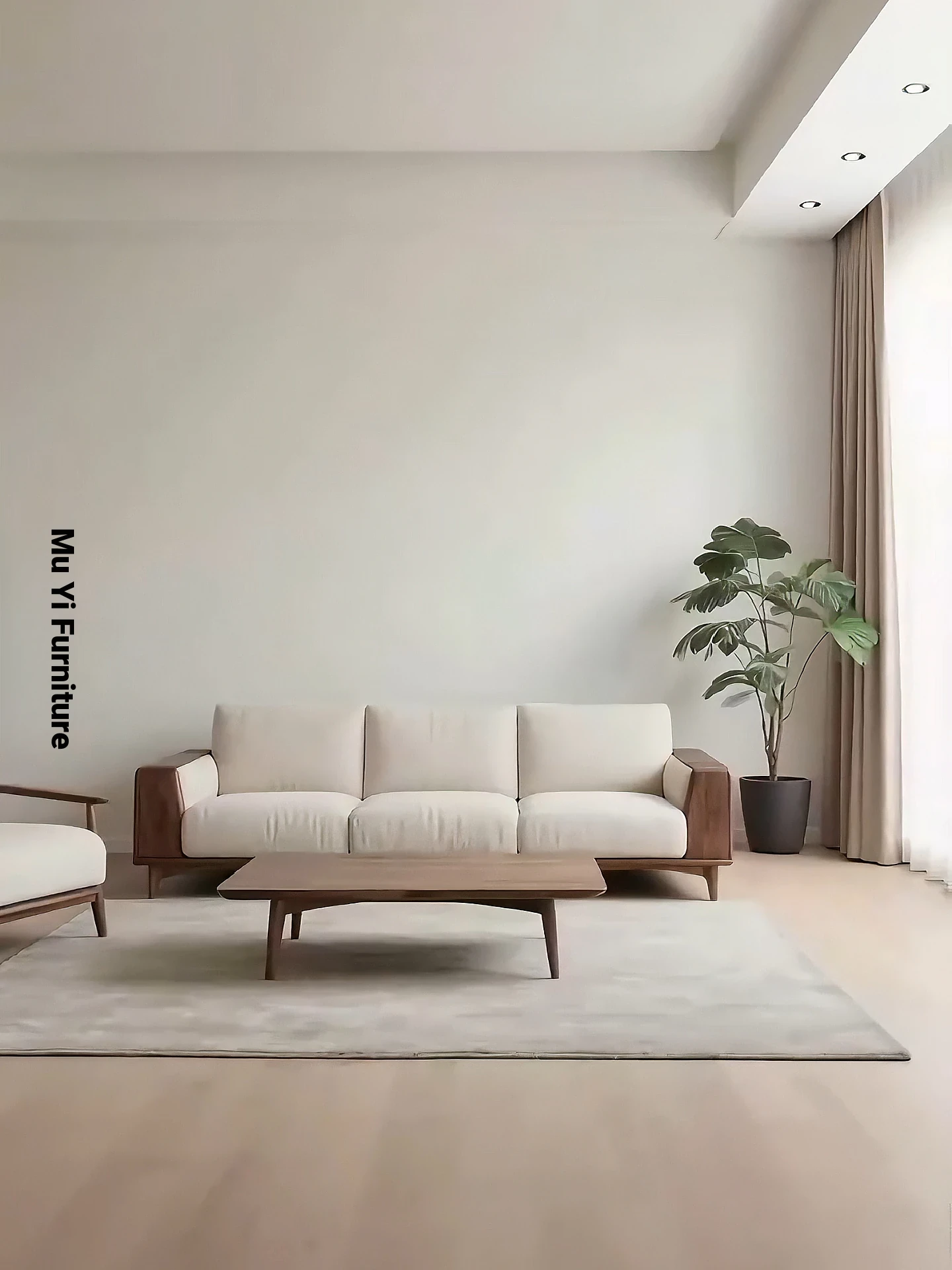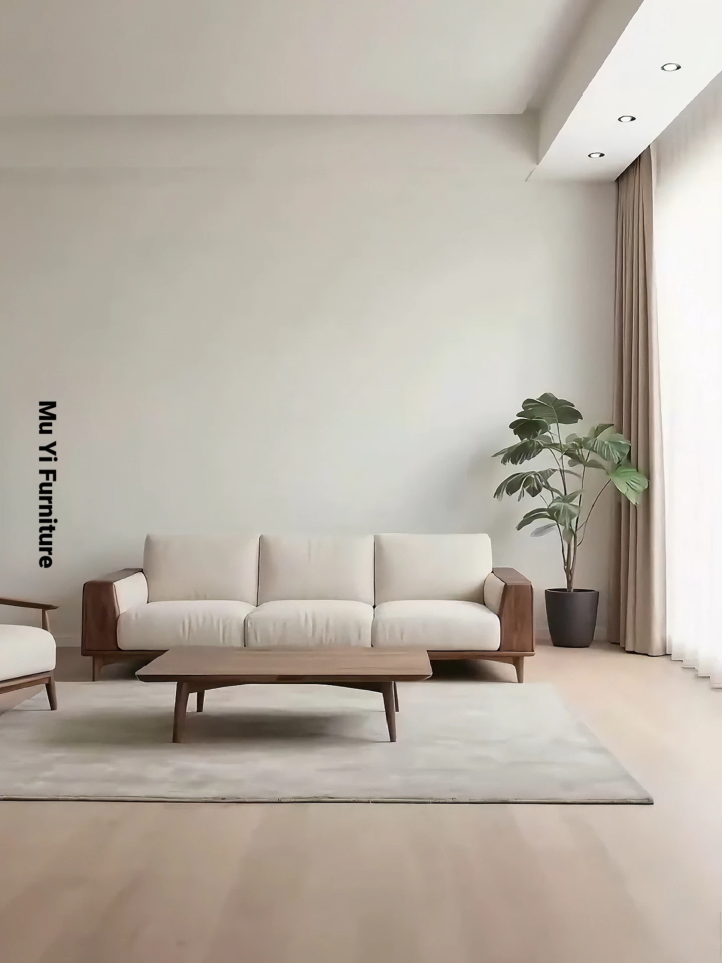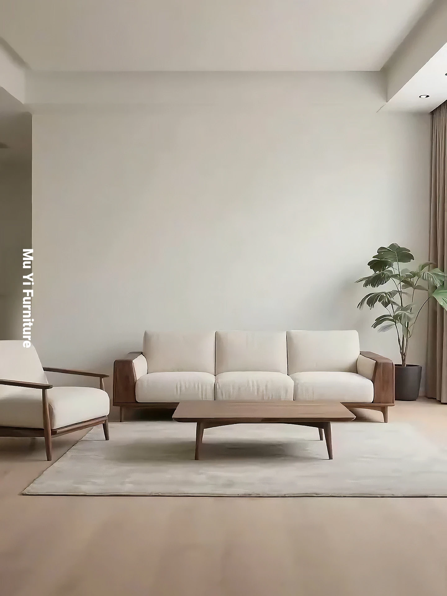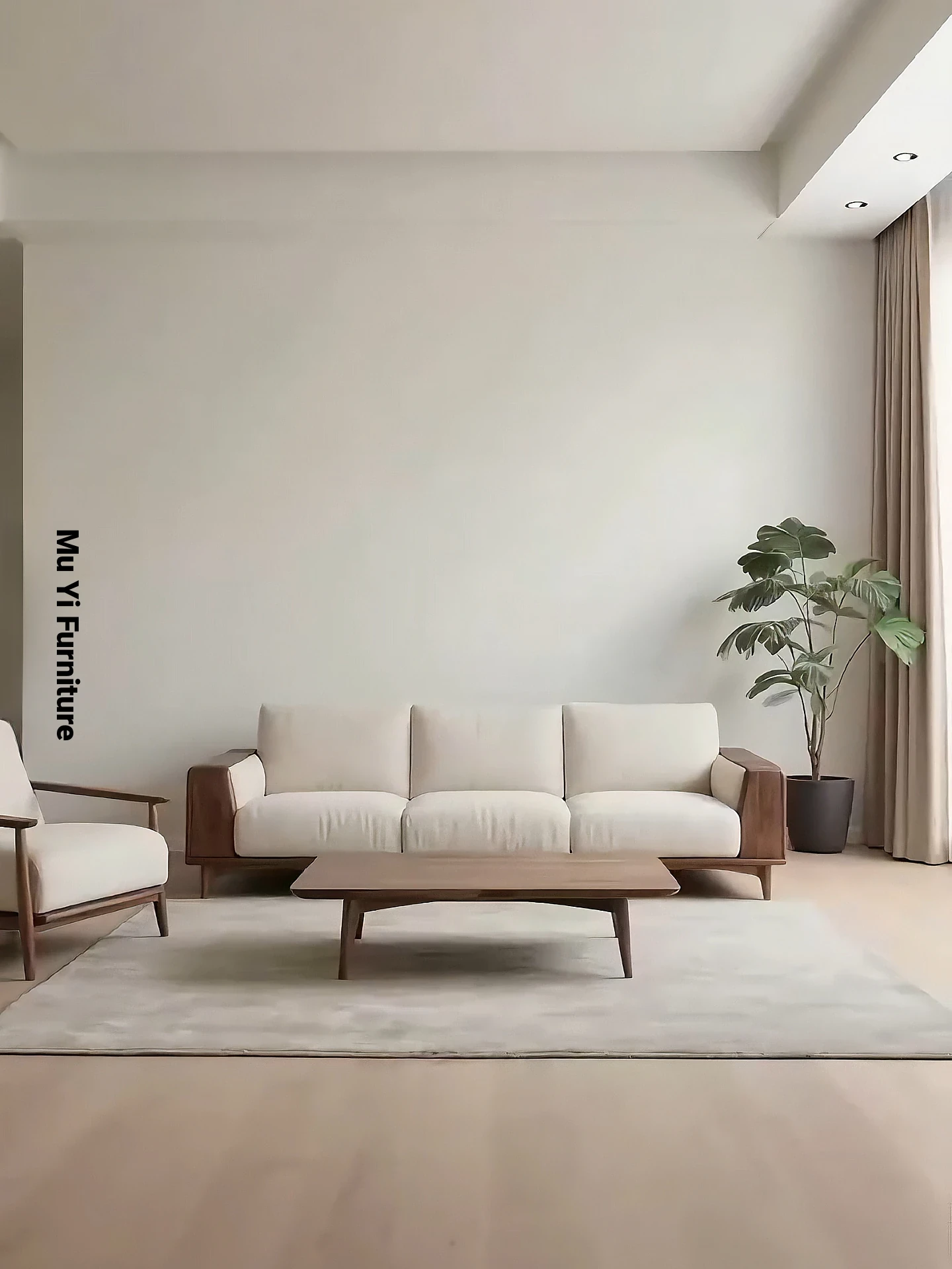 2025 New Collection: Modern Chinese Style Sofa Set in North American Black Walnut with Fabric Upholstery - Minimalist Song Aesthetic Solid Wood Sofa