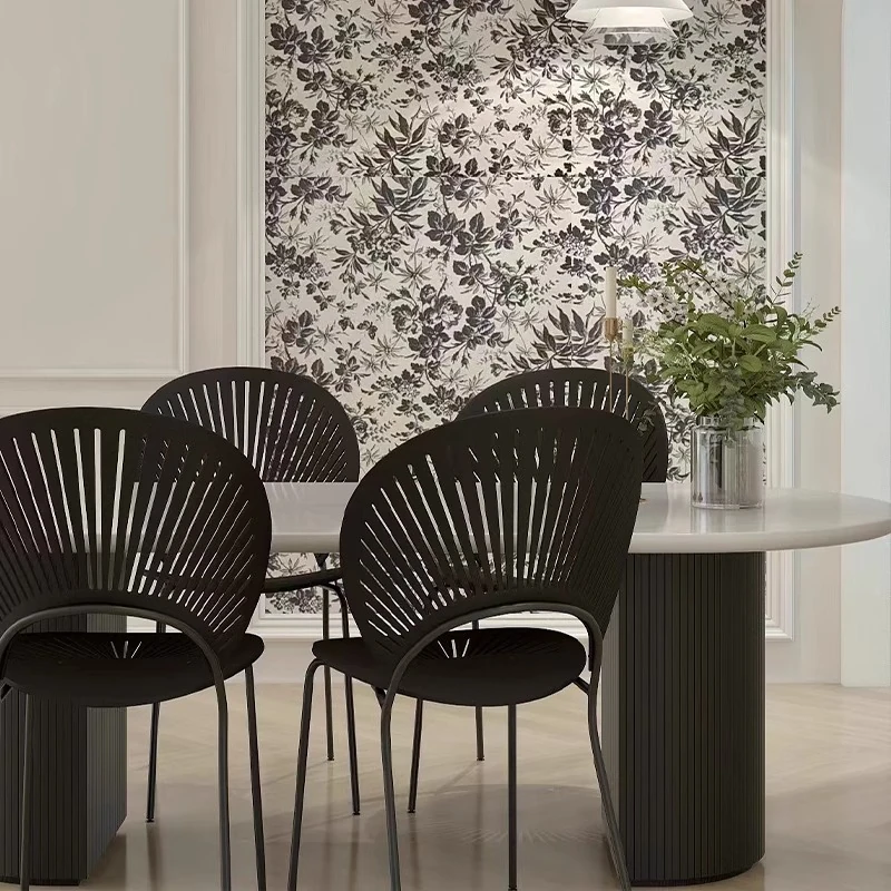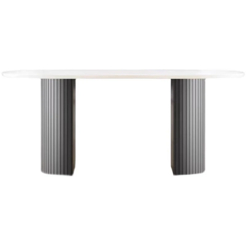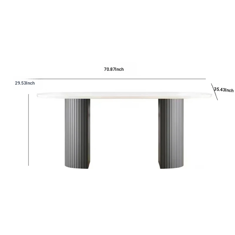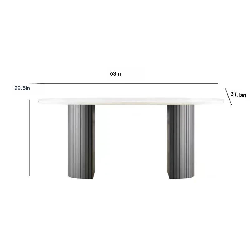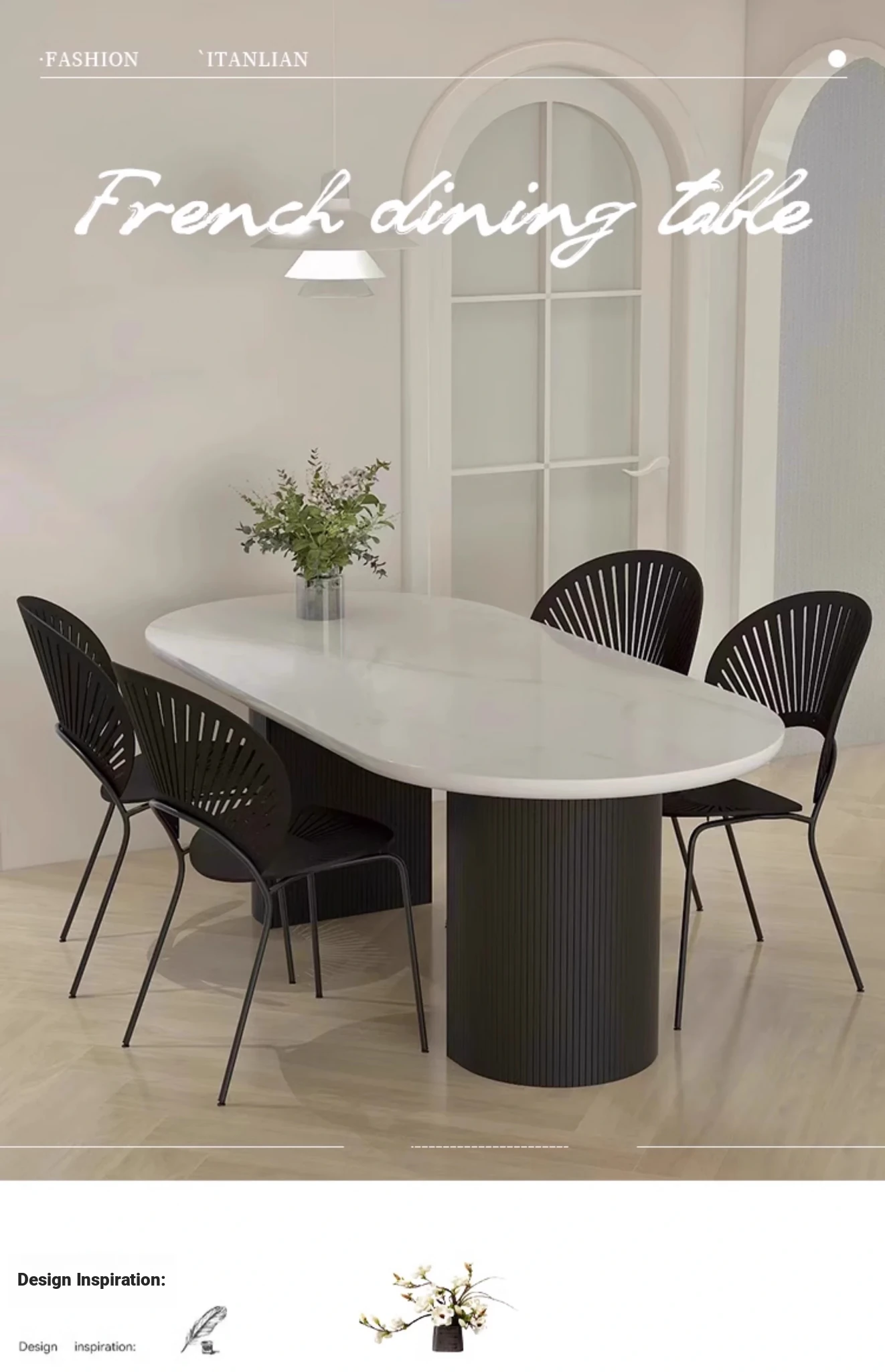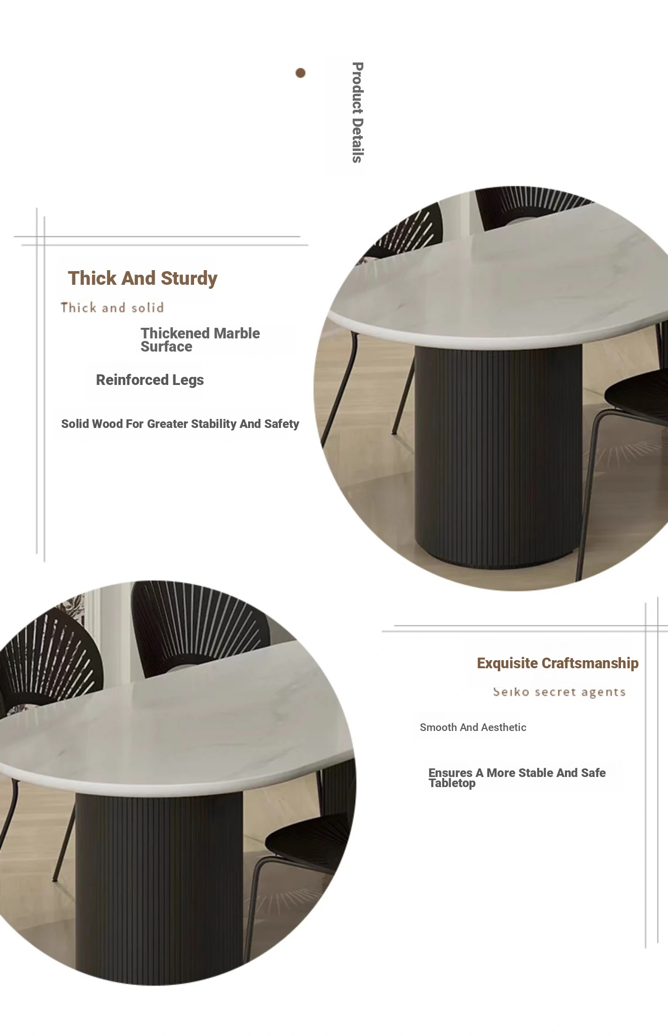 Elegant French Marble Dining Table Set with Chairs - Nordic Minimalist Design for Small Spaces, Featuring Stylish Solid Wood Oval Table, Perfect for Modern Living.