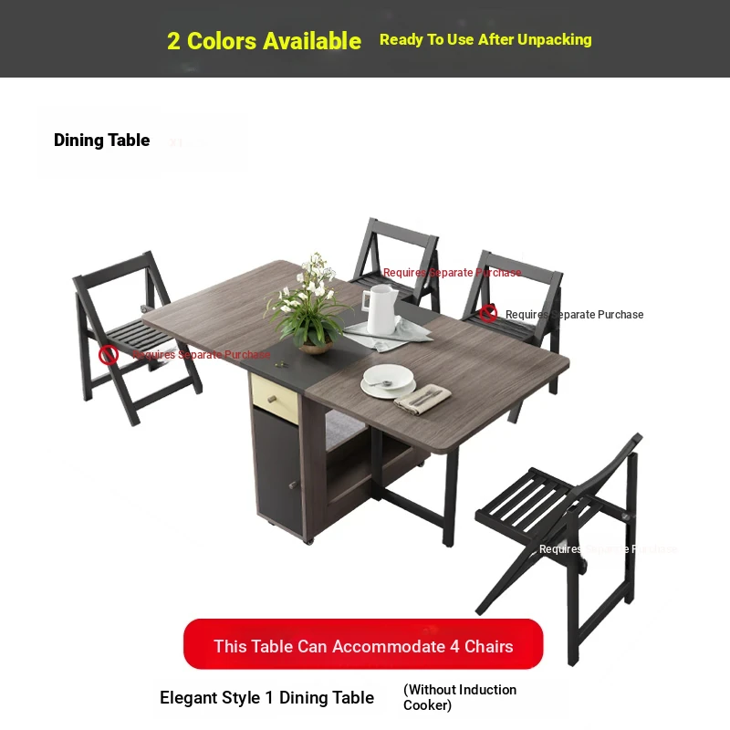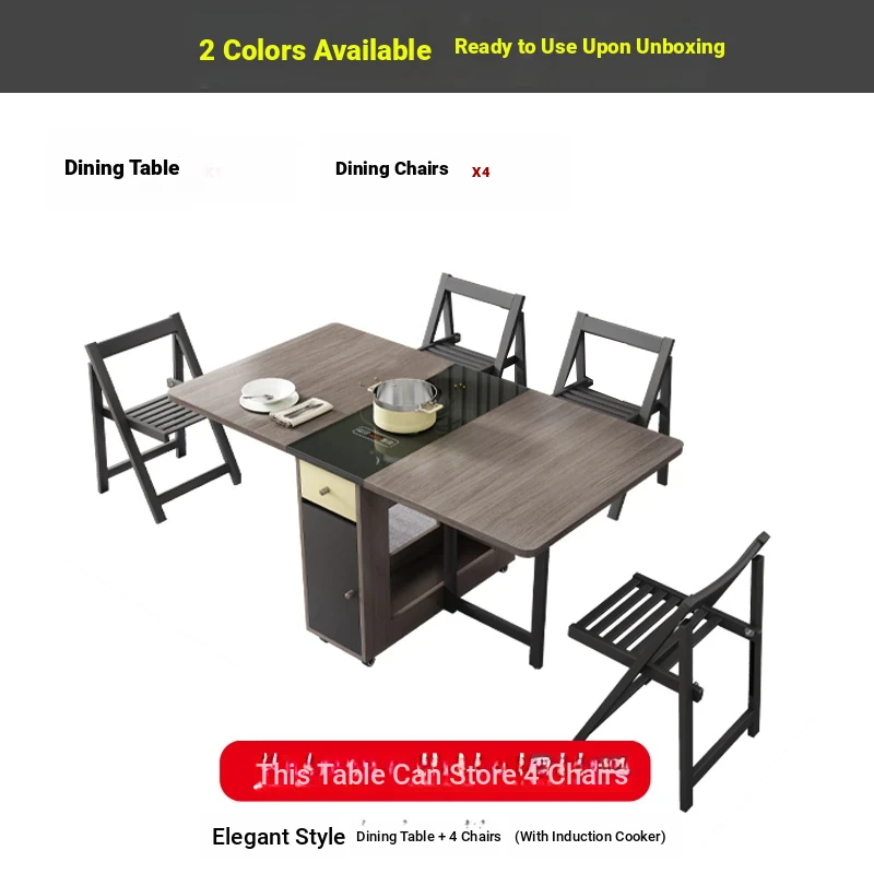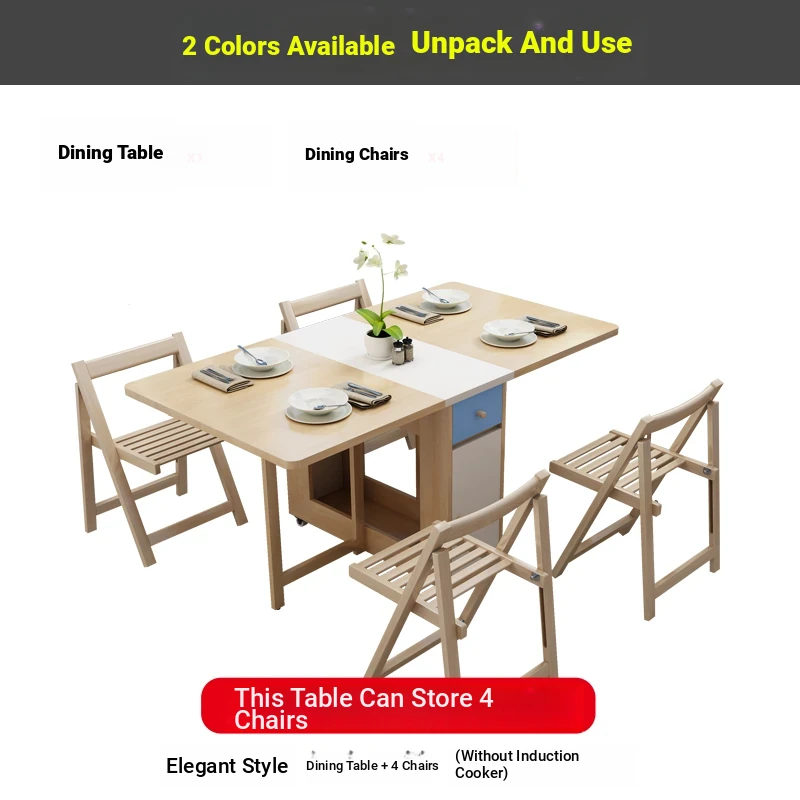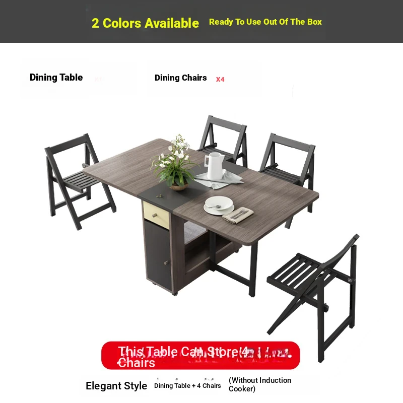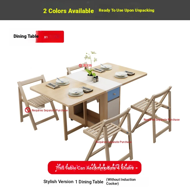 Free Shipping to Hong Kong - Nordic Style Multi-Functional Folding Dining Table and Chair Set, Modern Minimalist Expandable Dining Table for Small Spaces, Perfect for Home Use