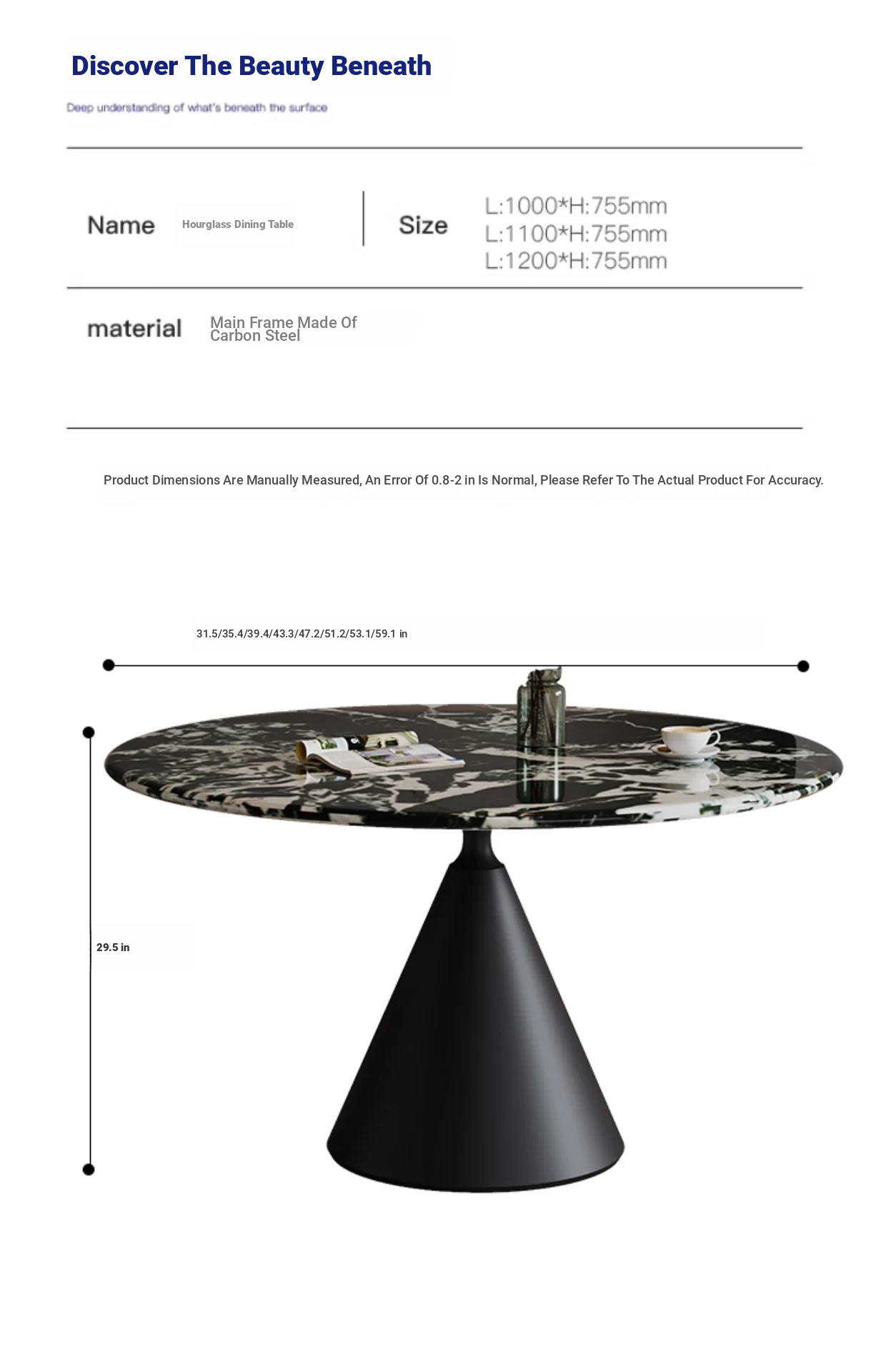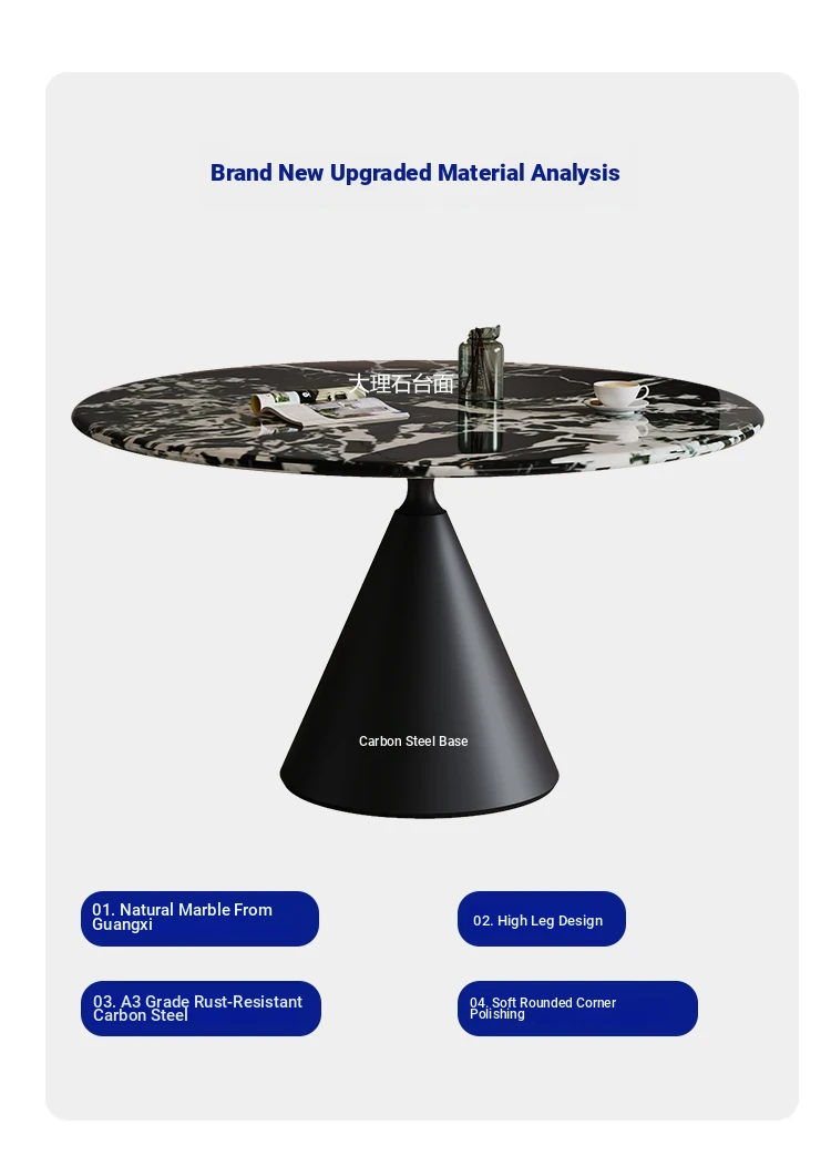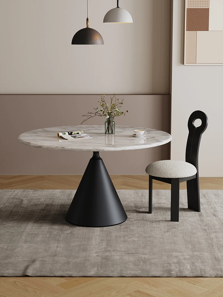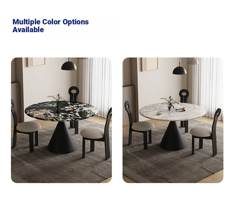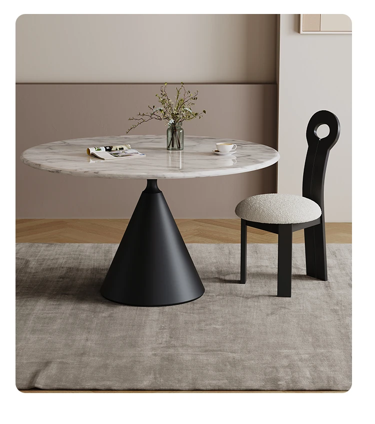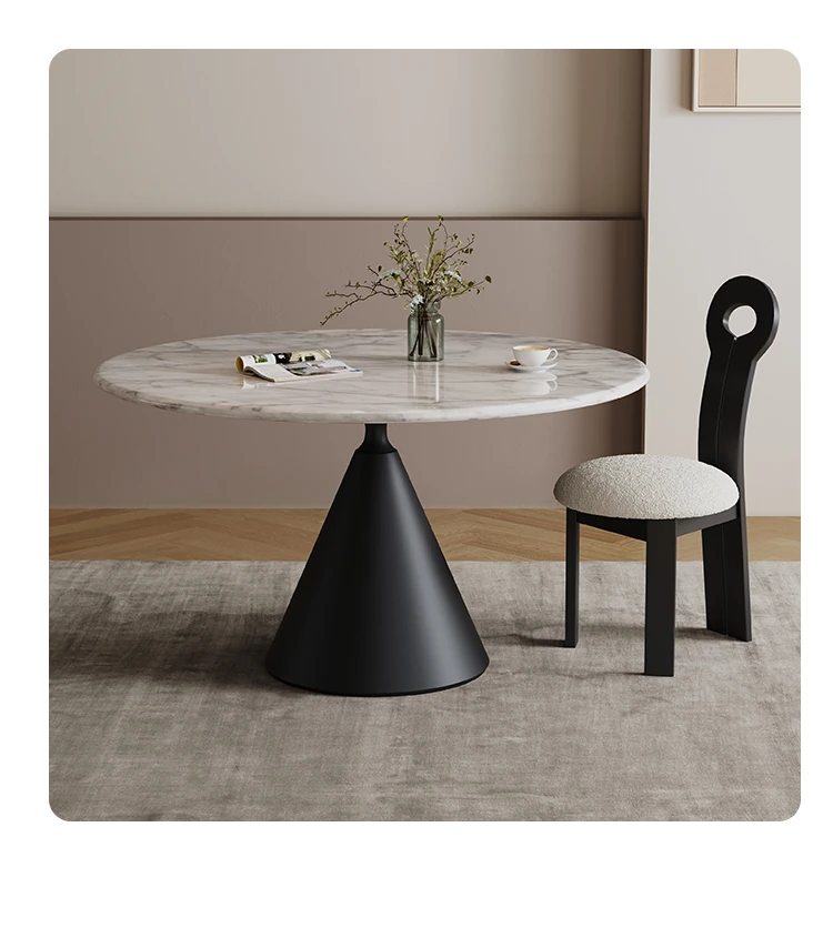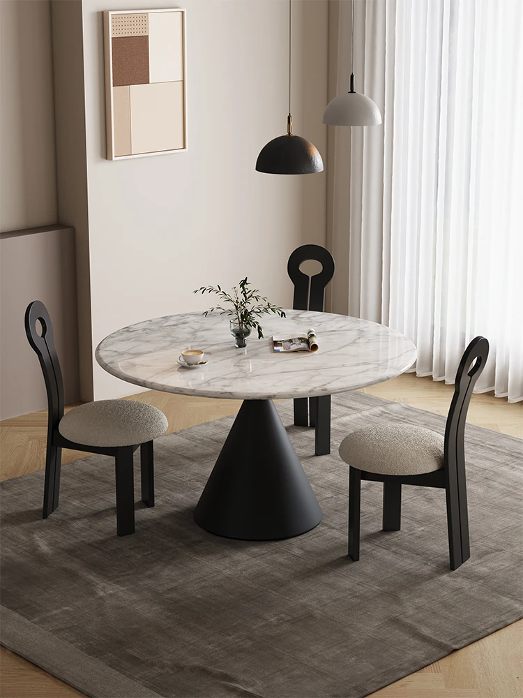 French Round Luxury Marble Dining Table for Small Spaces - Modern Minimalist Black Rose Design for Your Home