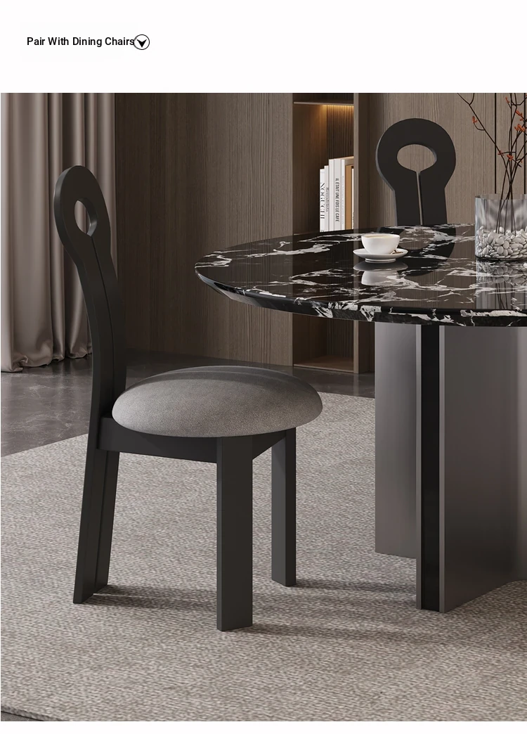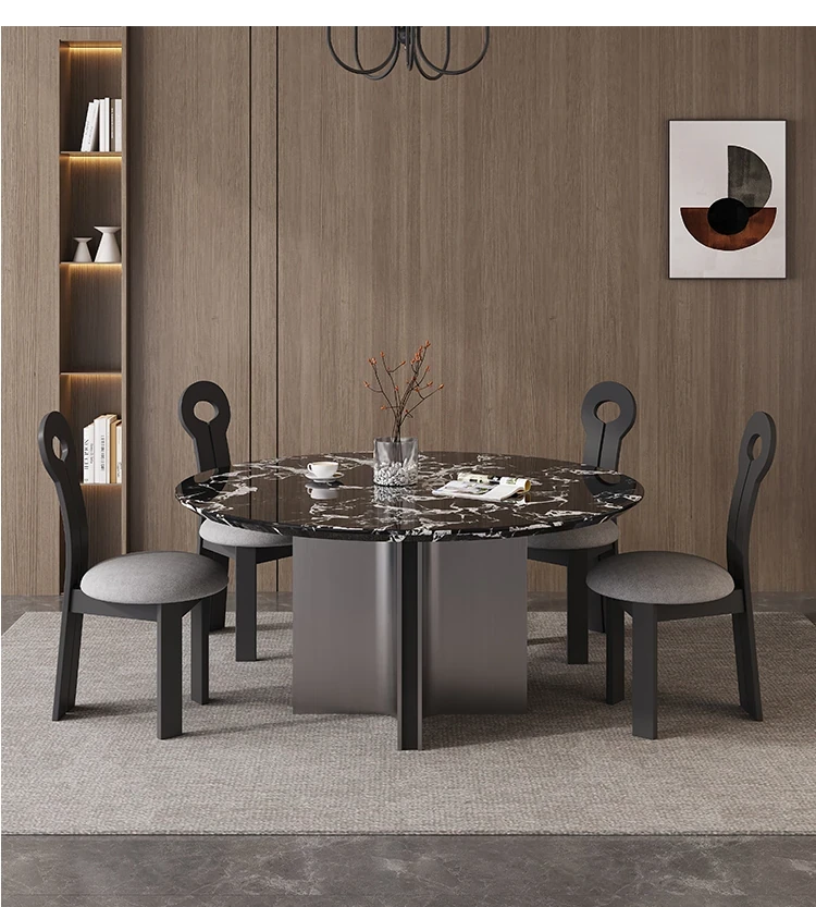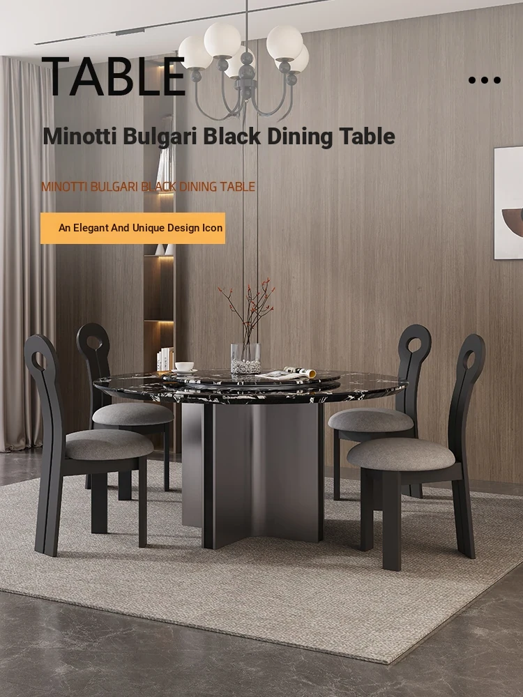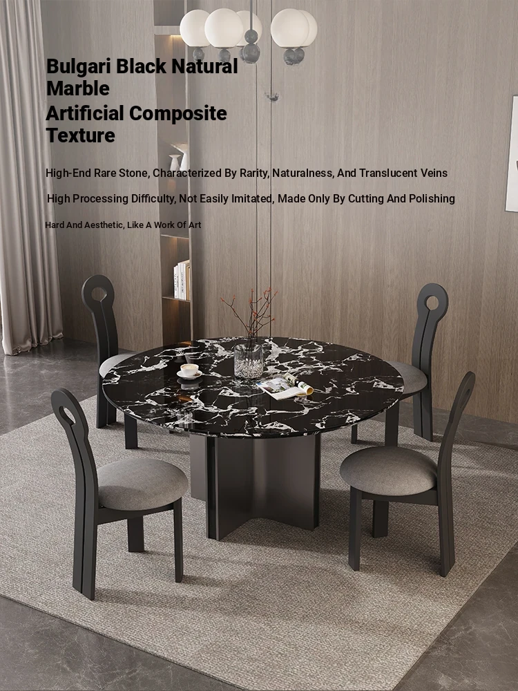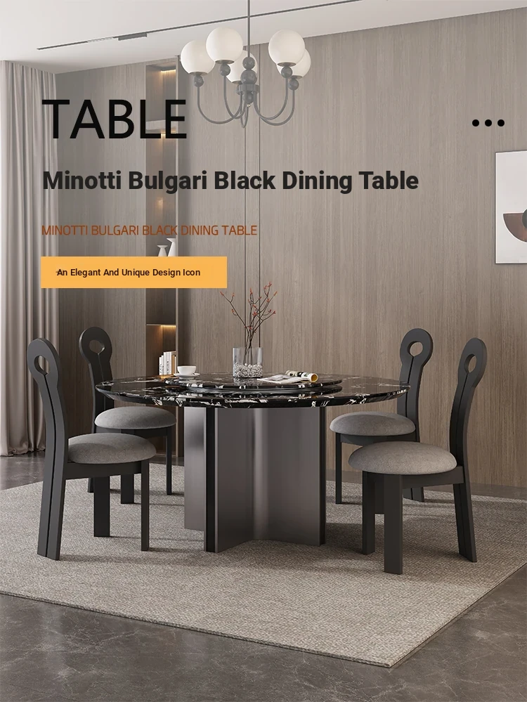 Italian Minimalist Bulgari Black Luxury Round Dining Table - Modern Simple Design with Black Rose Marble for Home Use, Perfect for Chic Entertaining