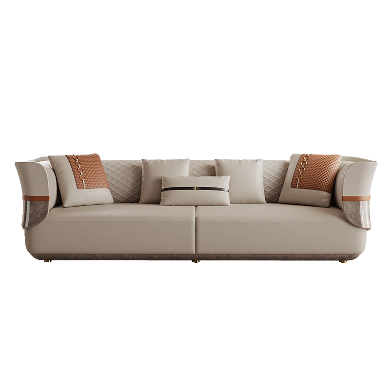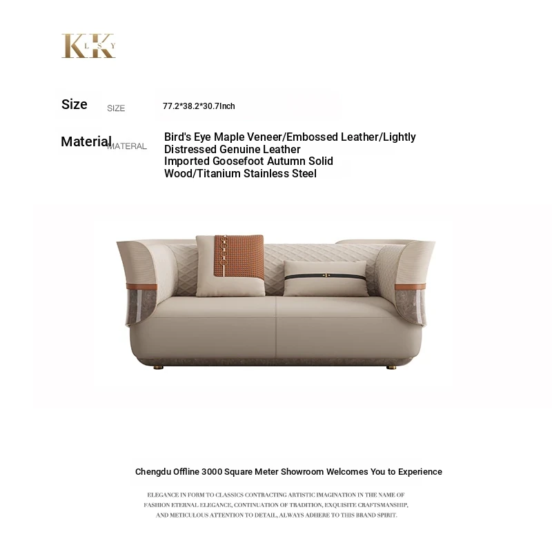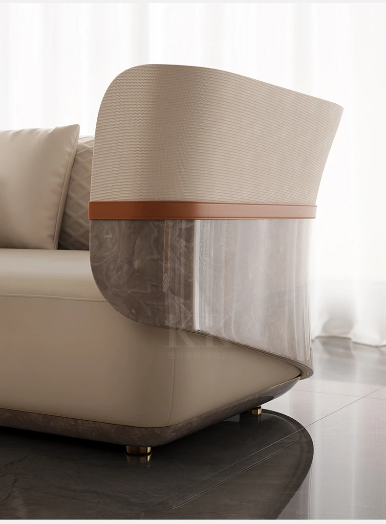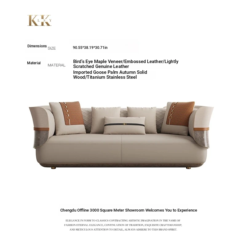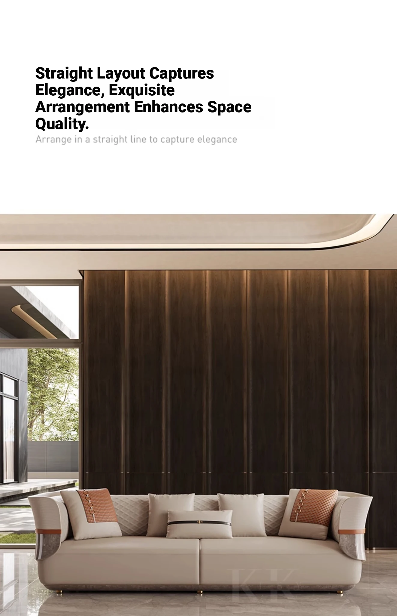 Kaili Moments Italian Luxury Style Top Grain Leather Straight Sofa - Elegant Living Room Sofa for Spacious Villas and Apartments - Luxurious Comfort and Timeless Design
