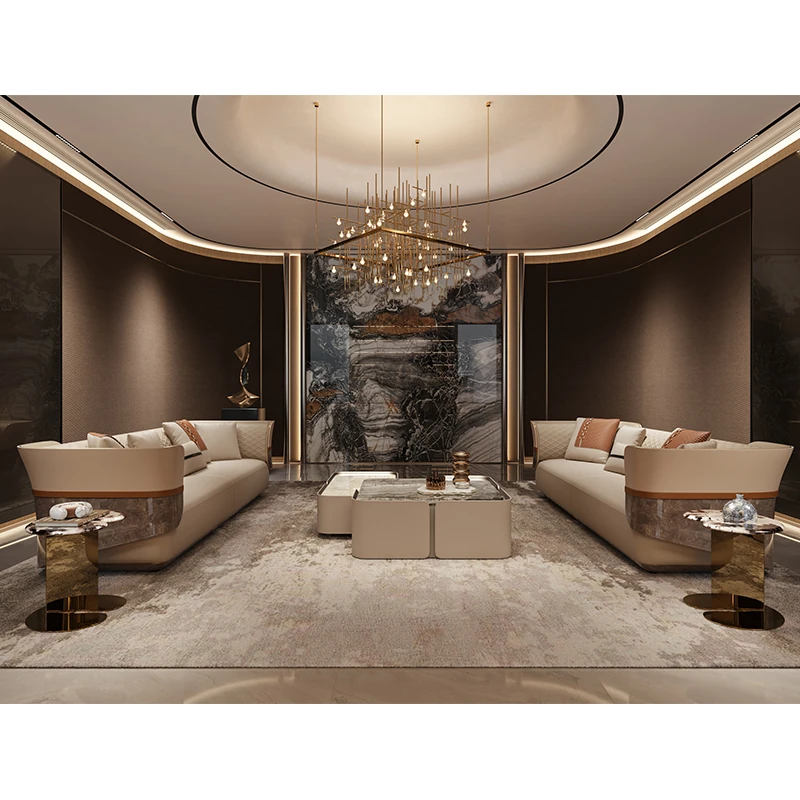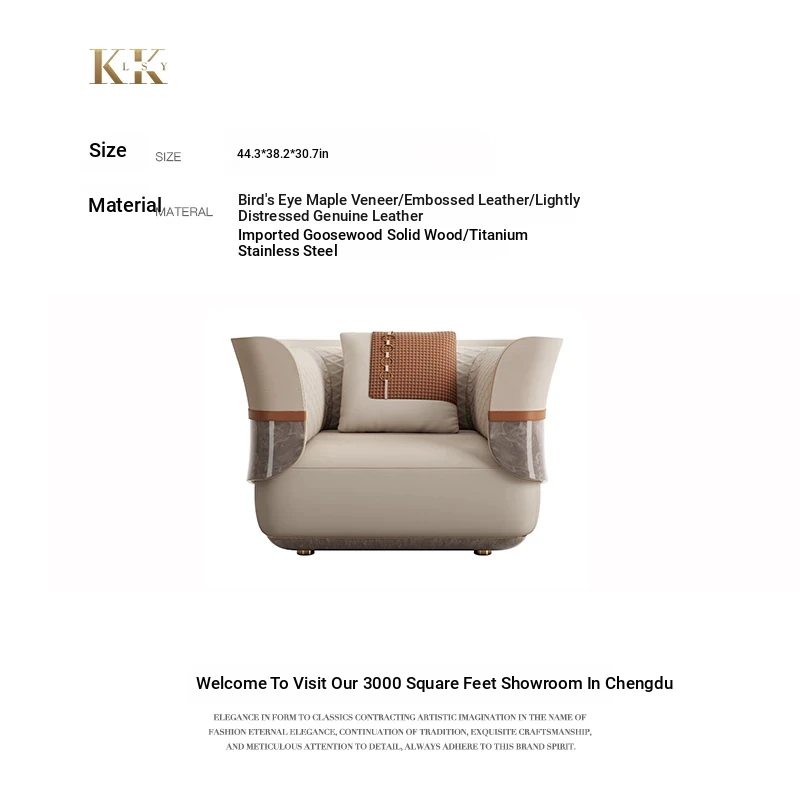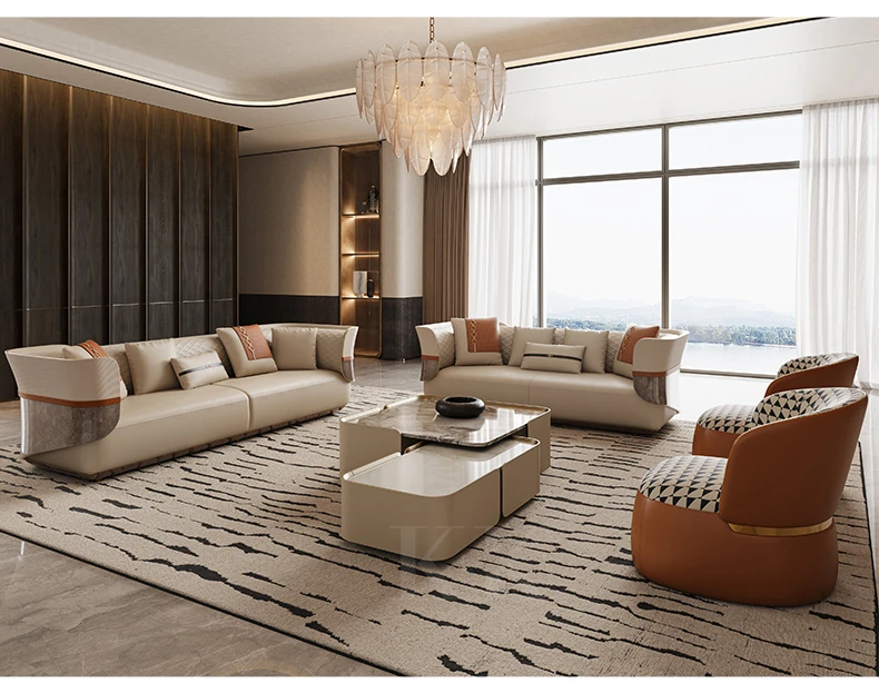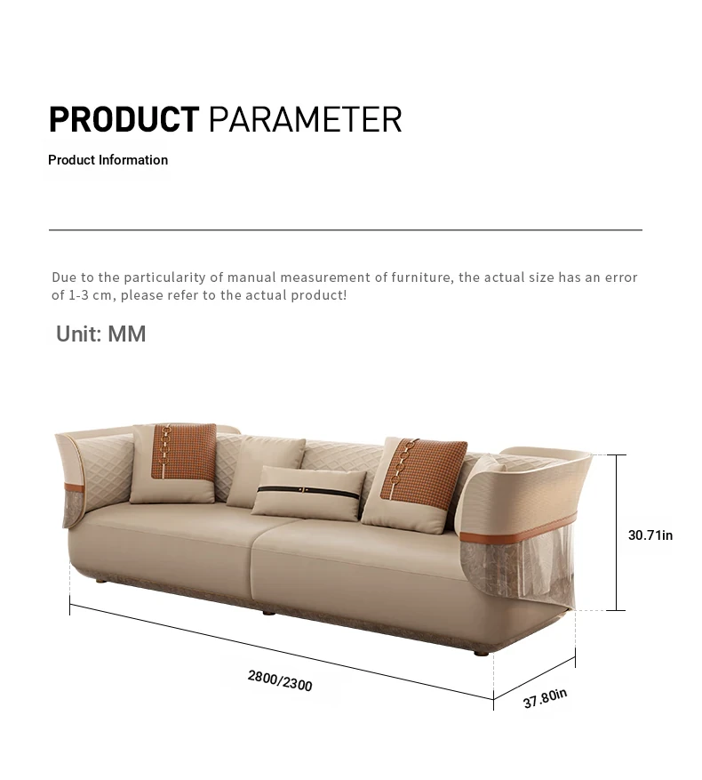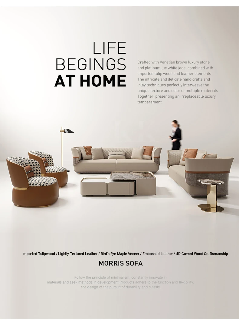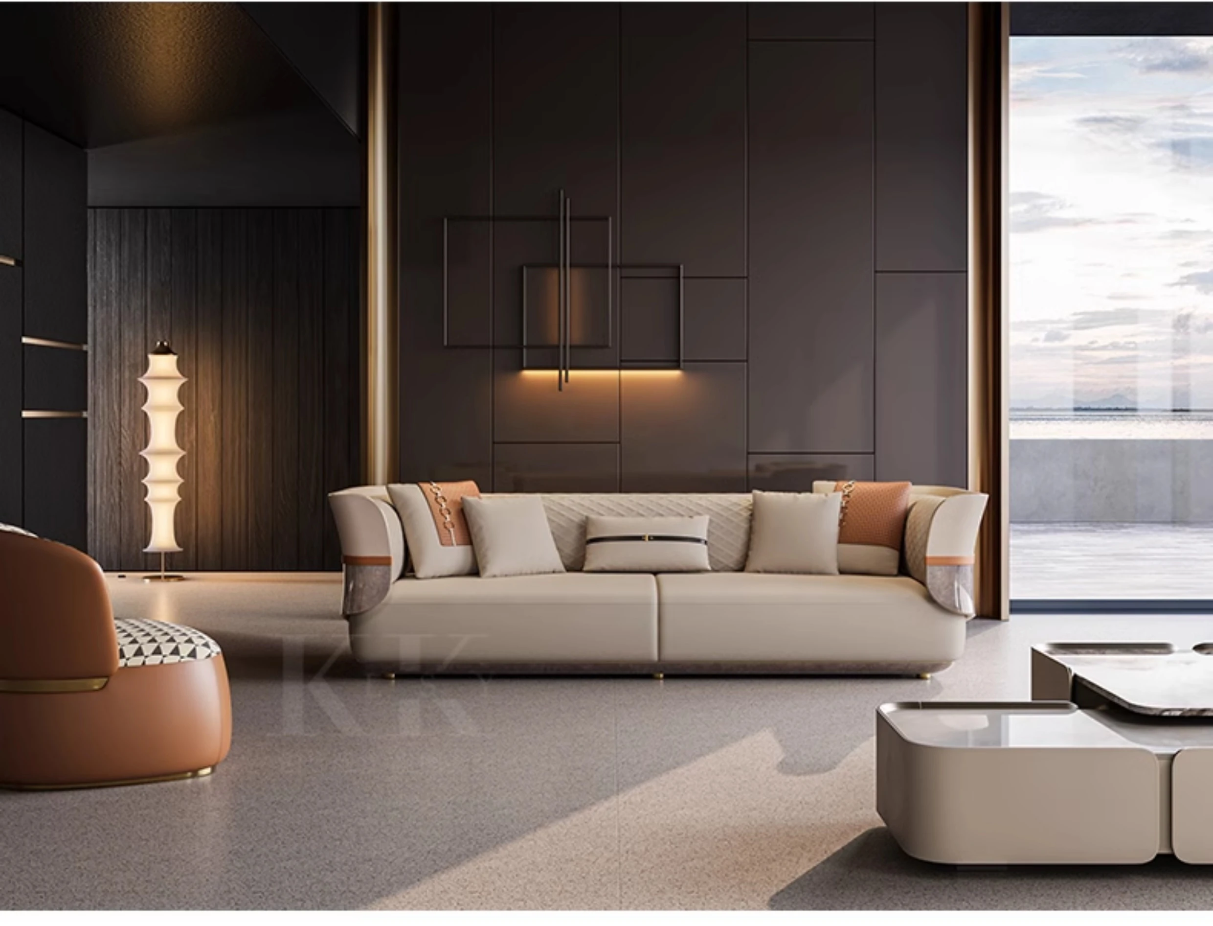 Kaili Moments Italian Luxury Style Top Grain Leather Straight Sofa - Elegant Living Room Sofa for Spacious Villas and Apartments - Luxurious Comfort and Timeless Design
