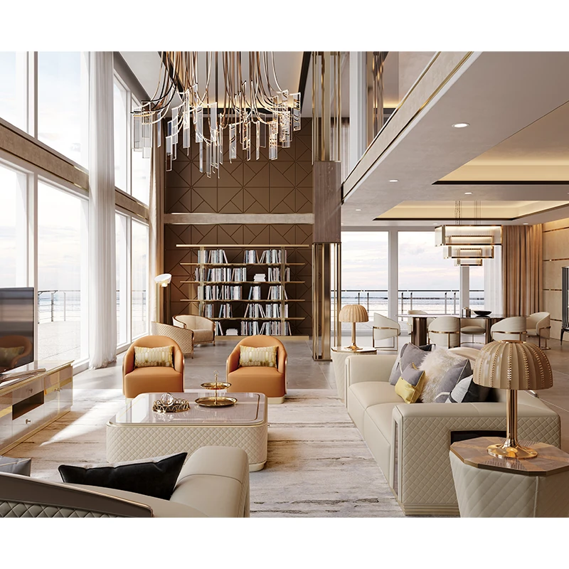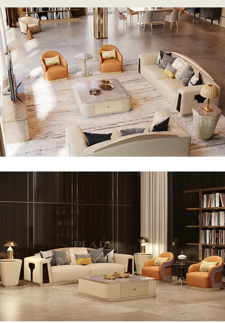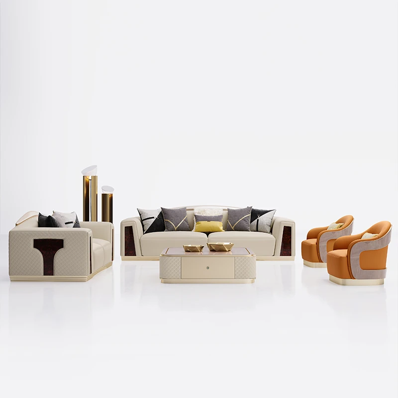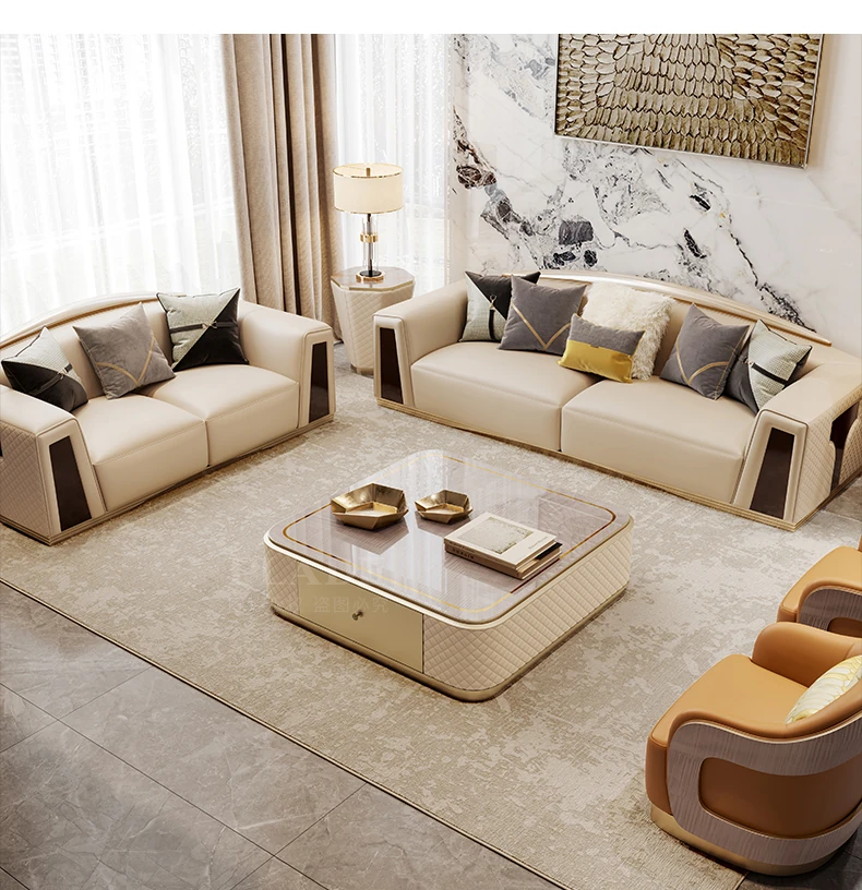 1.95+2.87 sofa combination + tea table + single chair + corner table(Luxury Combo)