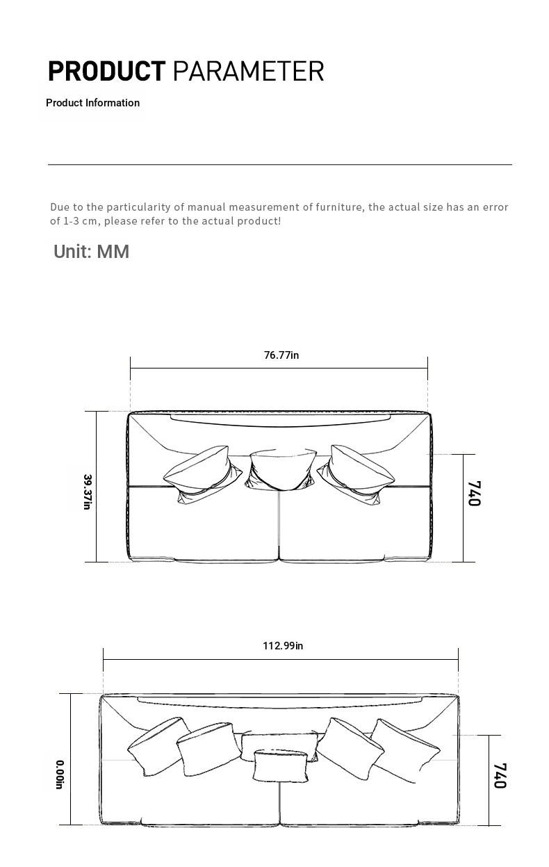 76.77 in sofa +112.99 in sofa(Sofa combination)