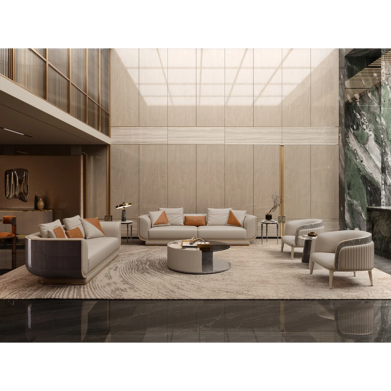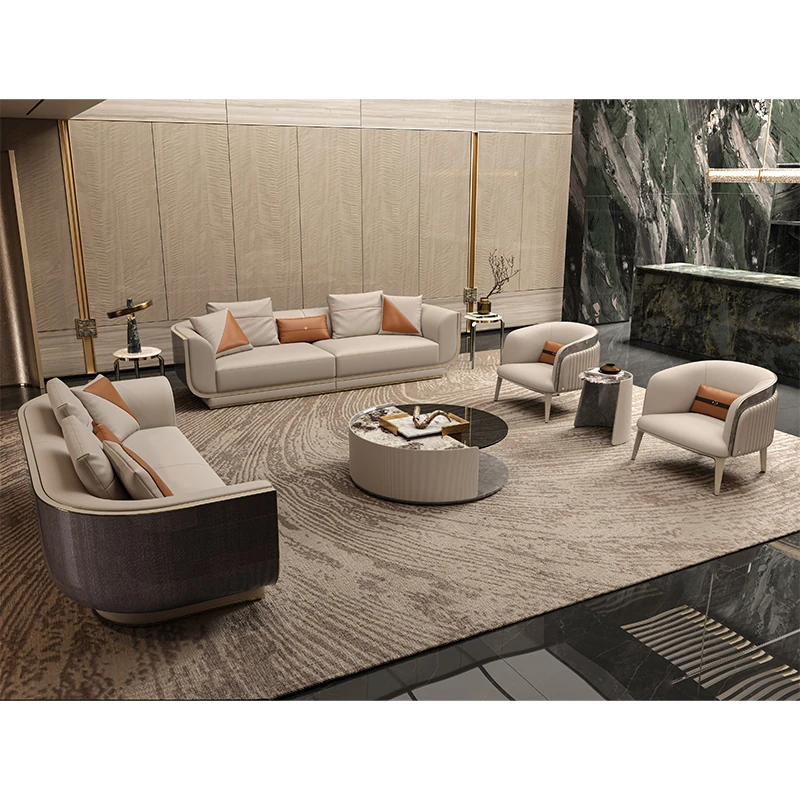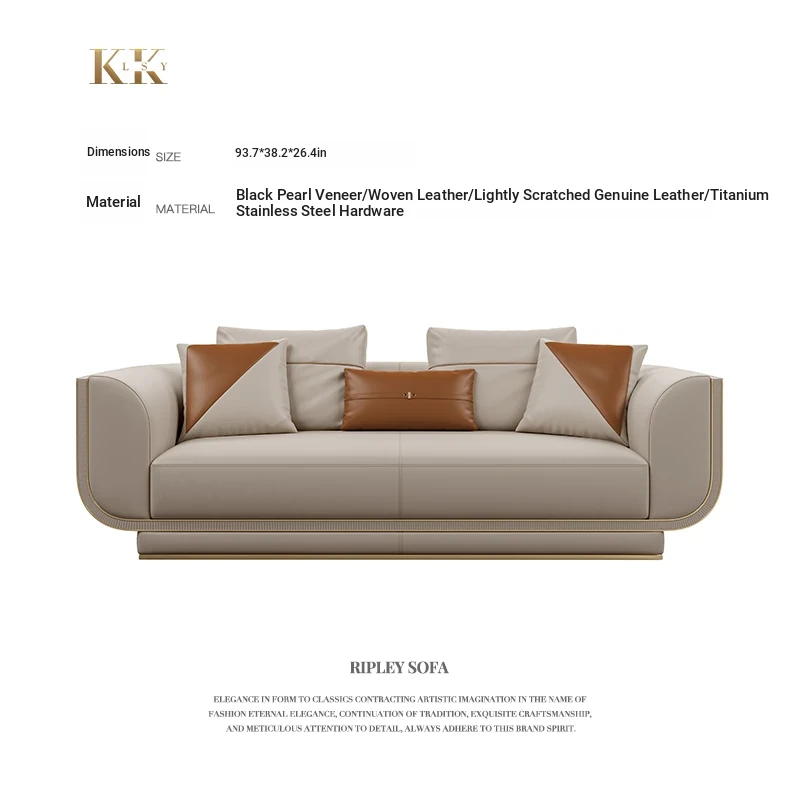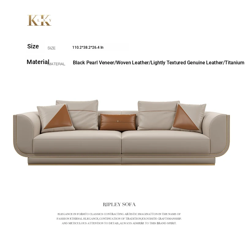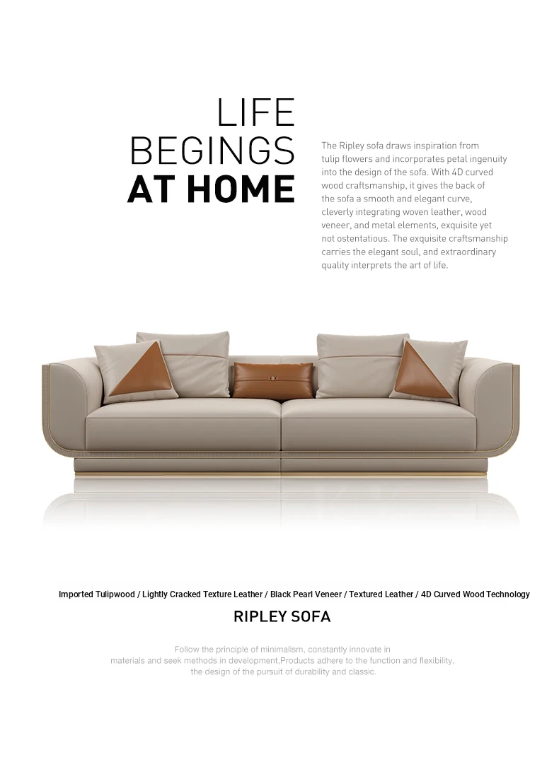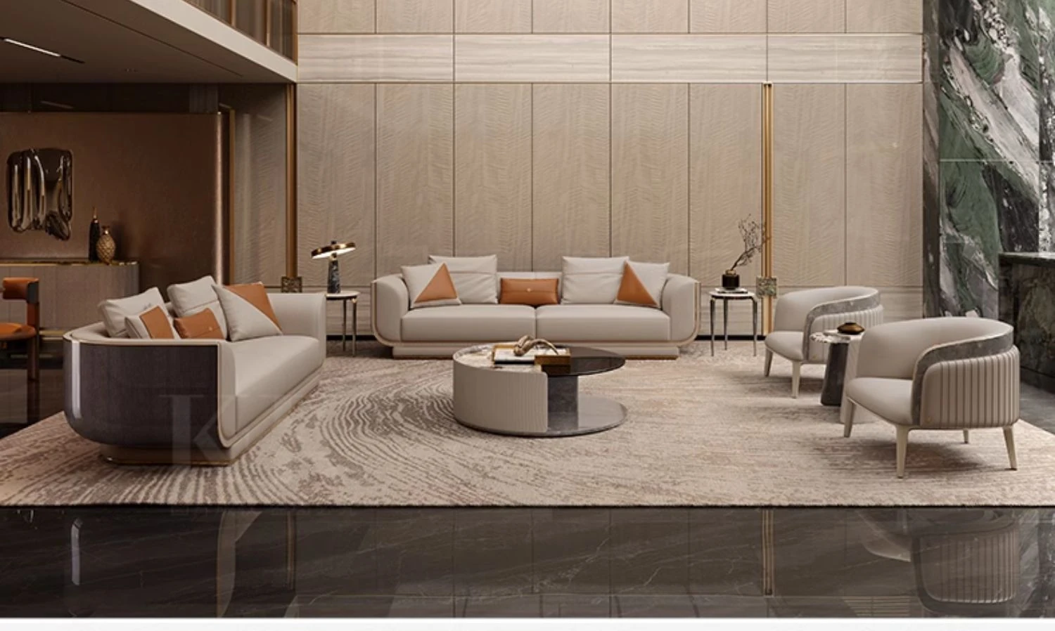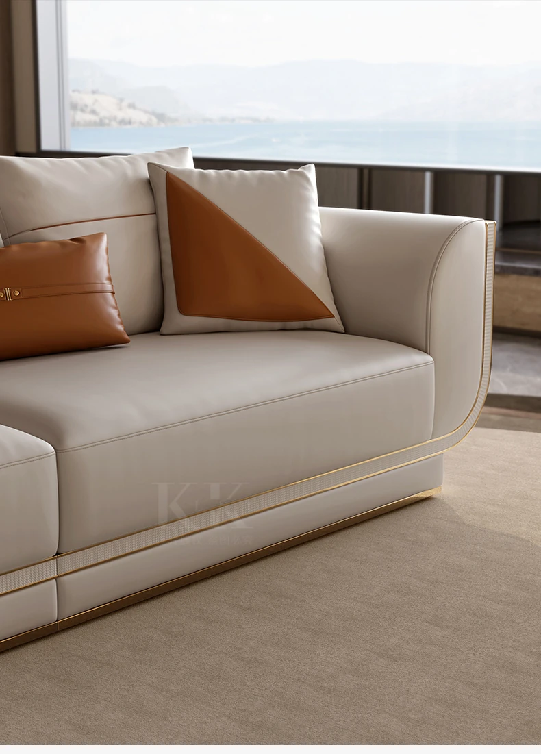 Kaili Moments Luxury Genuine Leather Modular Sofa - Modern Minimalist Designer Style for Spacious Living Rooms and Villas