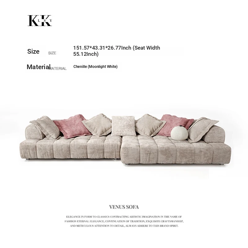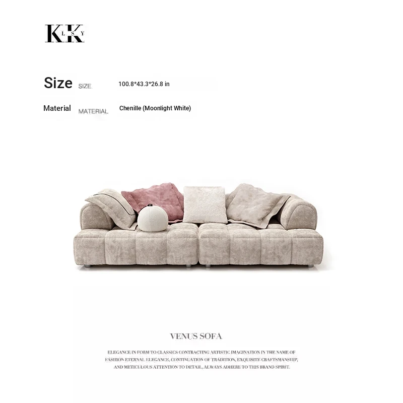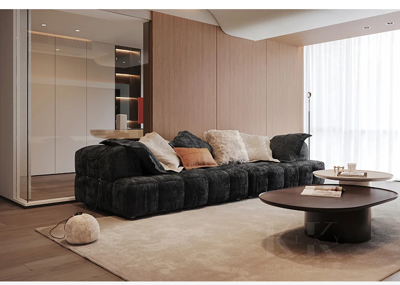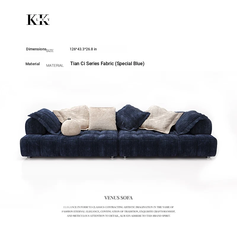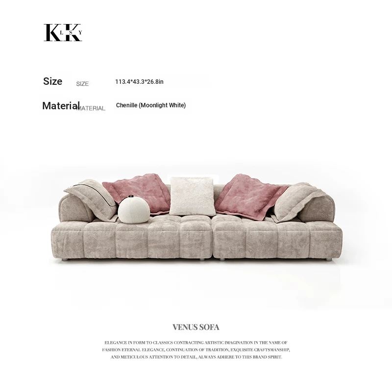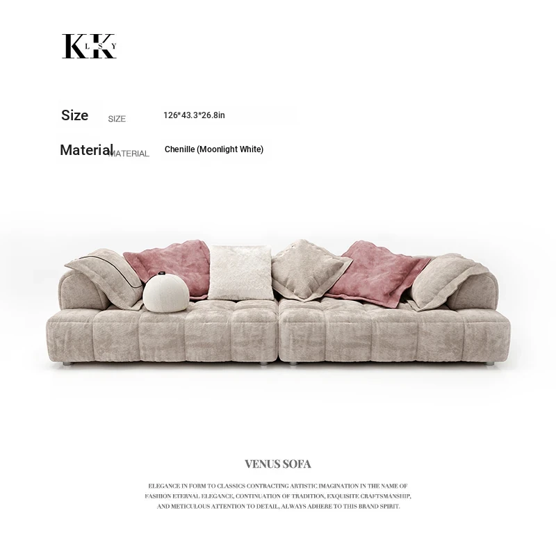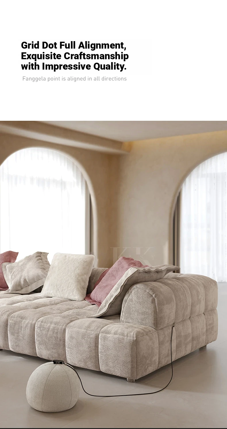 Kairi Moments Italian Light Luxury Fabric Sofa - Modern Minimalist Cream Puff Style Straight Sofa for Living Room