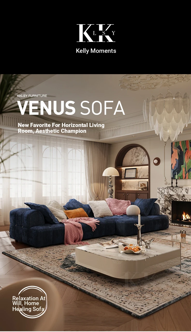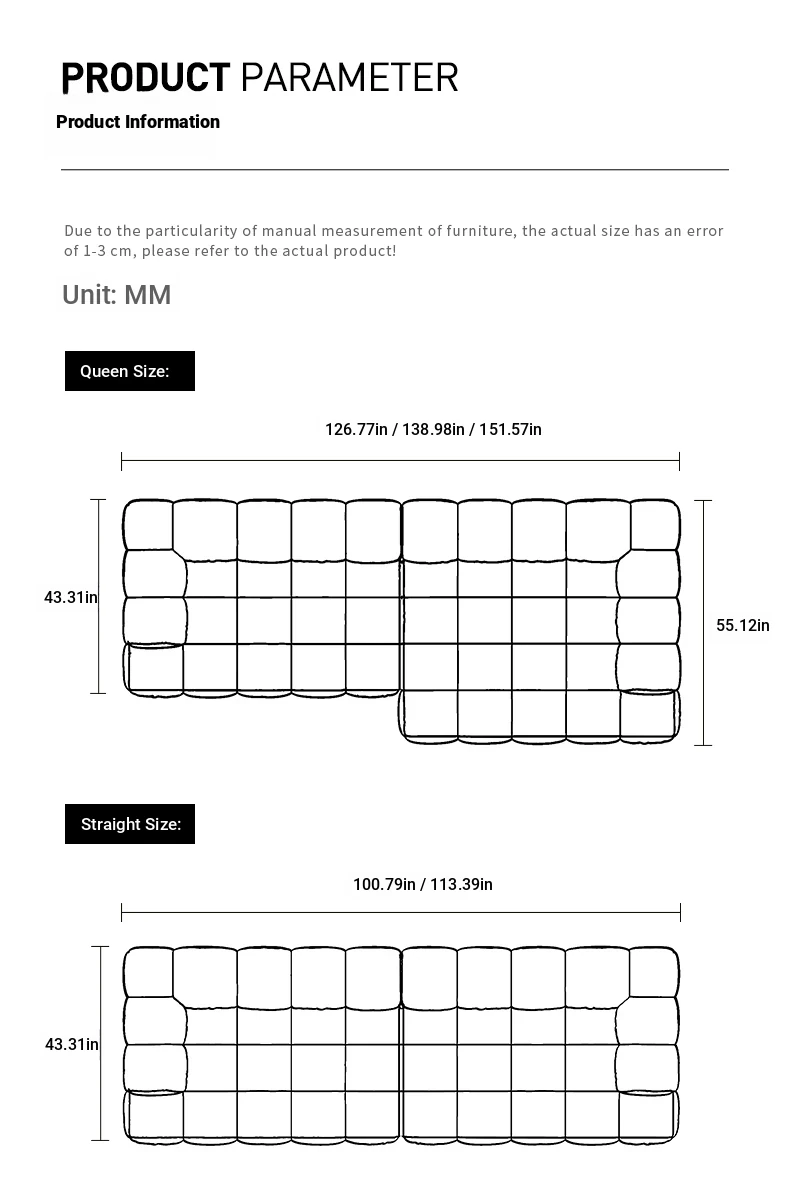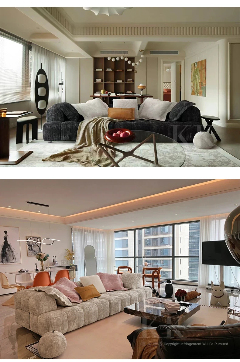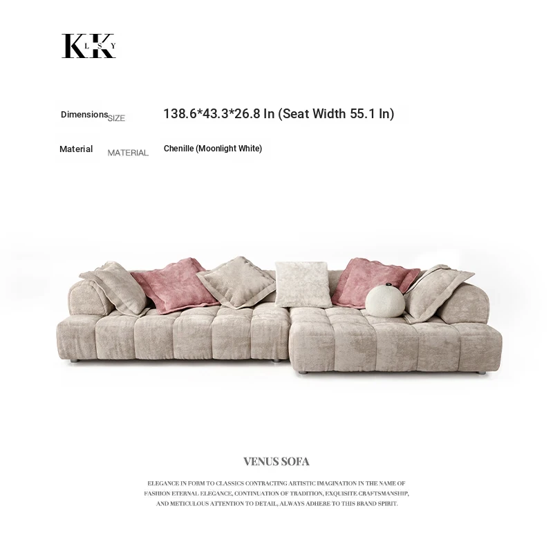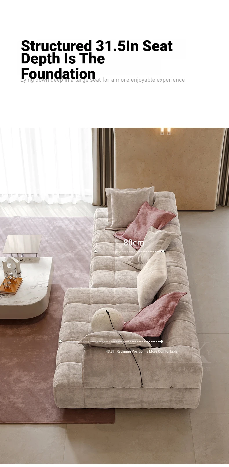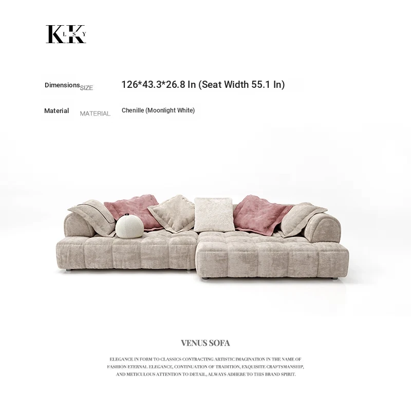 Kairi Moments Italian Light Luxury Fabric Sofa - Modern Minimalist Cream Puff Style Straight Sofa for Living Room