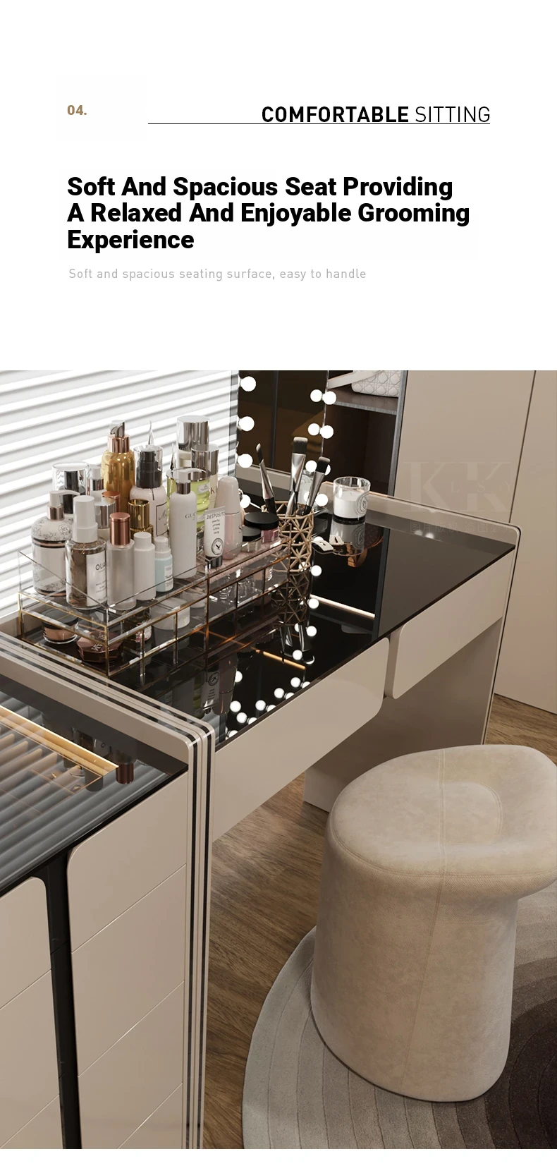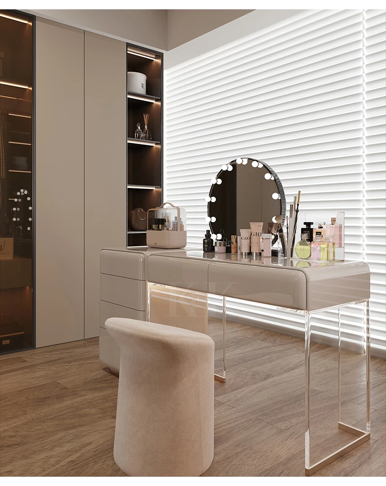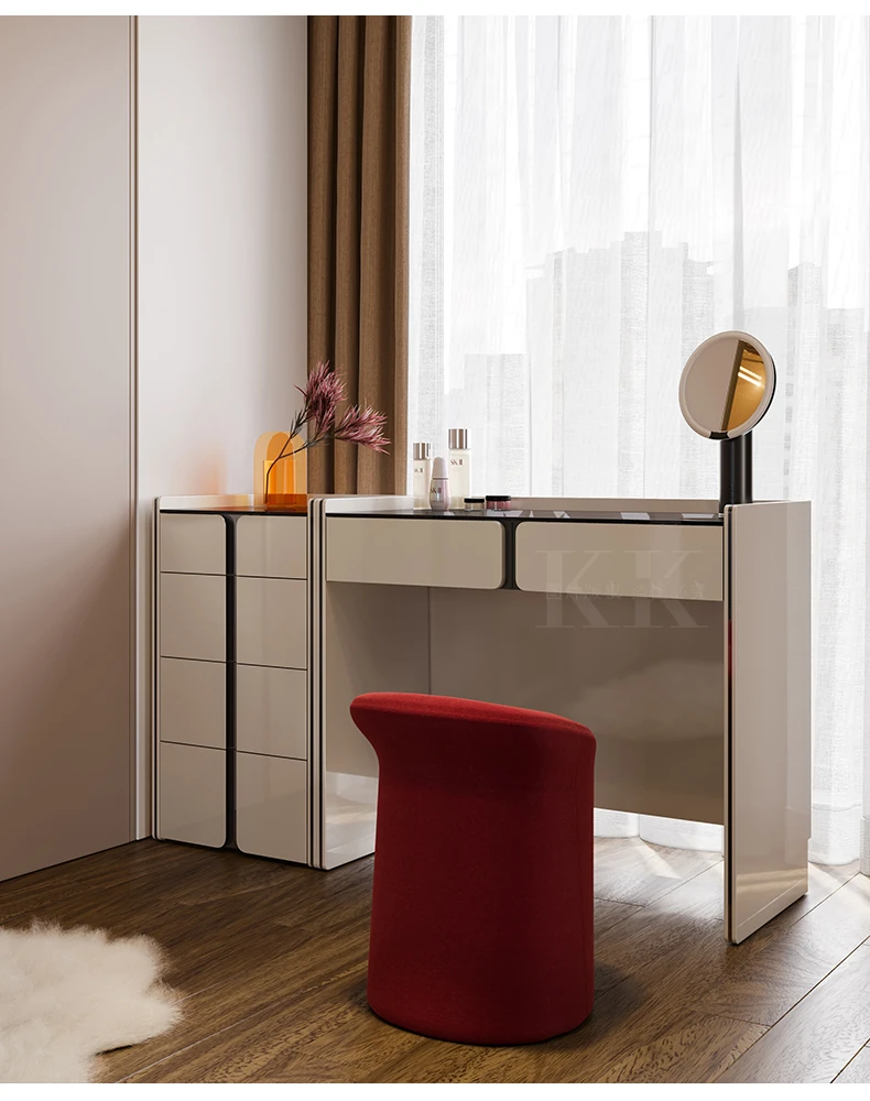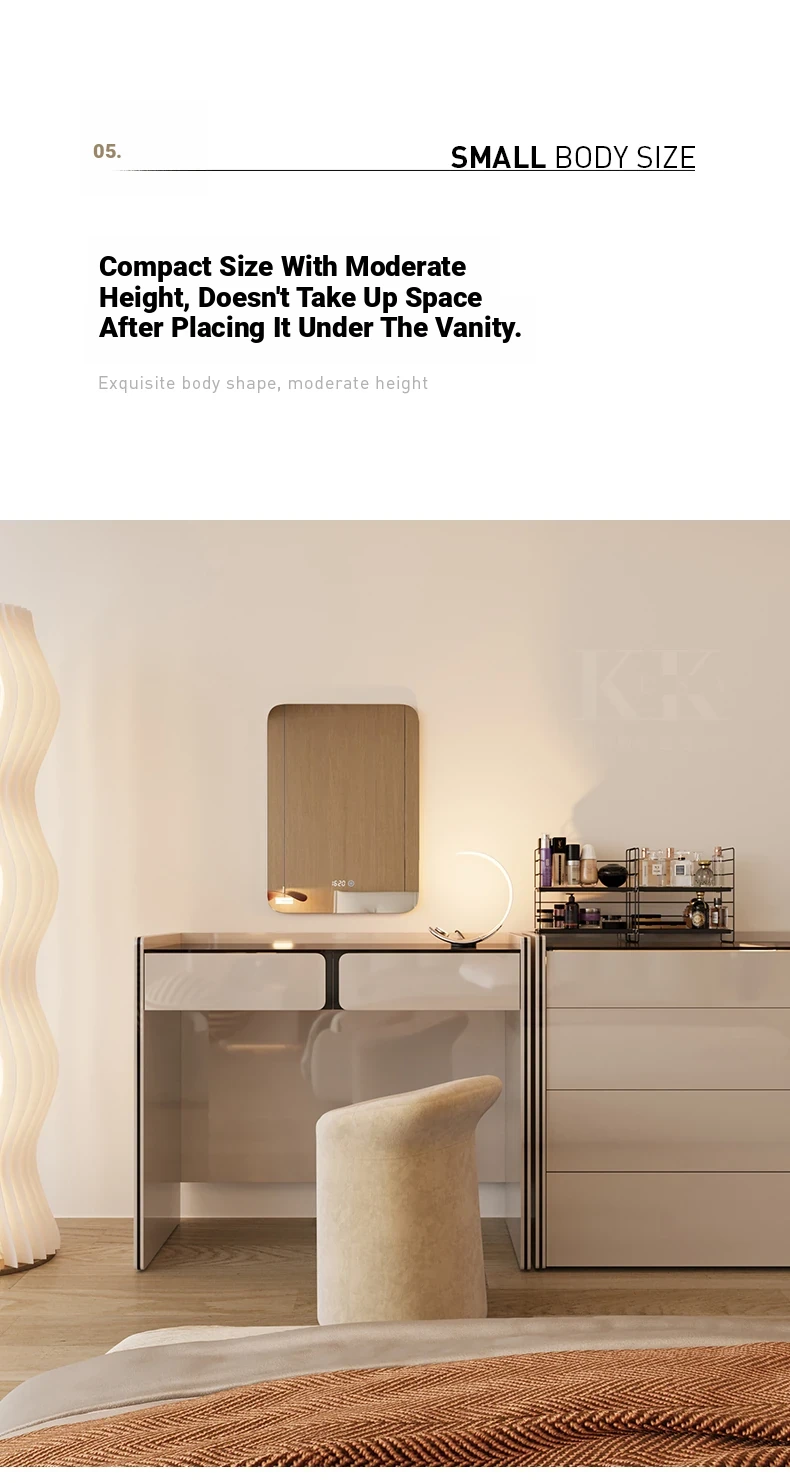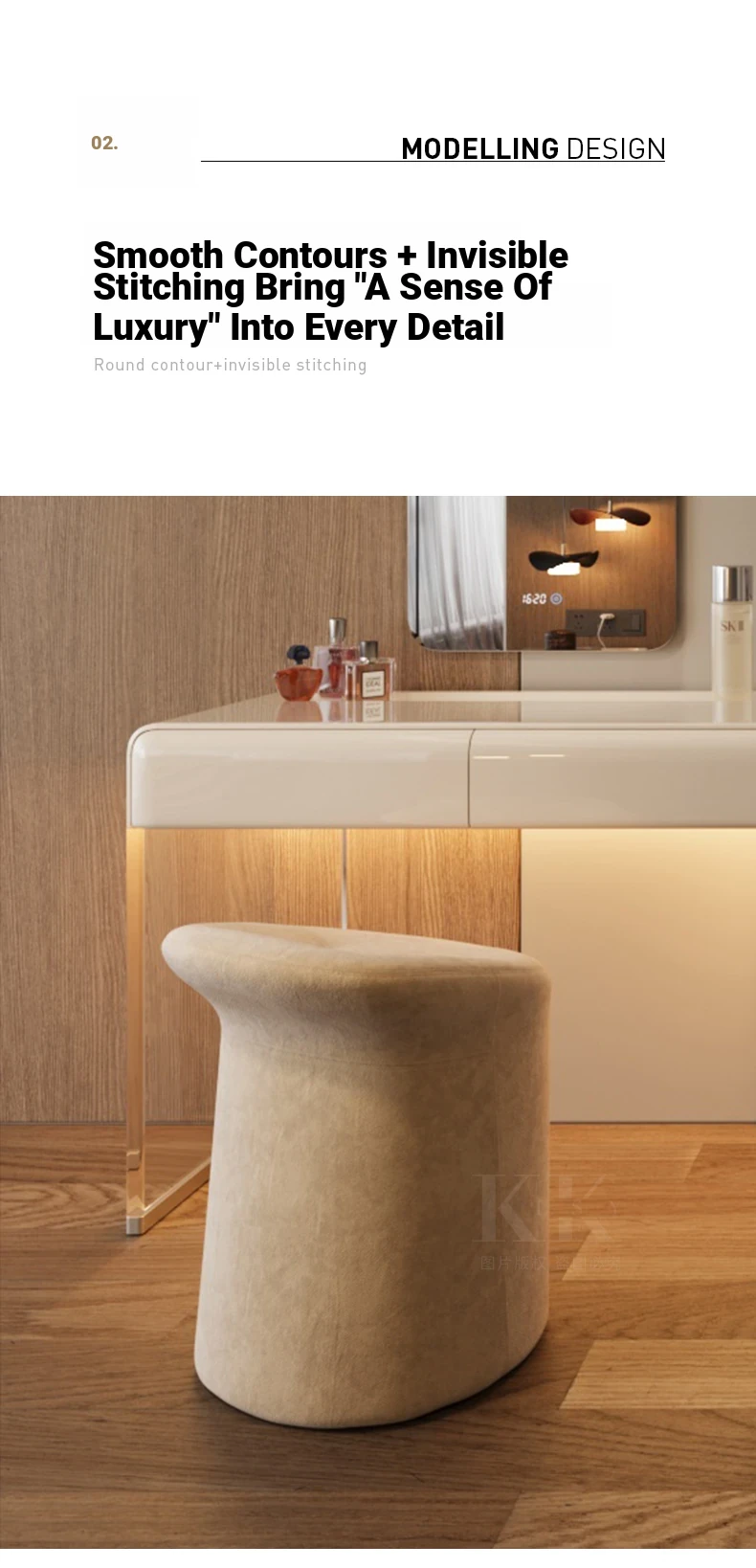 Kairi Moments Modern Round Vanity Stool – Elegant Italian Design for Bedroom & Villa Dressing Rooms, Perfect for Luxury Living