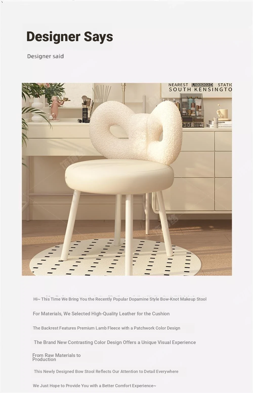 Luxury Rotating Makeup Chair for Home - Stylish Butterfly Stool with Backrest for Girls' Bedrooms, Perfect for Beauty and Nail Art, Trendy Design for Influencers