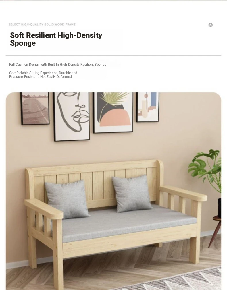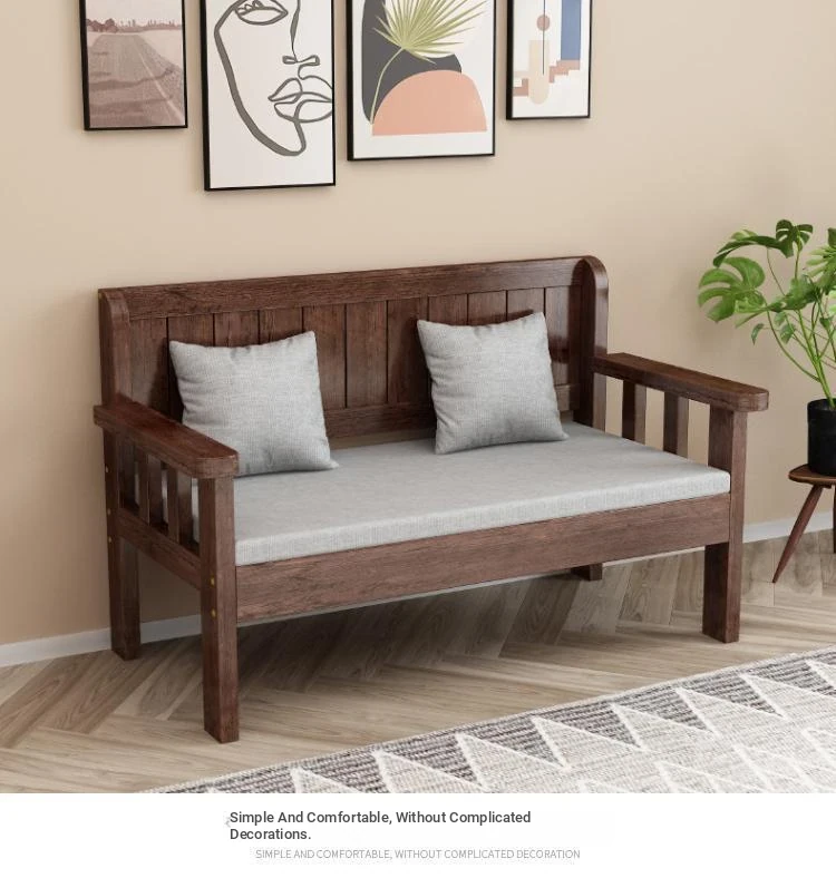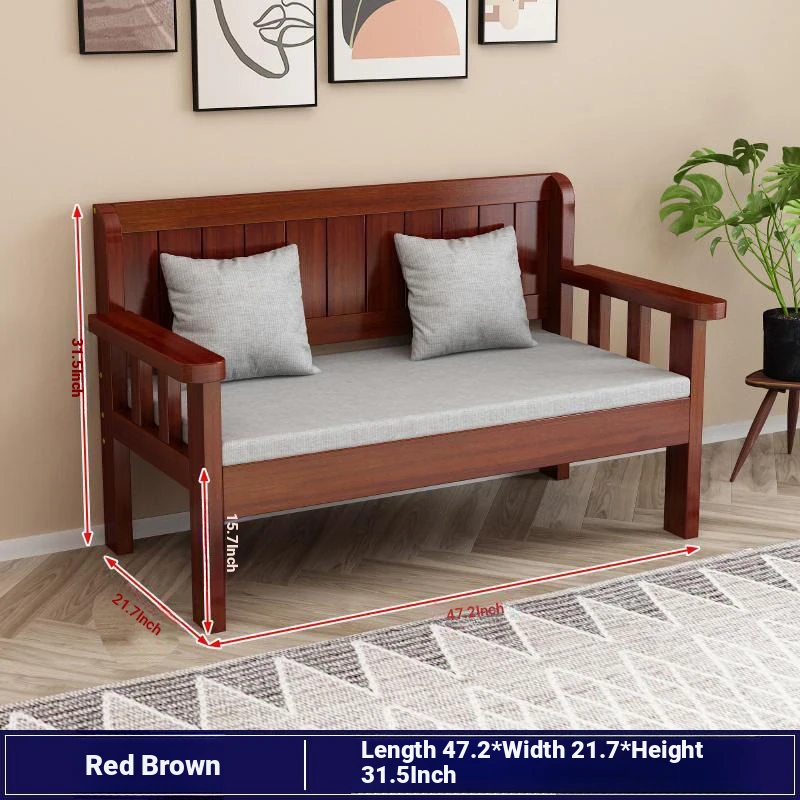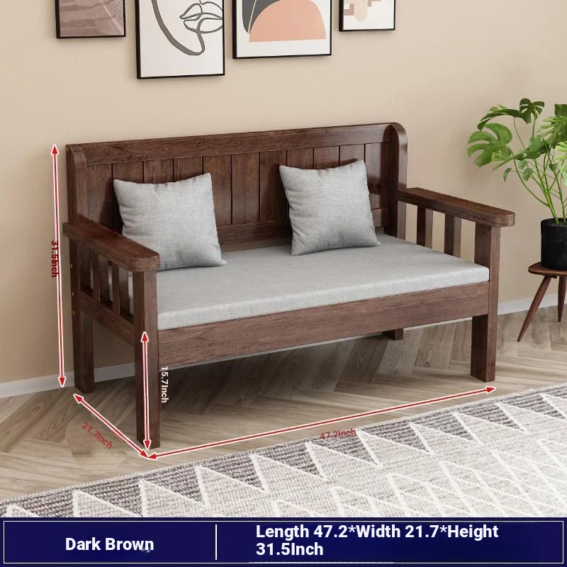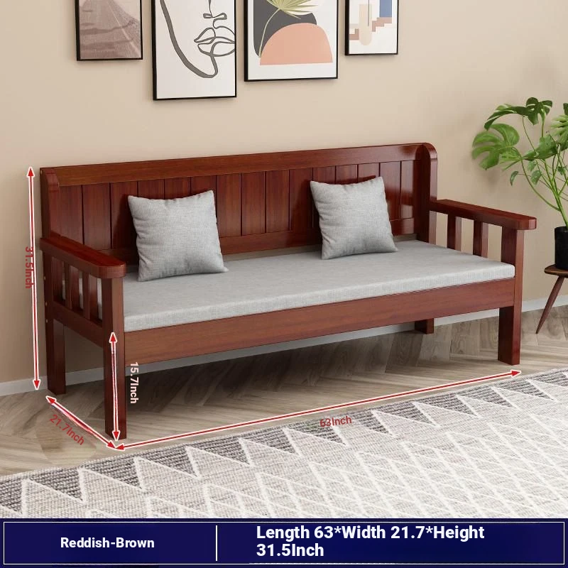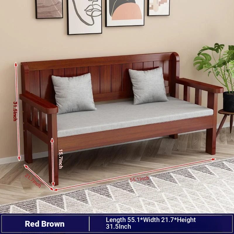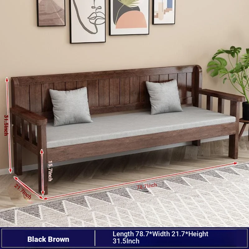 Modern Minimalist Solid Wood Sofa Set - New Chinese Style for Living Room, Perfect for Small Spaces, Features Three-Seater Sofa, Balcony Chairs, and Double-Backed Bench. Ideal for Cozy Gatherings!