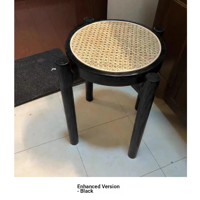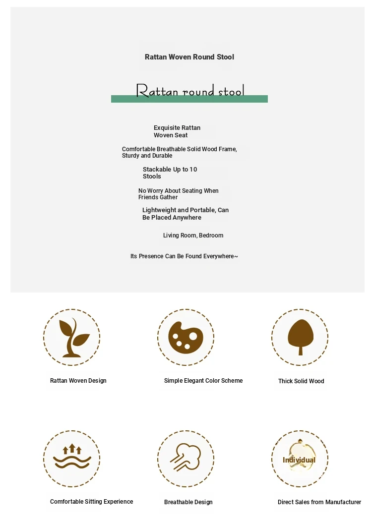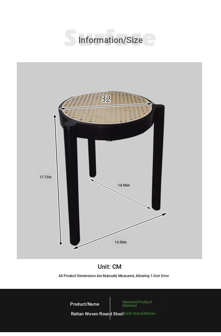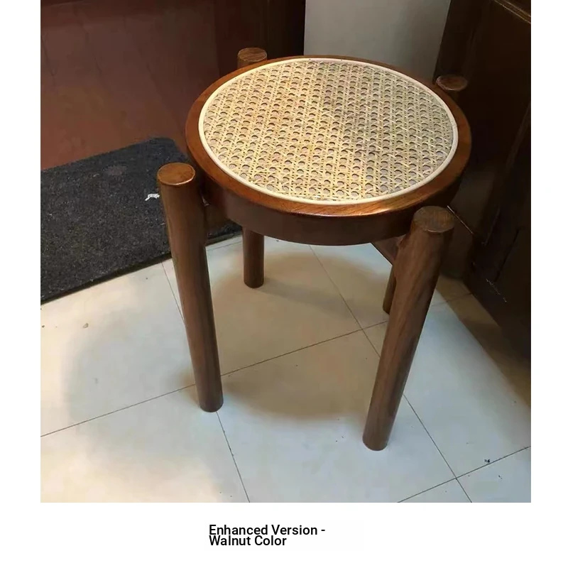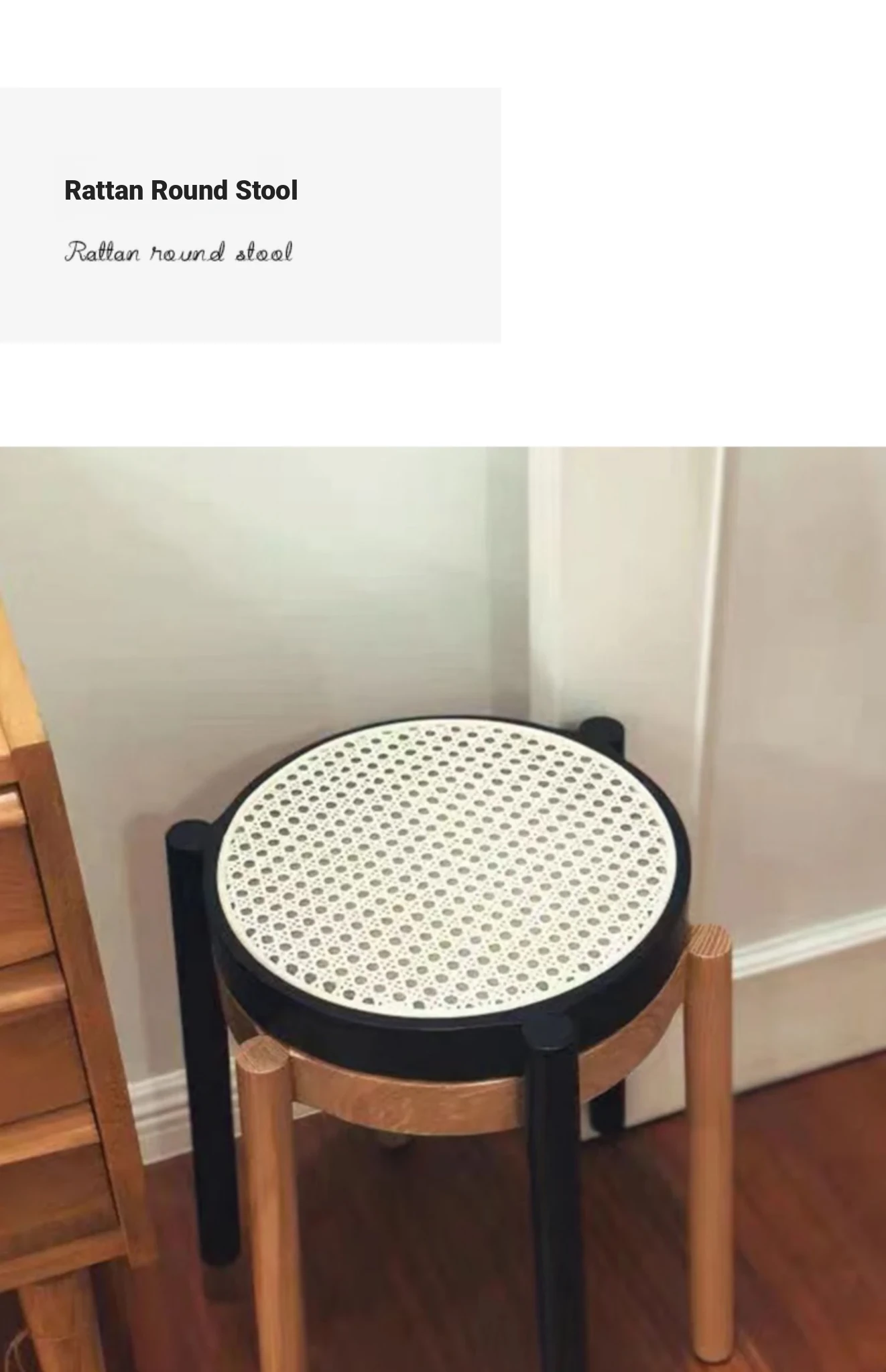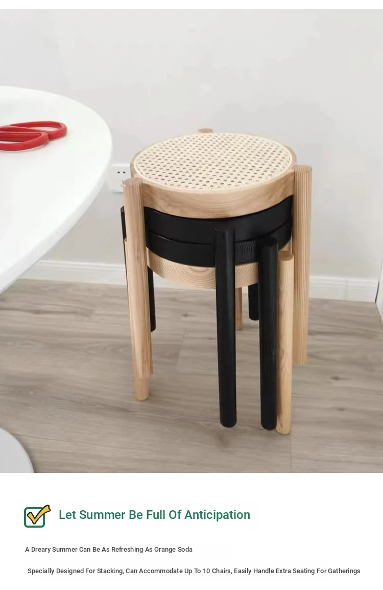 Nordic Solid Wood Minimalist Rattan Woven Round Stool - Stylish and Versatile Makeup Bench, Light Luxury Stacking Footstool for Home Use, Perfect for Shoe Changing and Relaxation