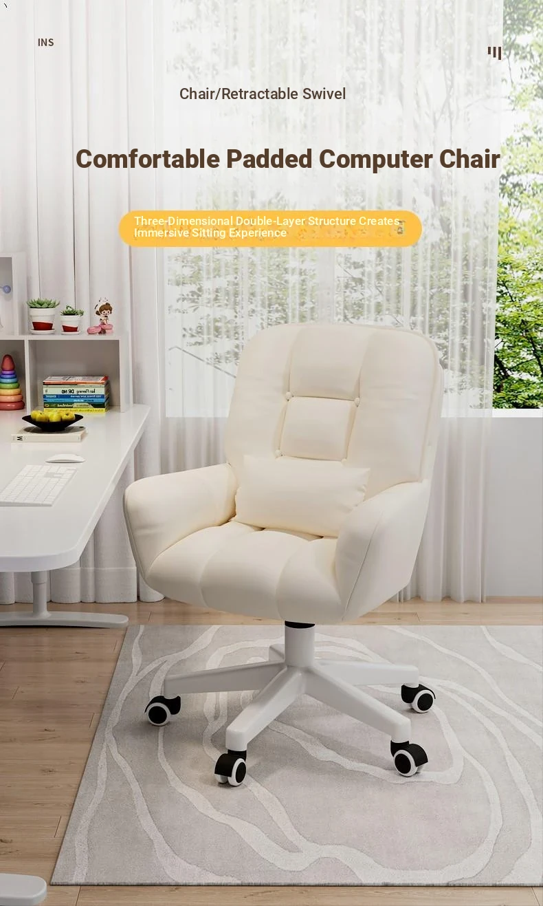 Stylish Makeup Chair for Girls - Comfortable Rotating Computer Chair with Backrest for Home Use, Ideal for Bedroom Vanity and Long Sitting Sessions