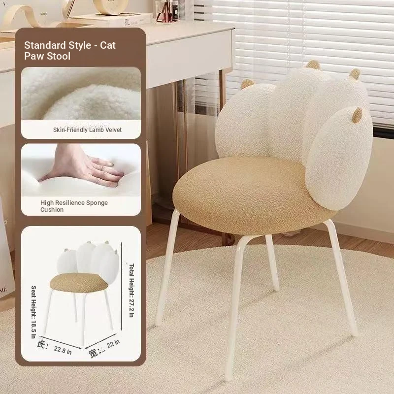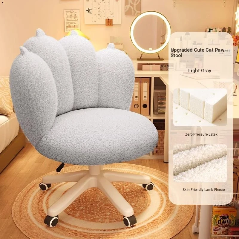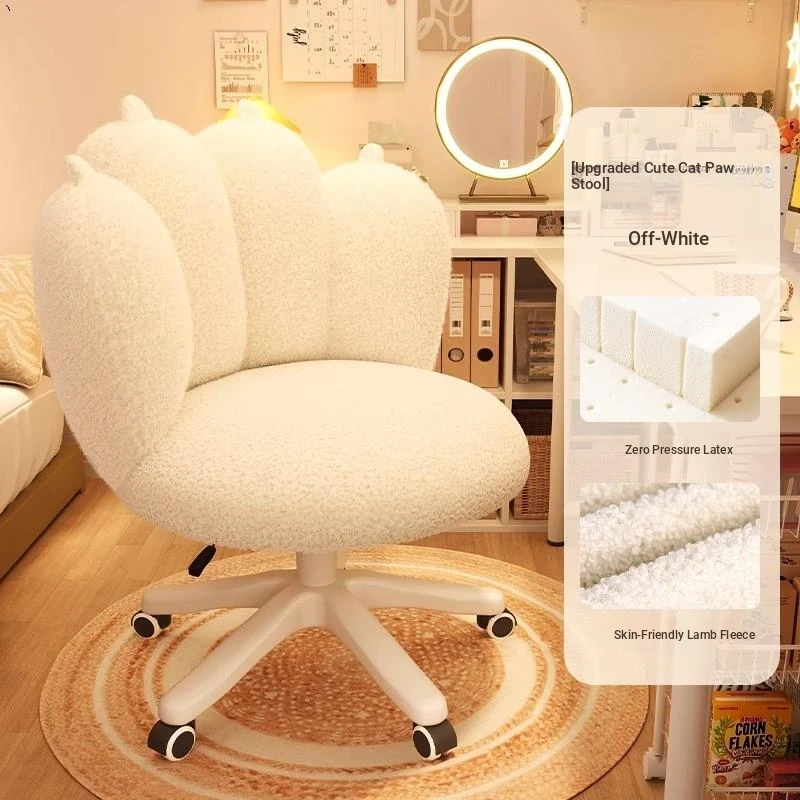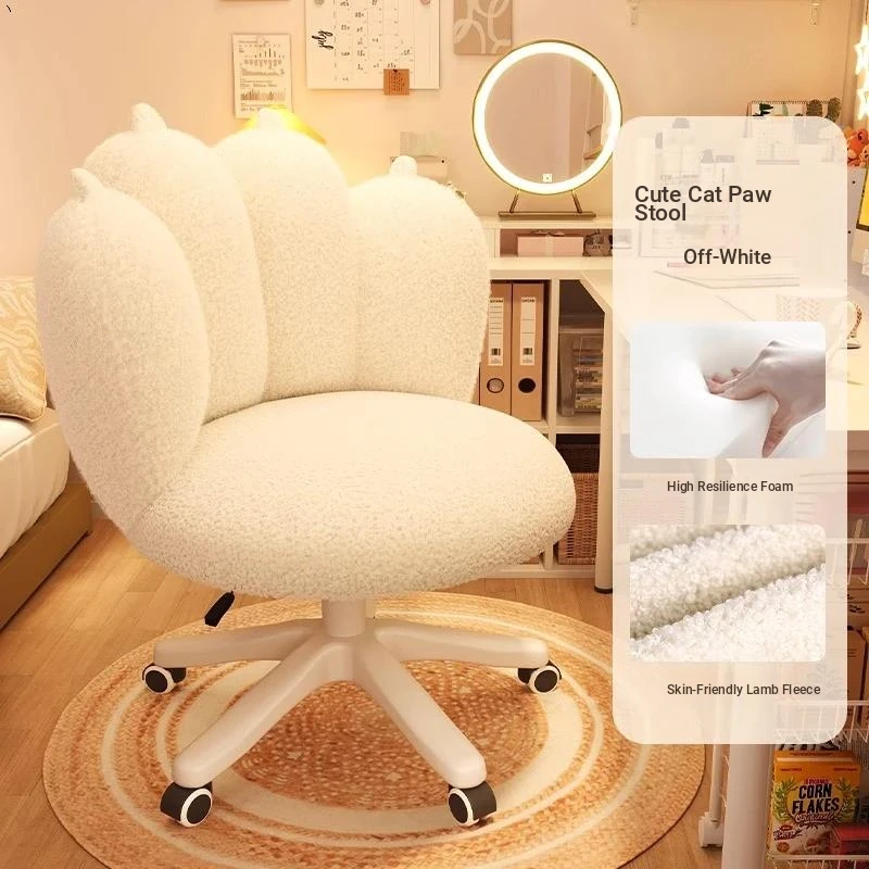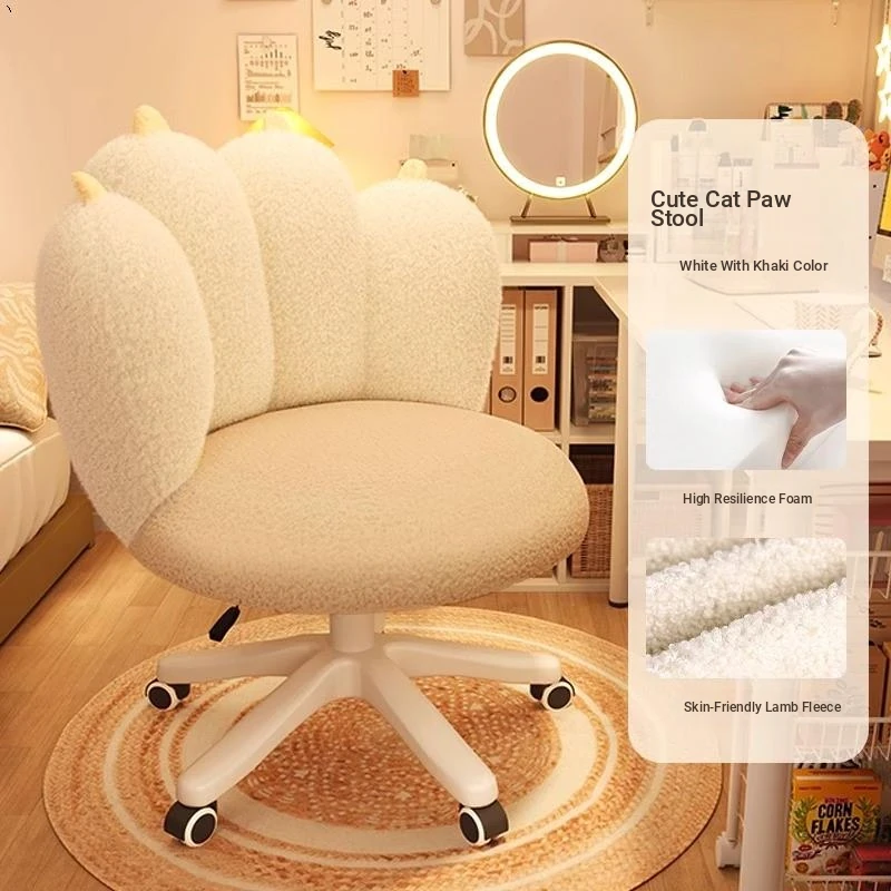 Trendy Makeup Stool for Girls - Creamy Cat Paw Backrest Chair, Perfect for Dressing Tables and Nail Art, Stylish Rotating Seat for Your Bedroom!