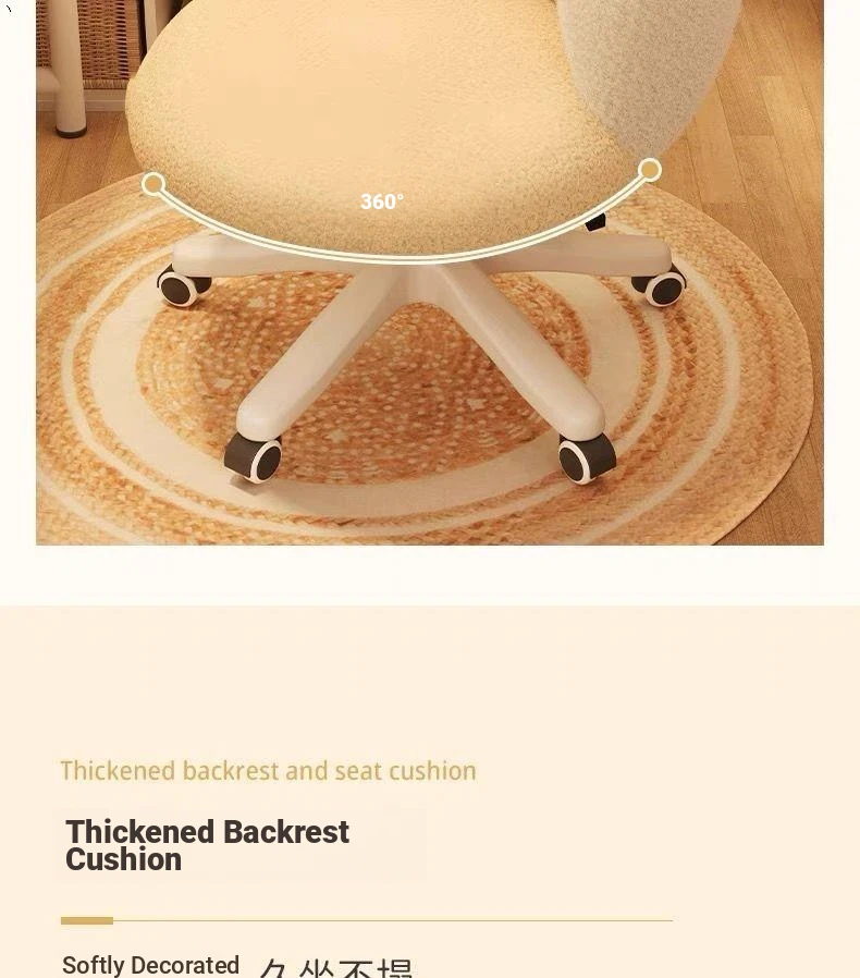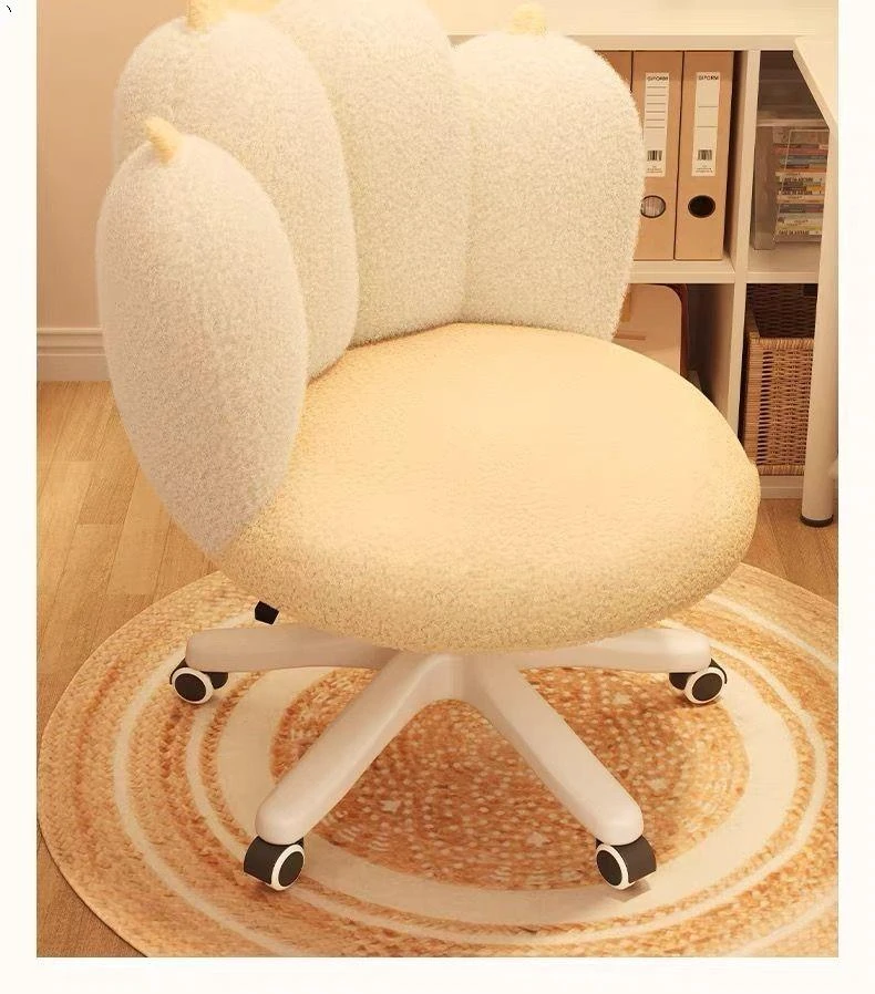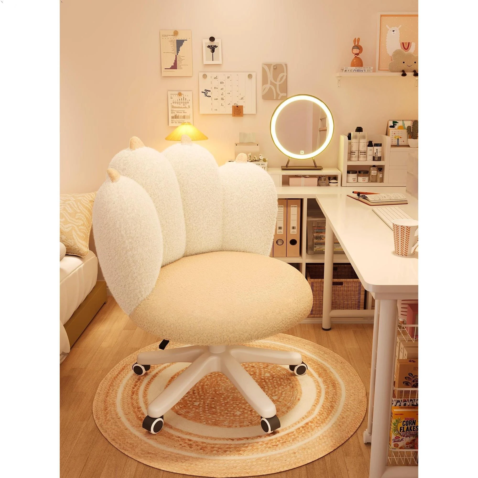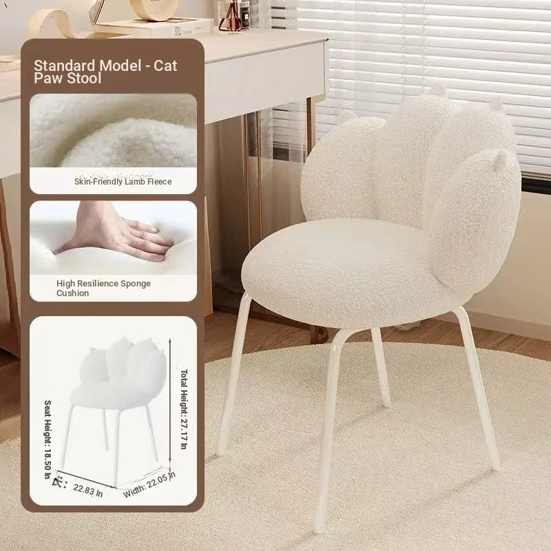 Trendy Makeup Stool for Girls - Creamy Cat Paw Backrest Chair, Perfect for Dressing Tables and Nail Art, Stylish Rotating Seat for Your Bedroom!