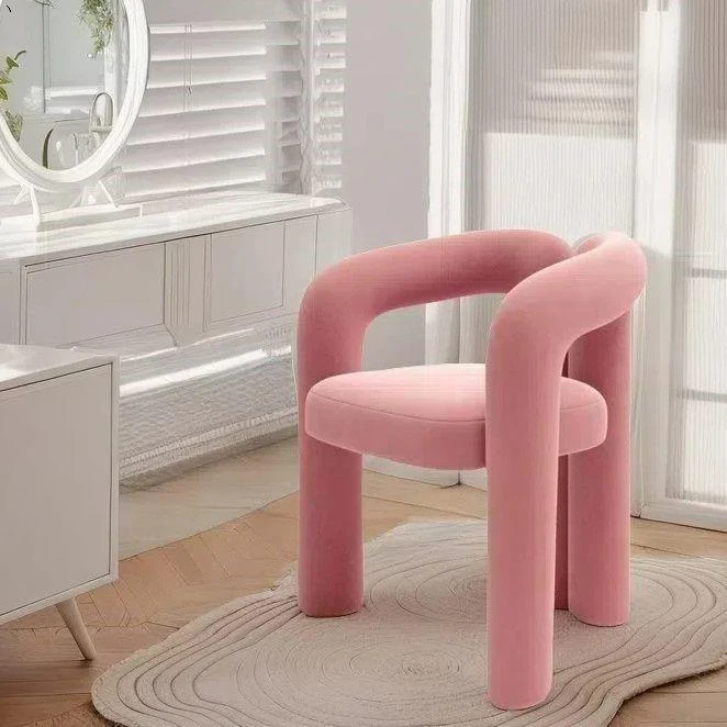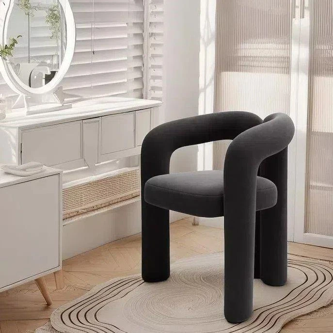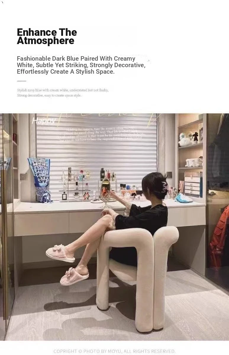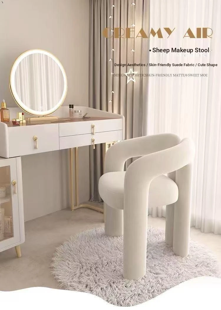 Trendy Makeup Stool for Girls - Elegant and Luxurious Vanity Chair with Backrest, Perfect for Bedroom and Dressing Room, Designer Curved Horn Chair Ideal for Makeup and Nail Art.