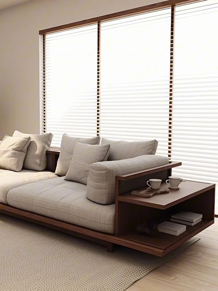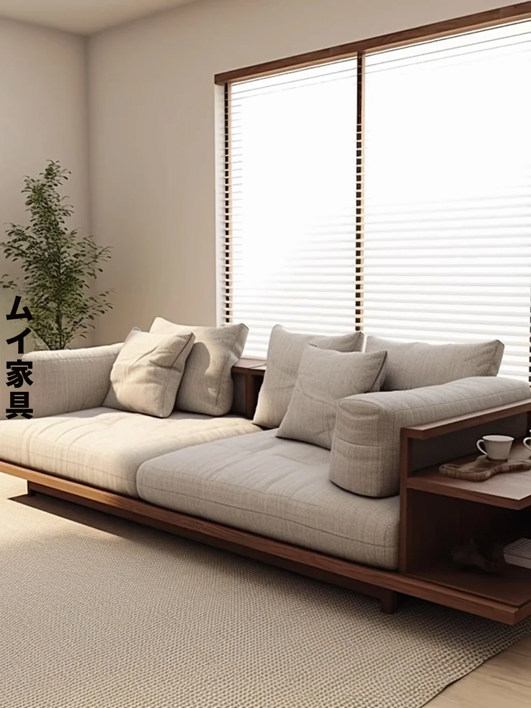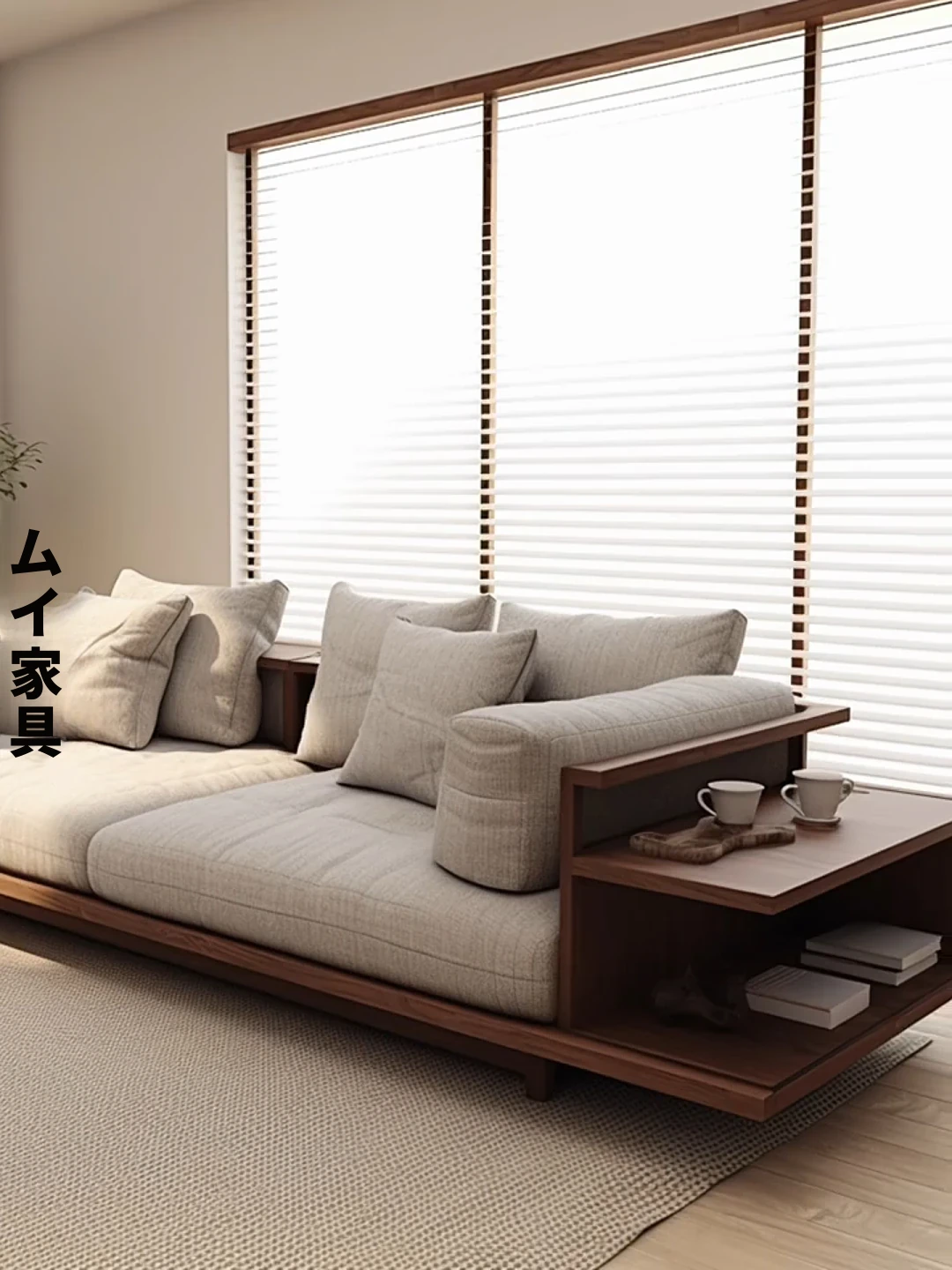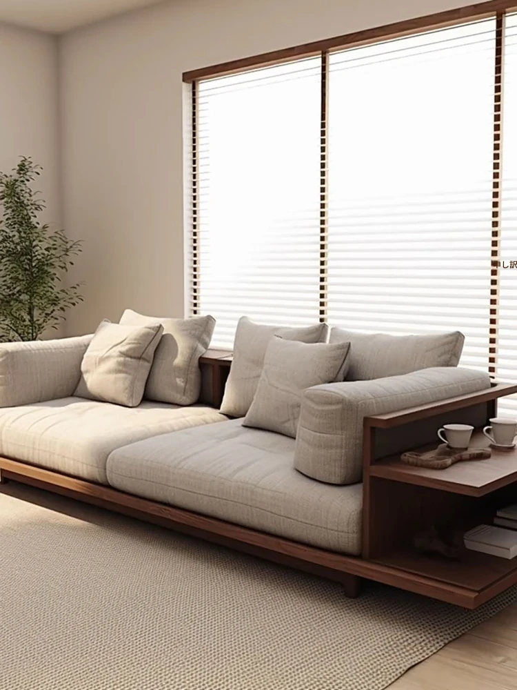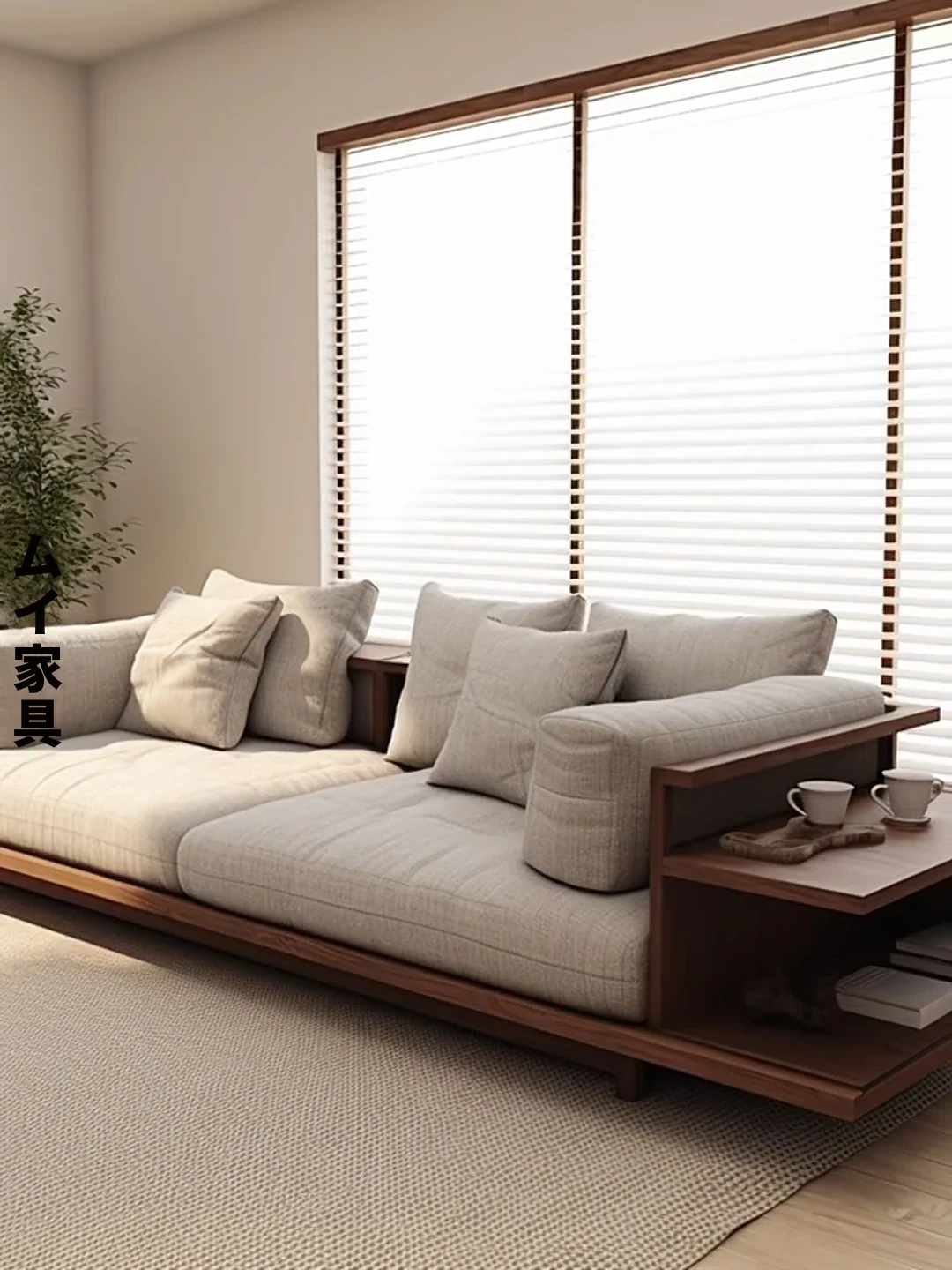 2025年新作!北米ブラックウォールナット製ファブリック直線ソファ - モダンでシンプルなラグジュアリー、別荘のリビングに最適な高級無垢材ソファ!快適さとスタイルを兼ね備えた一品です。