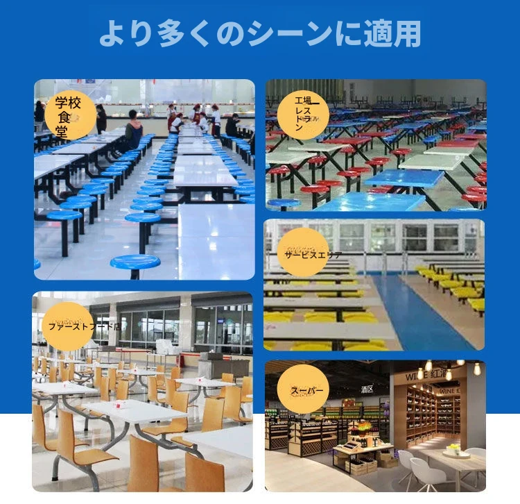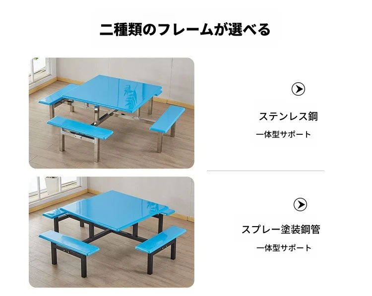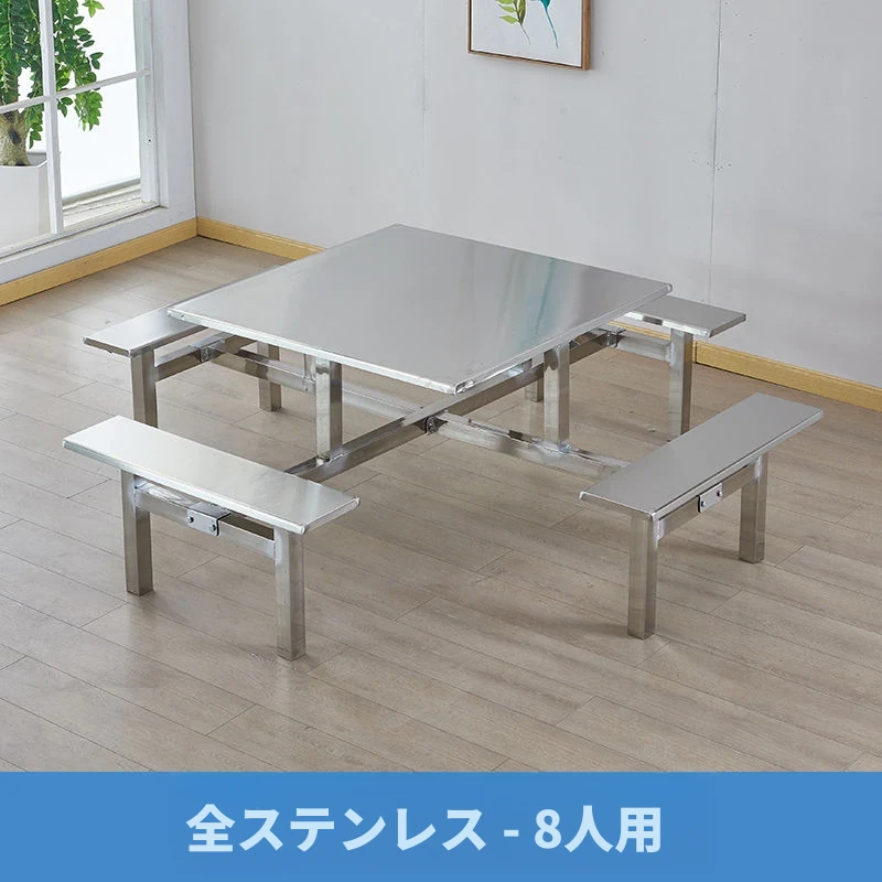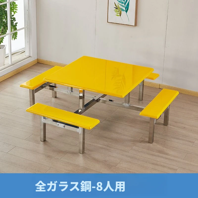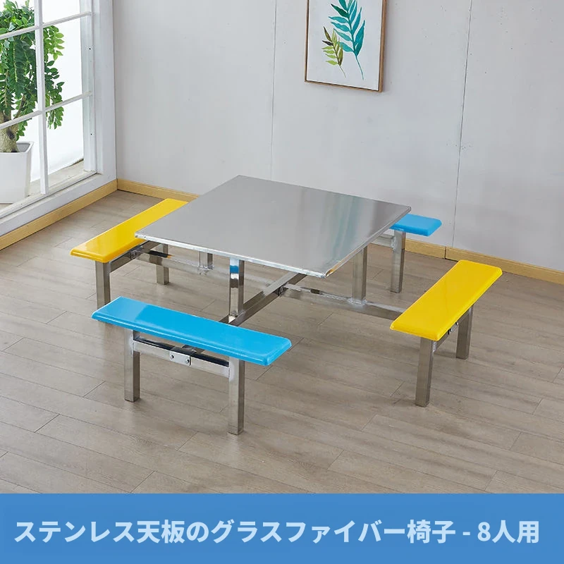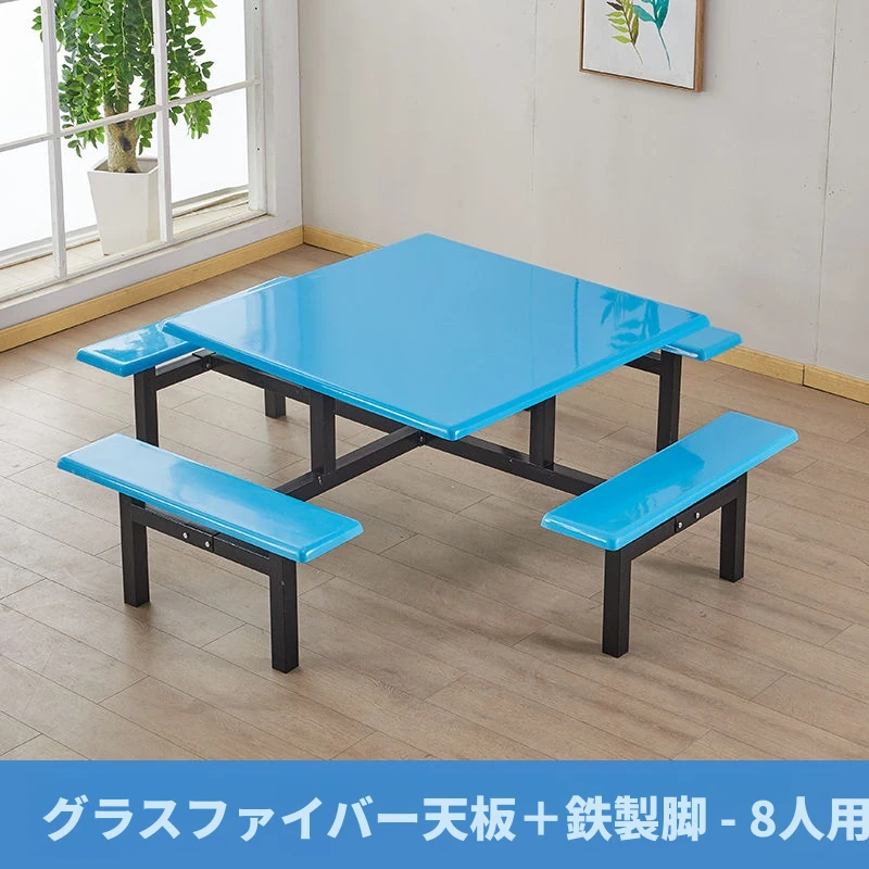 8人用連結式食堂テーブル&チェアセット - 職場や学校に最適!従業員食堂や学生食堂にぴったりの快適な商業用ダイニングソリューション!