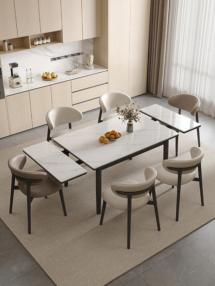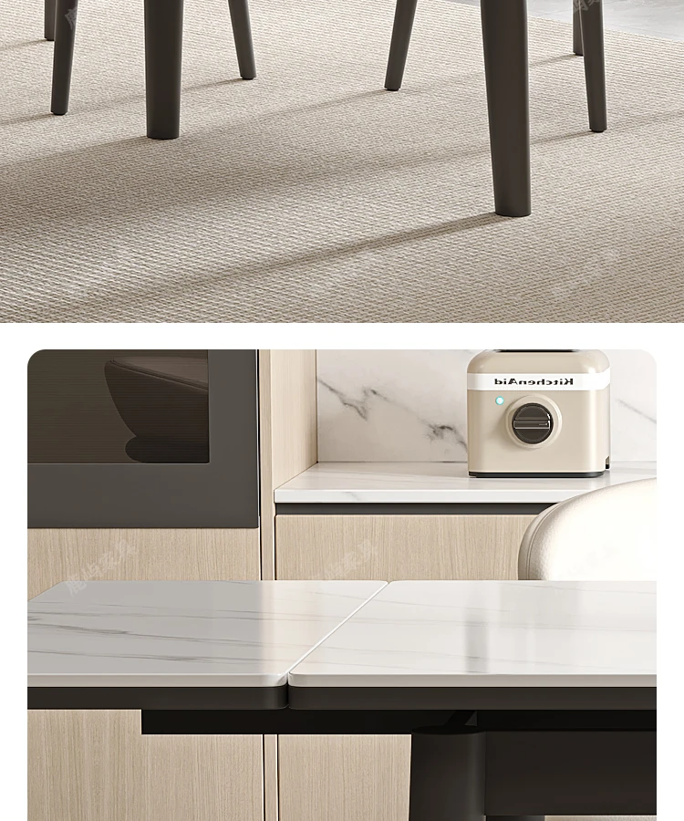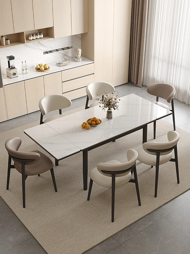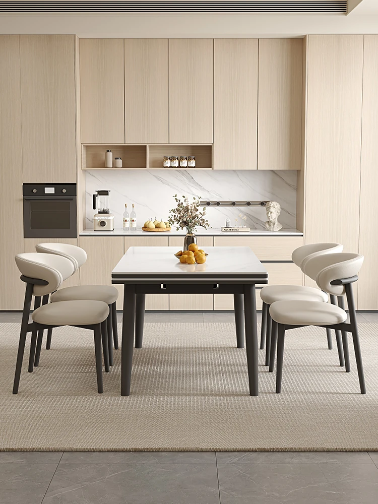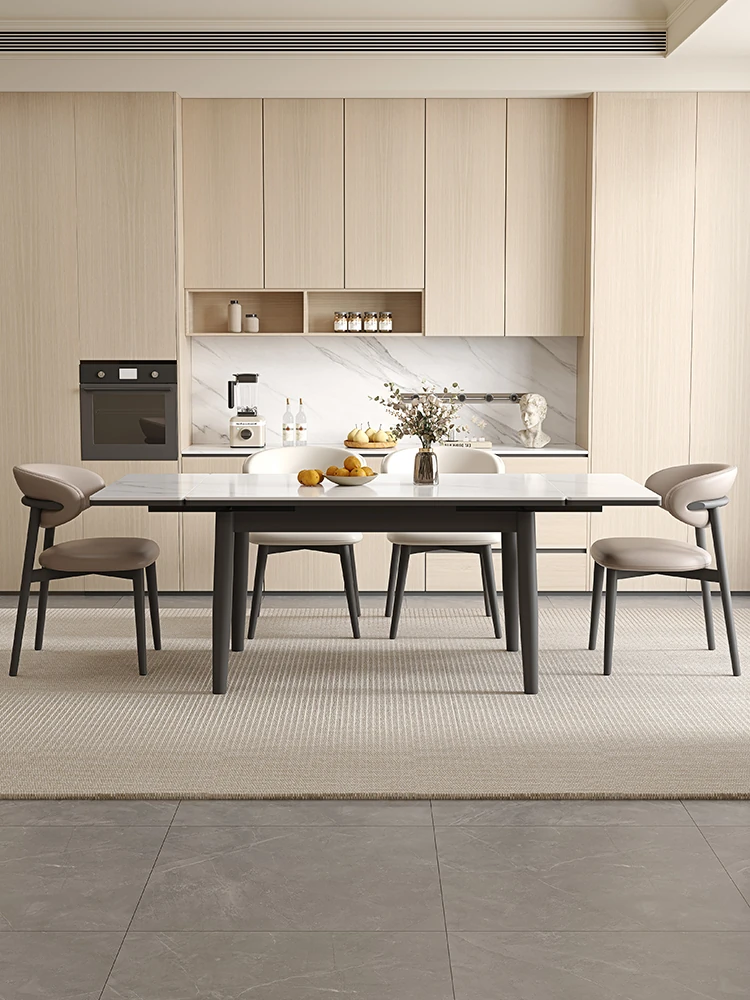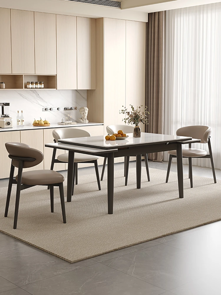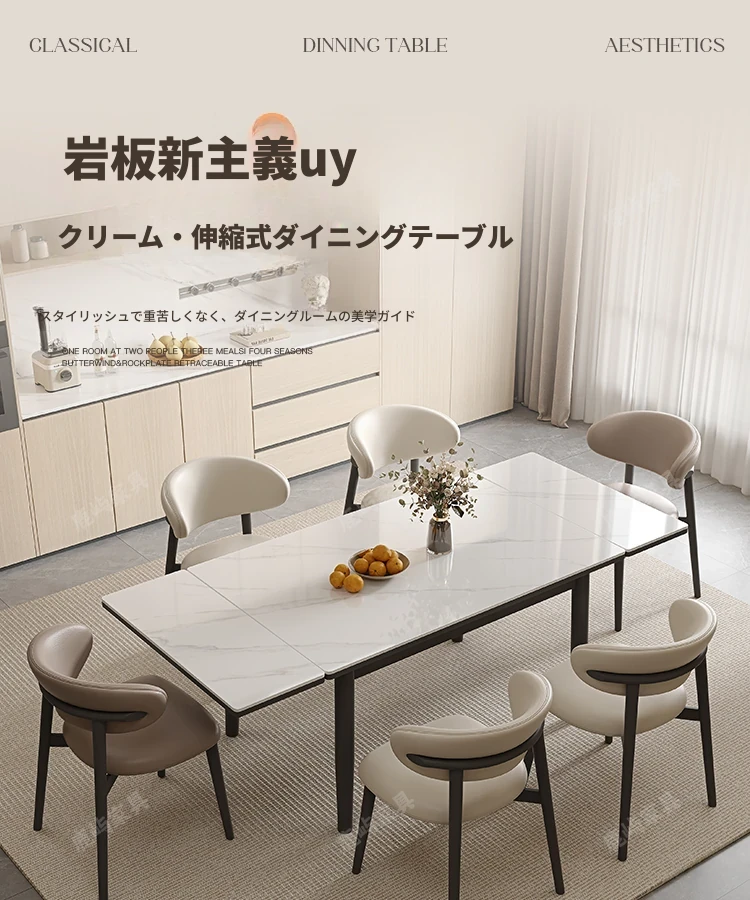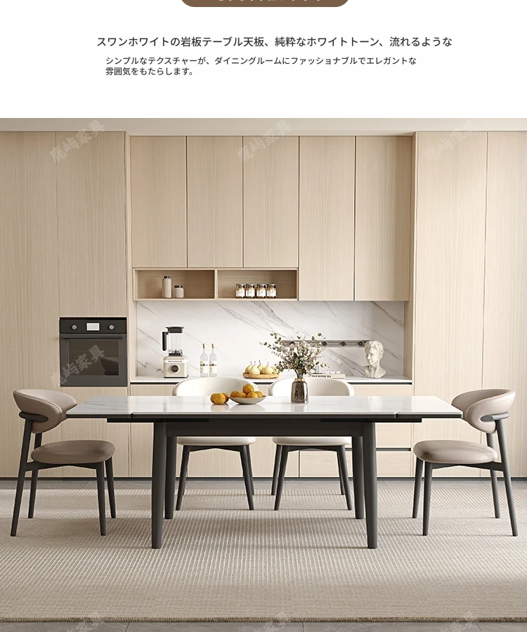 デリフォン現代的シンプルな無垢材伸縮式ラウンドテーブル&チェアセット - 小型住宅に最適な折りたたみ長方形ダイニングテーブルで、スペースを有効活用!