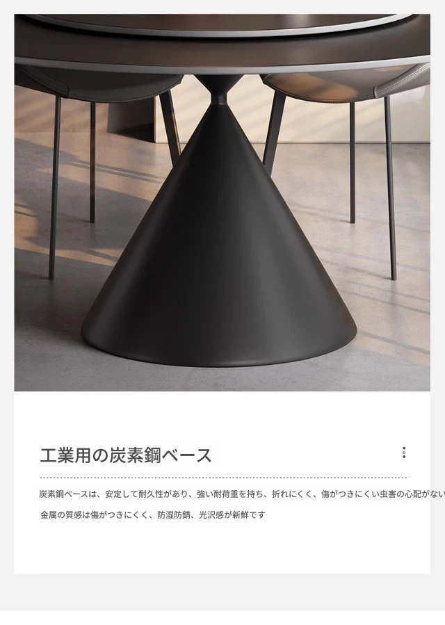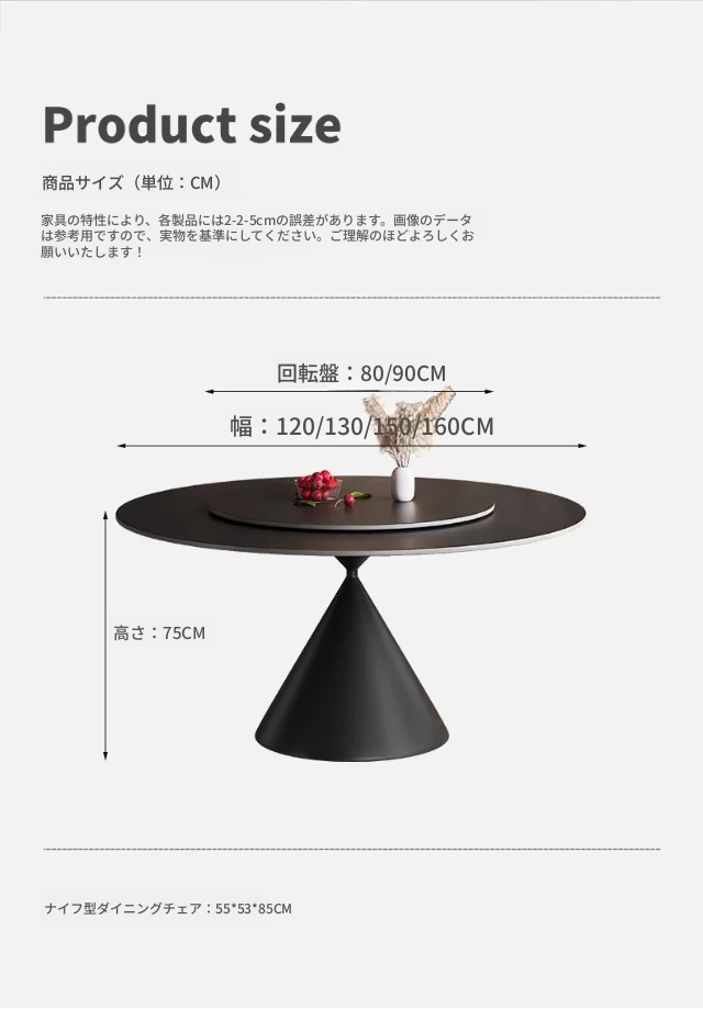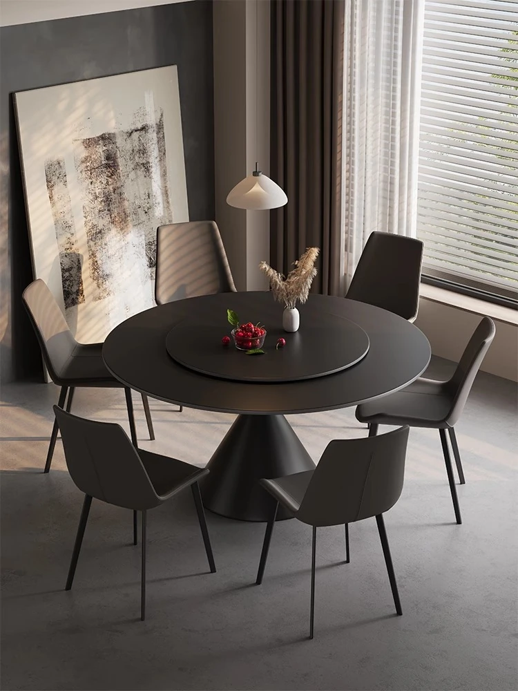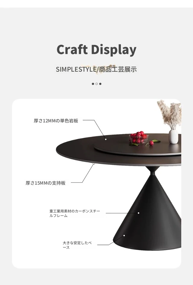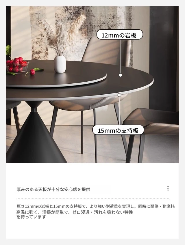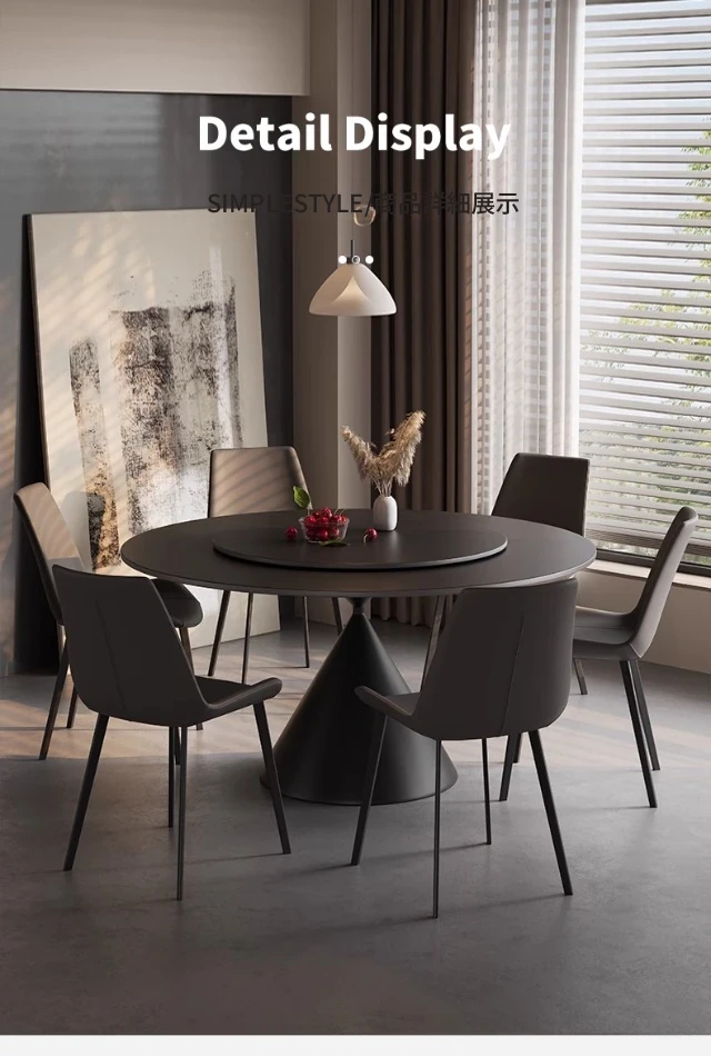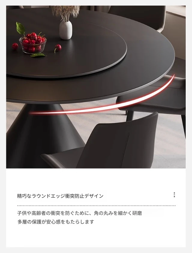 軽やかなラグジュアリー!円形の岩板ダイニングテーブル&チェアセット、モダンでシンプルなイタリアンデザイン。回転プレート付き、小さなお部屋でも使える理想的な食卓です。