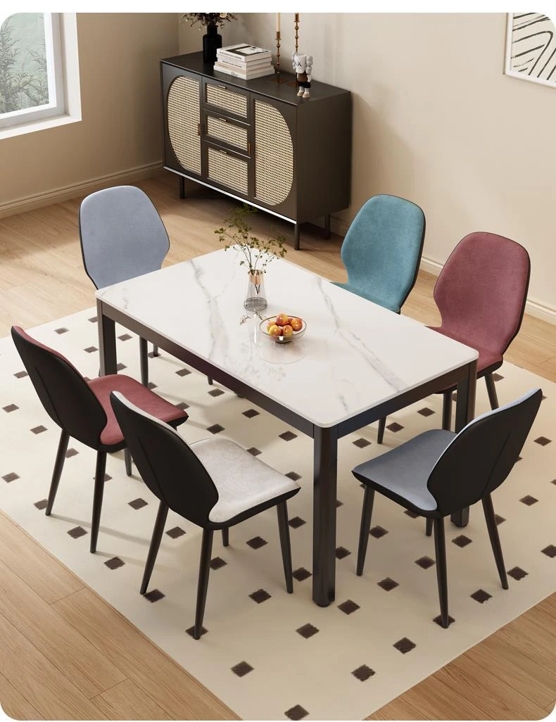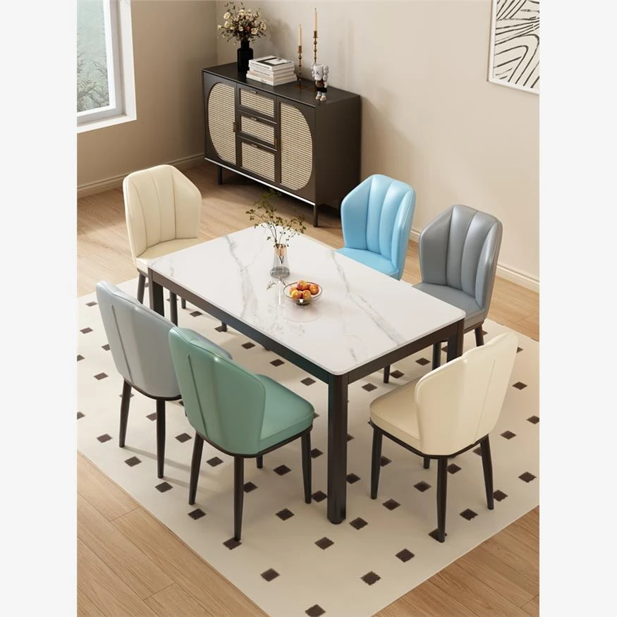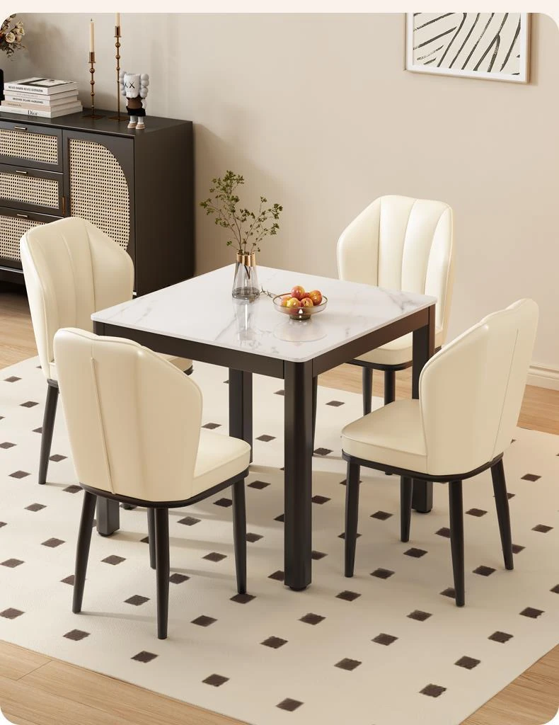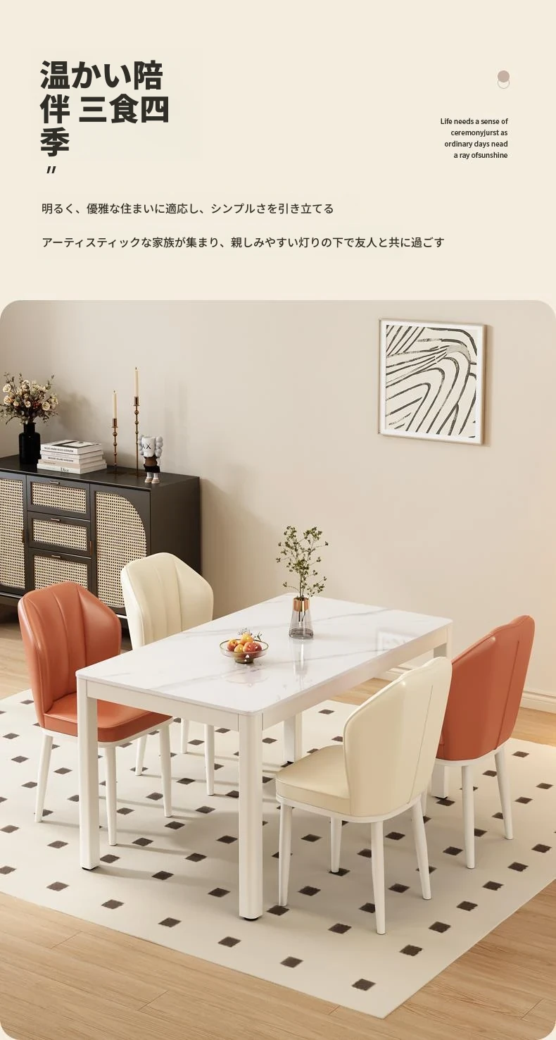 香港送料無料!軽奢感あふれる岩板製ダイニングテーブル&チェアセット。モダンでシンプルなデザイン、小さなスペースにぴったりな長方形のクリーム風テーブル。おしゃれな食卓を演出し、家族や友人との素敵なひとときをお楽しみください!