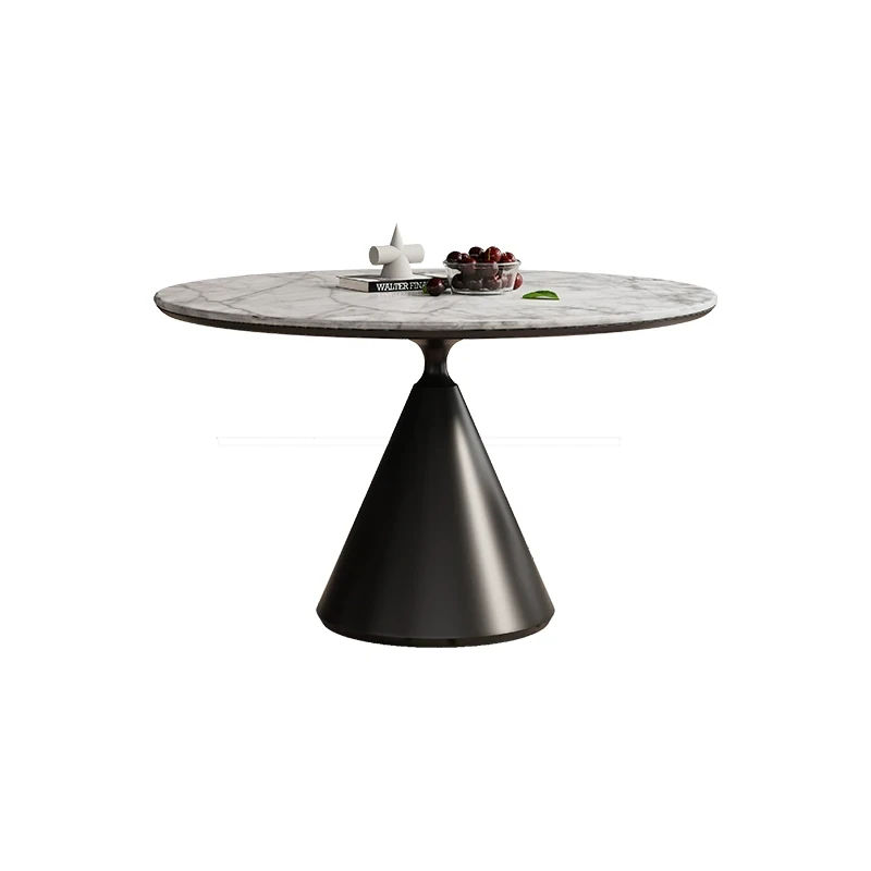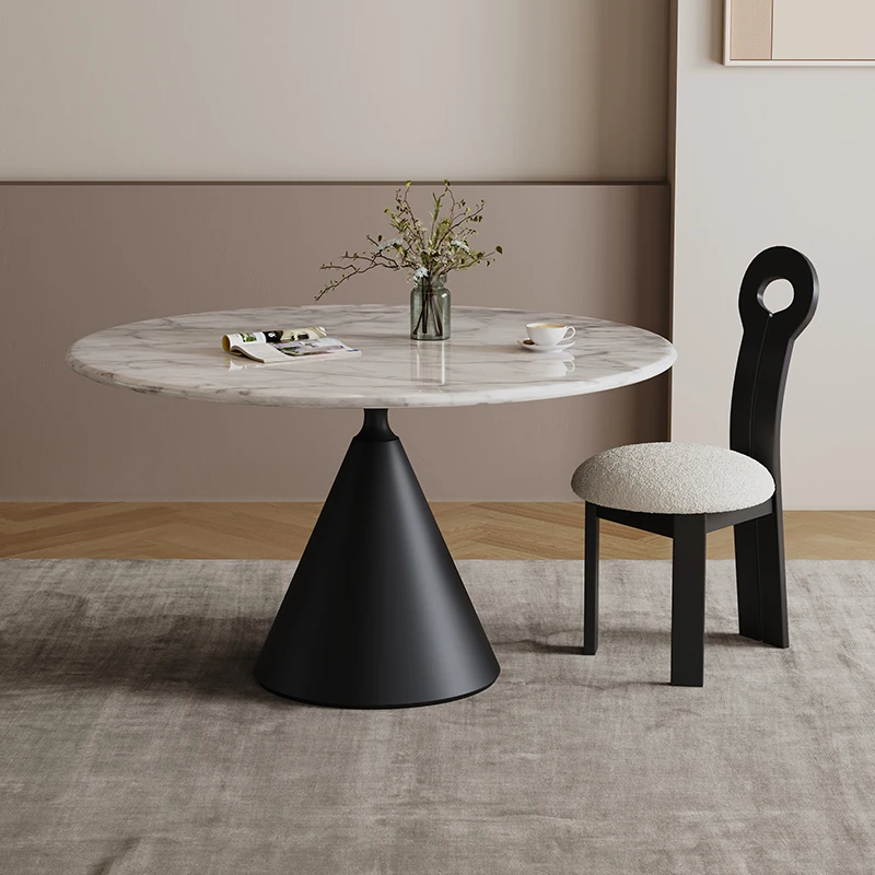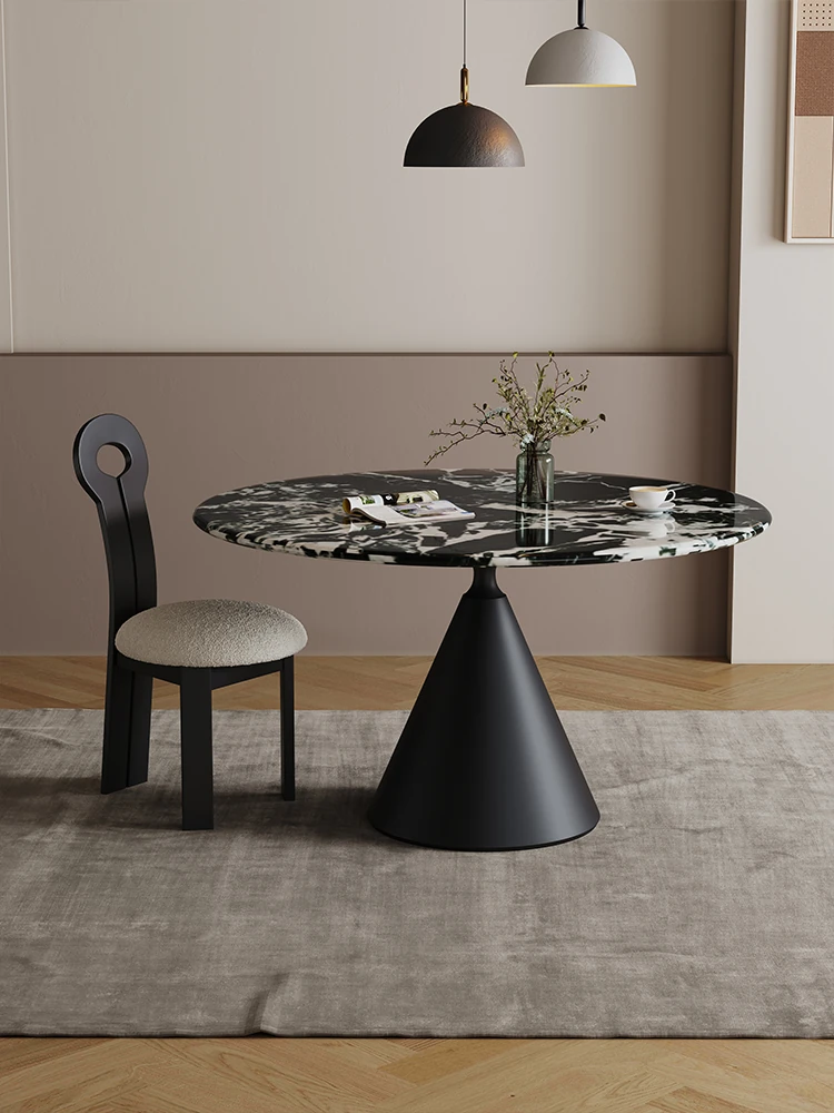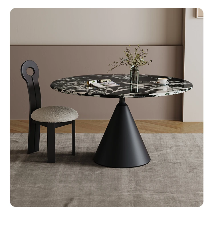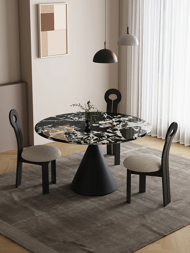 フランス風ラウンド大理石ダイニングテーブル - 小さな家にぴったりな軽奢華スタイル、モダンでシンプルな黒いバラデザイン。おしゃれで機能的な空間を演出します!