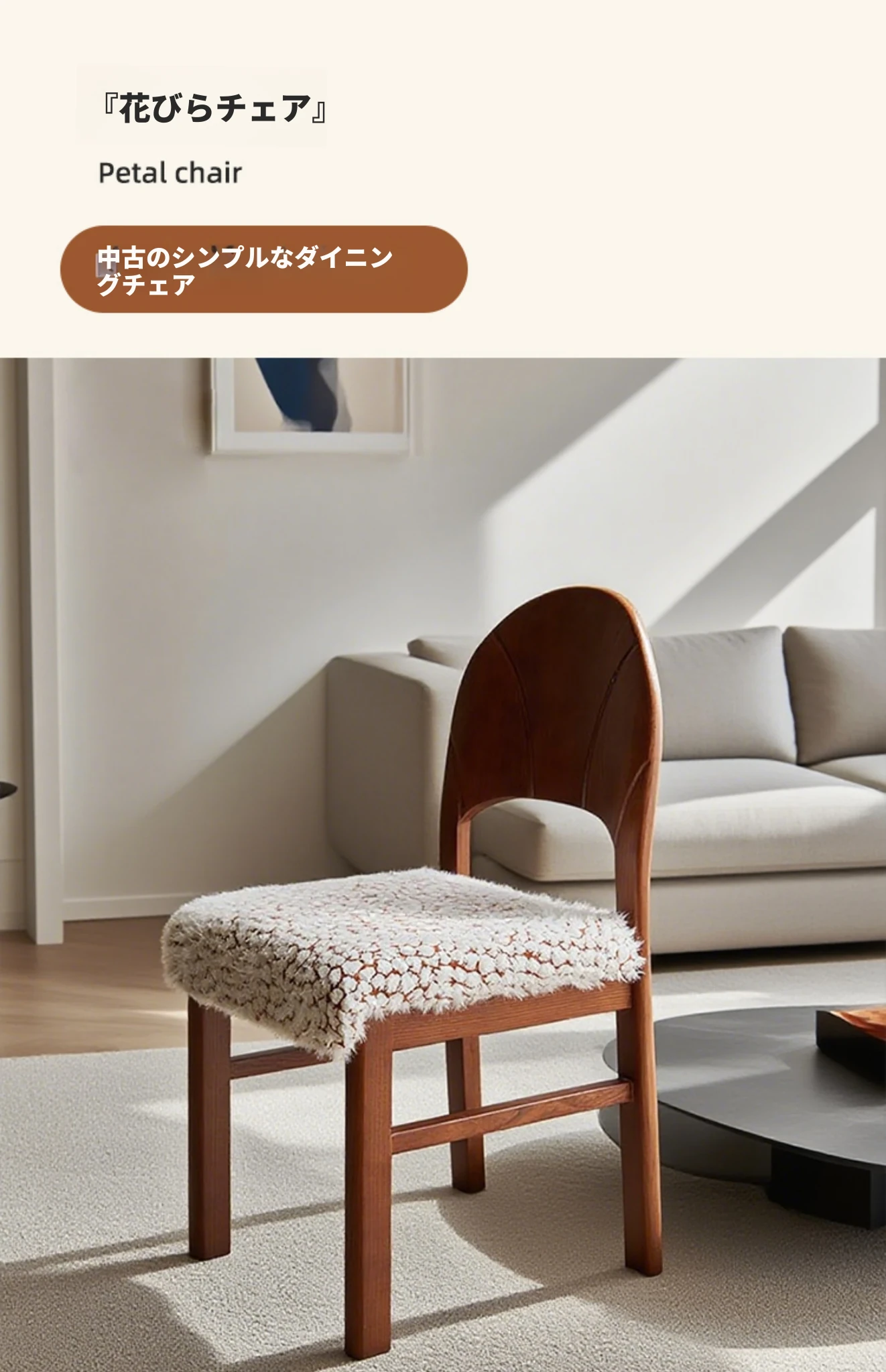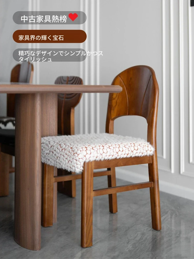 フランス風ヴィンテージダイニングチェア - デザイナーの創造性が光る高級感漂う無垢材使用。和の美しさを感じる侘寂デザインで、あなたの食卓を特別に演出します。家庭用に最適なスタイリッシュな一脚です!