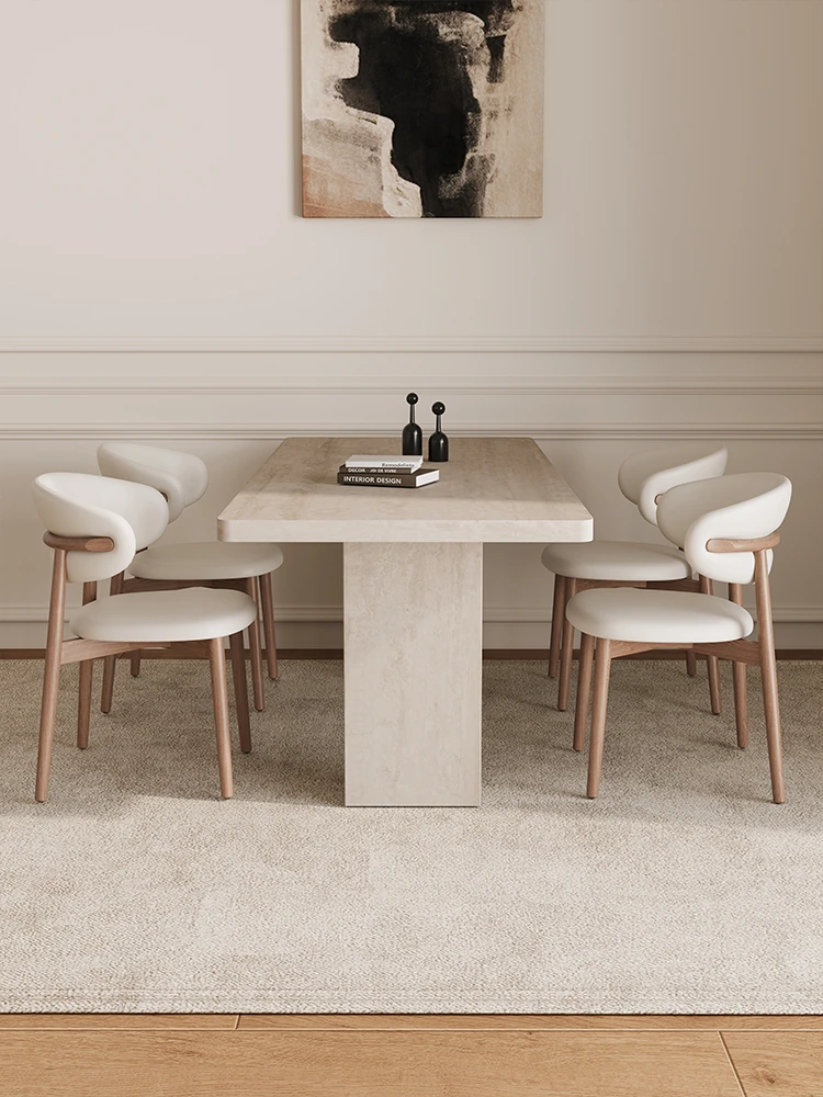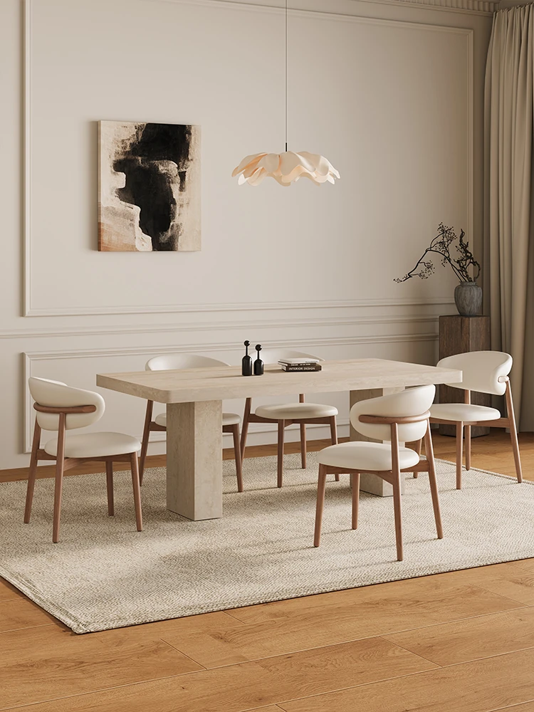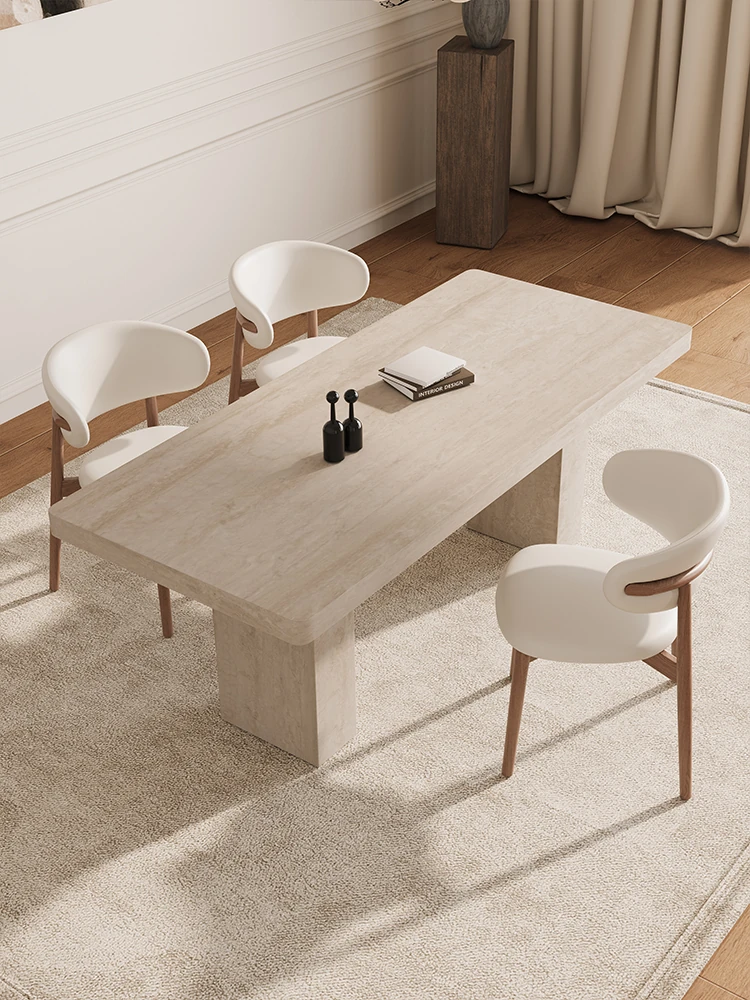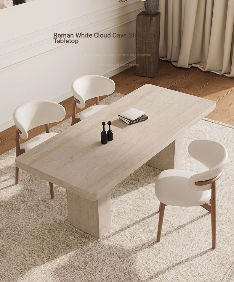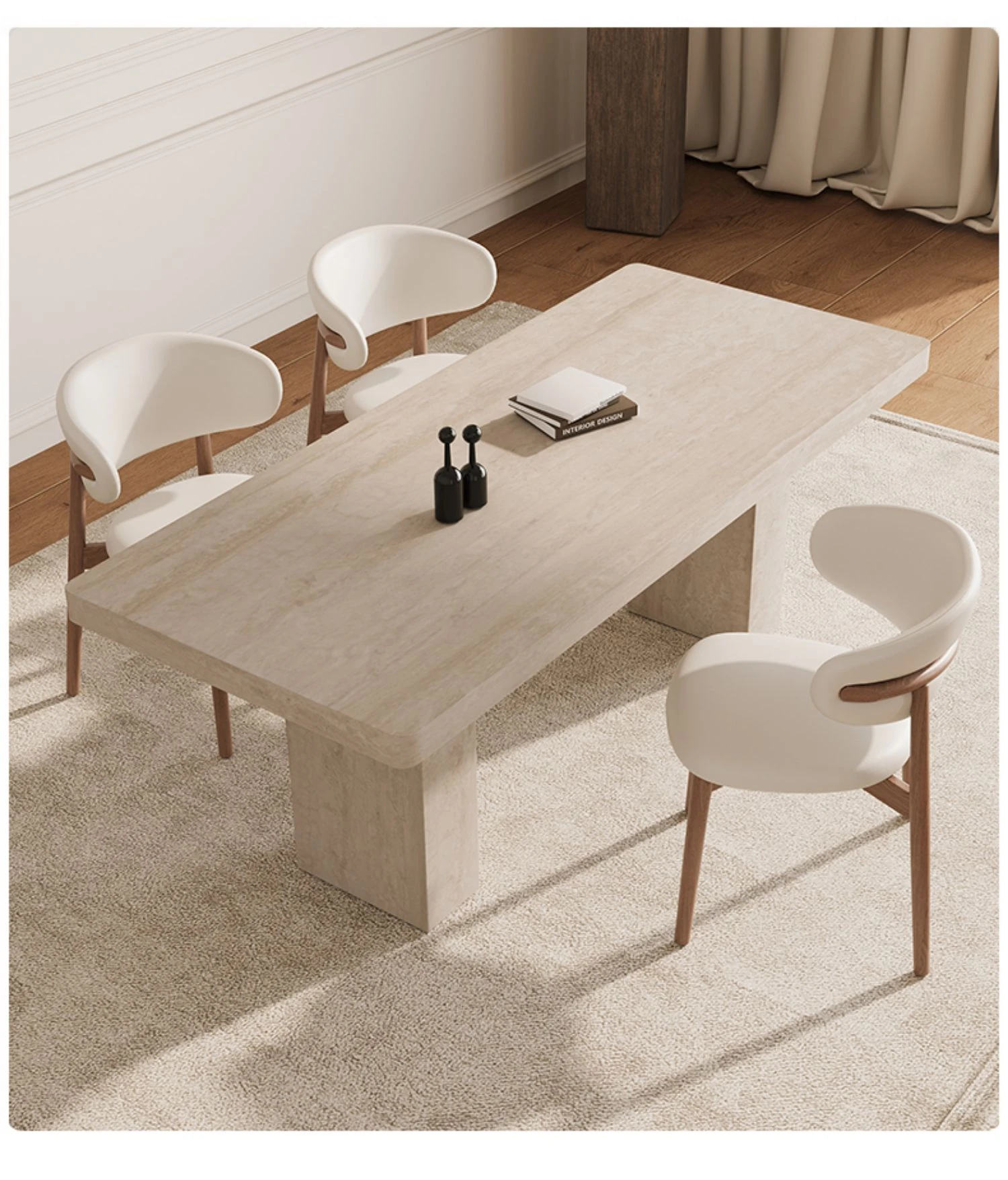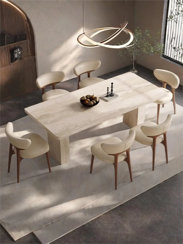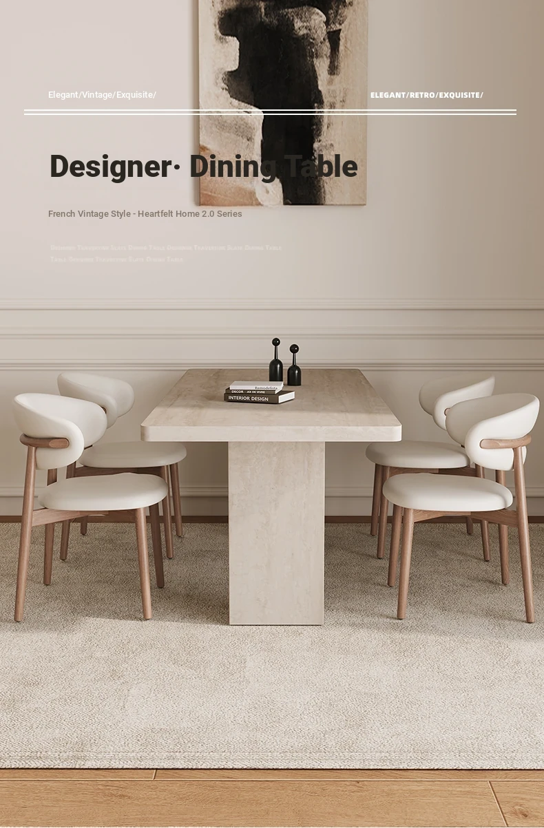 French Vintage Limestone Dining Table and Chair Set - Modern Designer Home Furniture for Sample Rooms, Perfect for a Chic Dining Experience