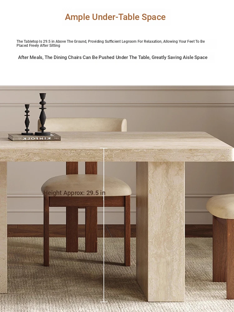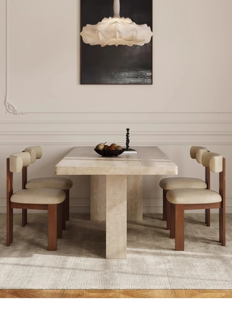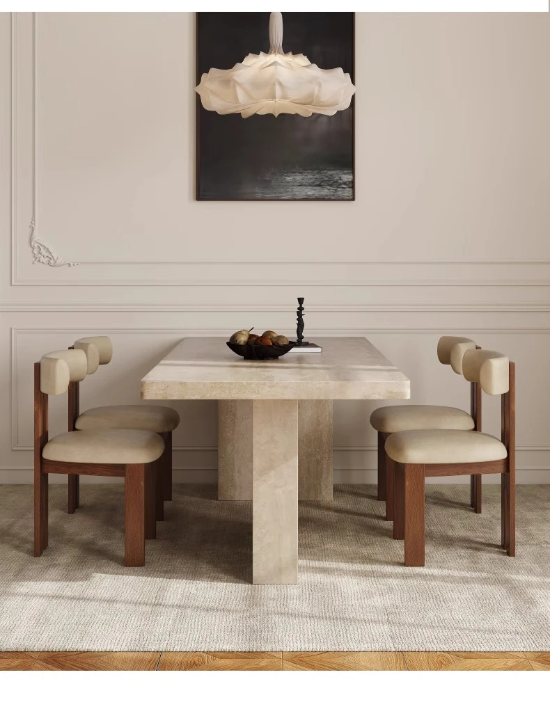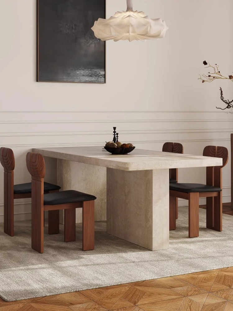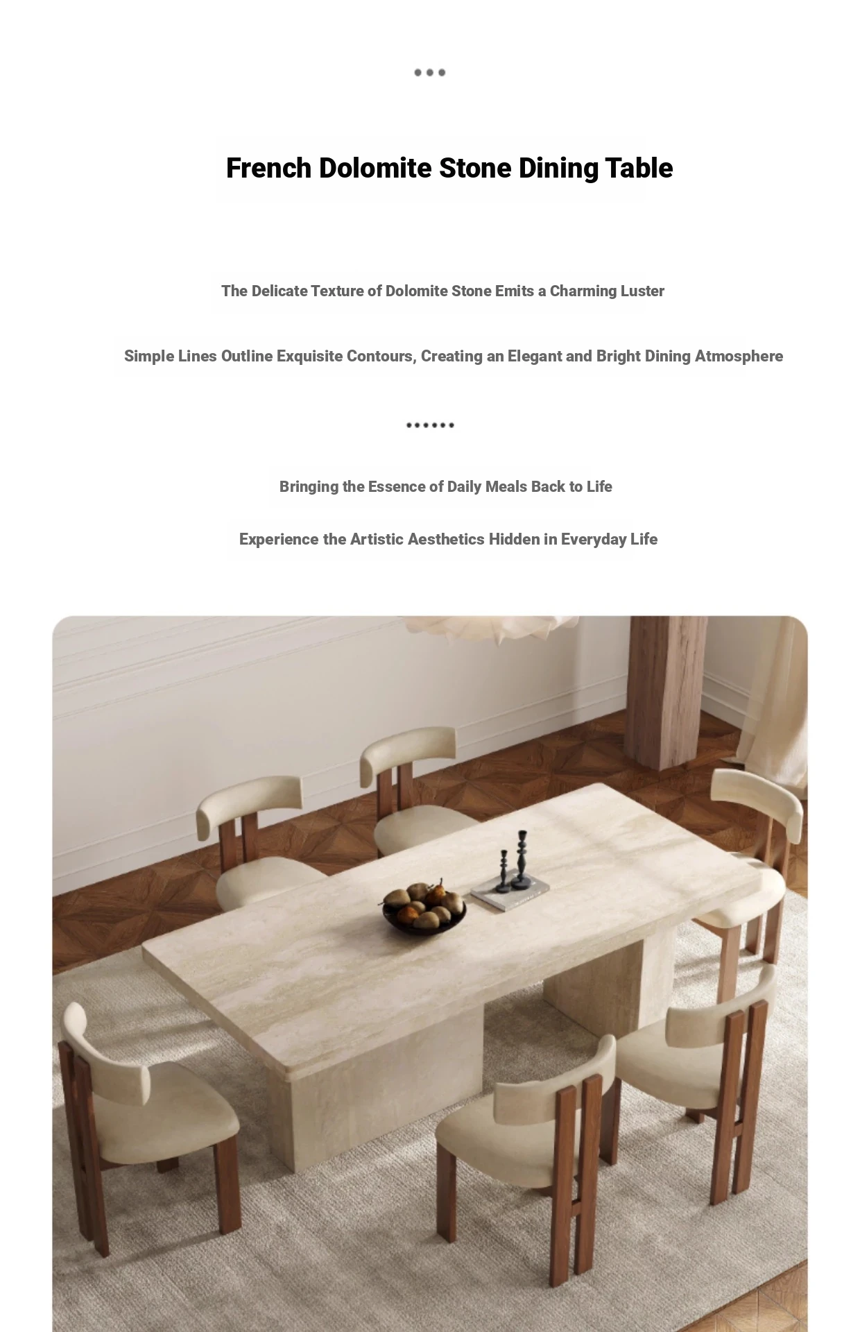 French Vintage Rectangular Designer Dining Table Set with Imported Limestone - Perfect for Elegant Dining Spaces